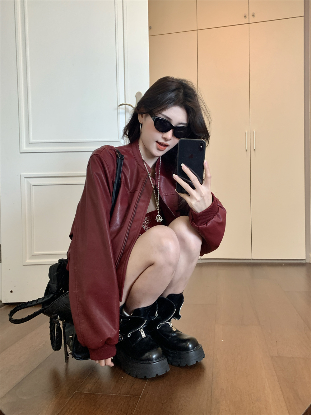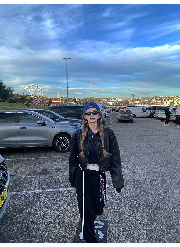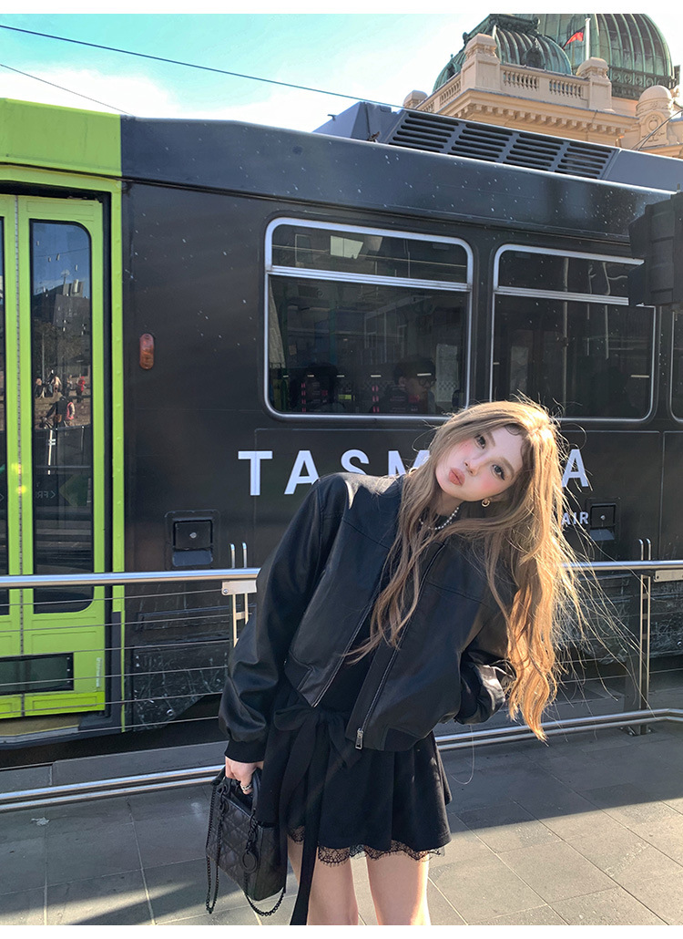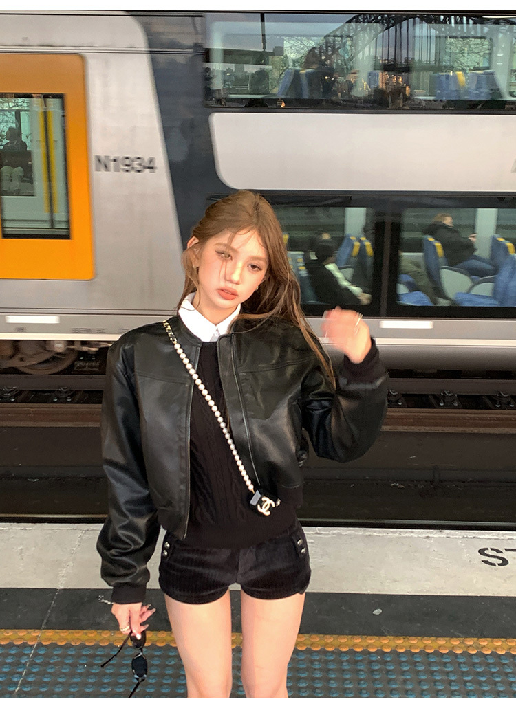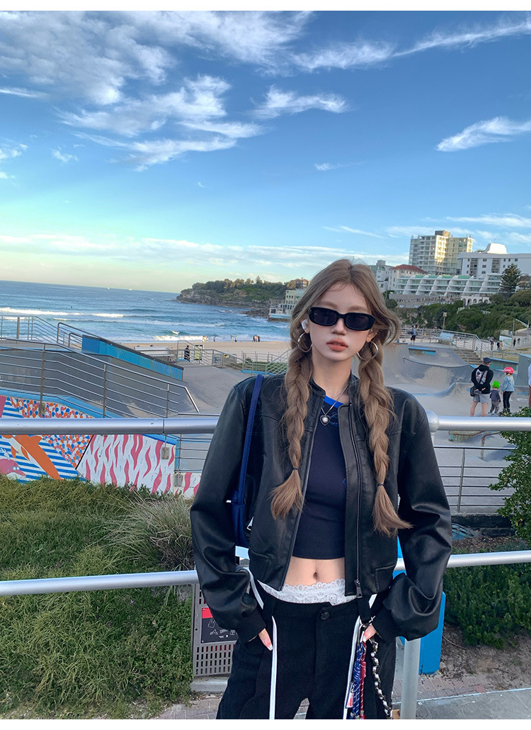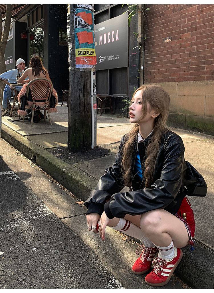 PU 가죽 자켓 여성 가을 2024 새로운 캐주얼 미국 레트로 지퍼 바이커 재킷 최고 패션 디자인스토어 가기