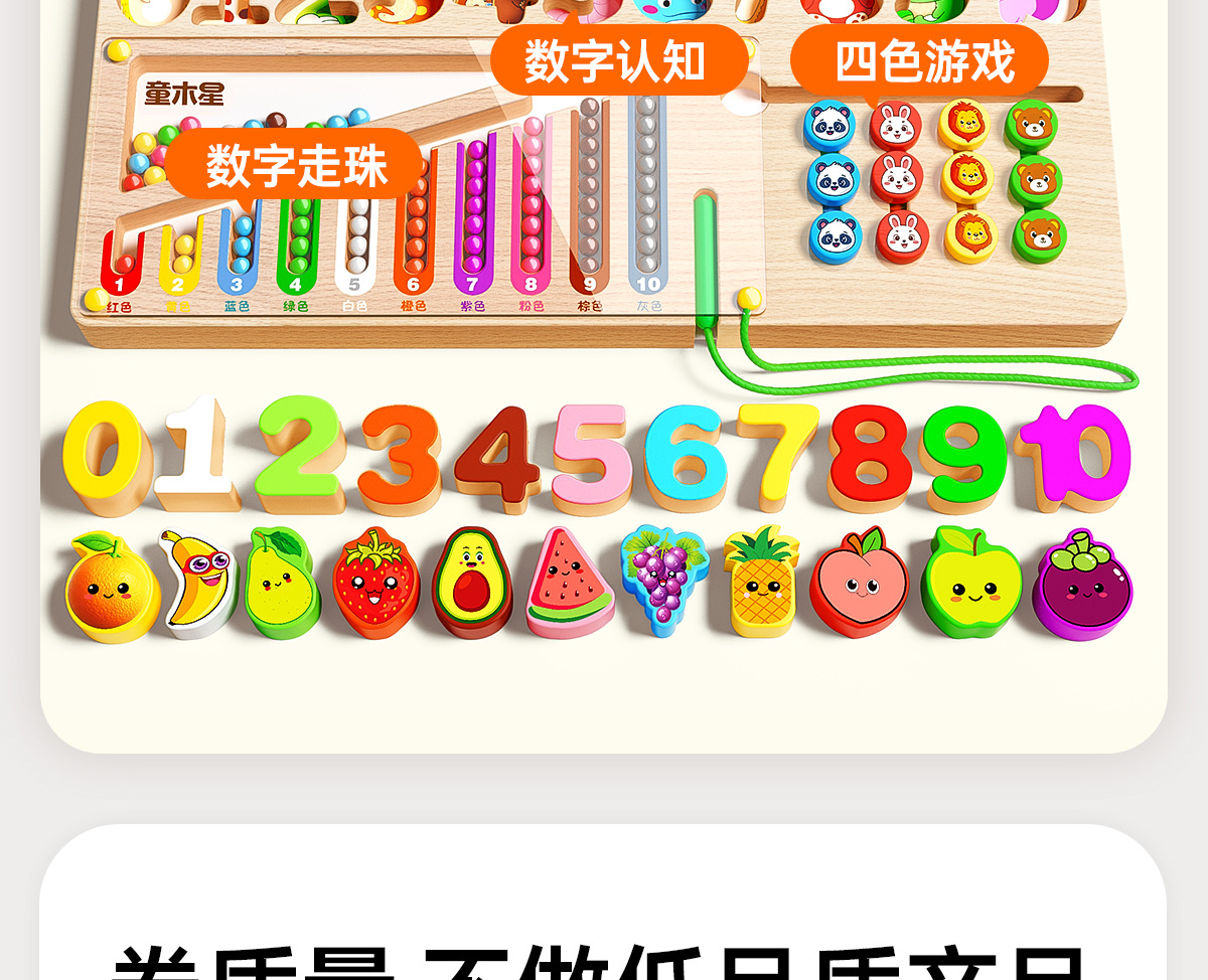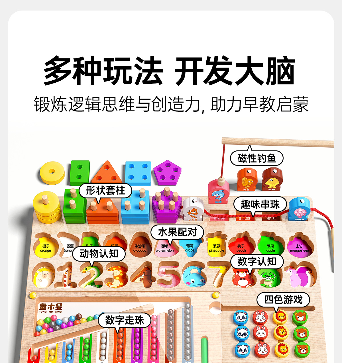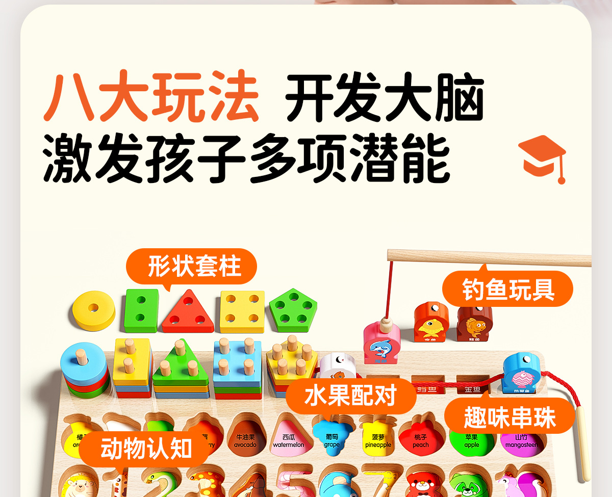 • Six-in-one [숫자 + 과일 + 낚시 + 고리 + 덧셈과 뺄셈 + 구슬 물고기]