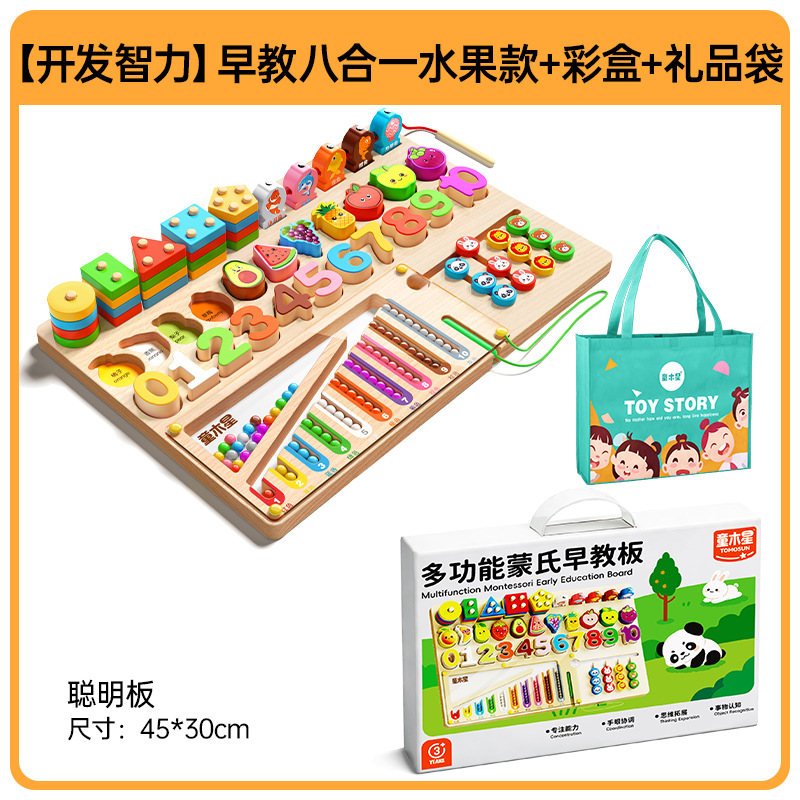 • 8-in-1 몬테소리 스마트 보드 [과일 스타일] 컬러 박스 + 선물 가방