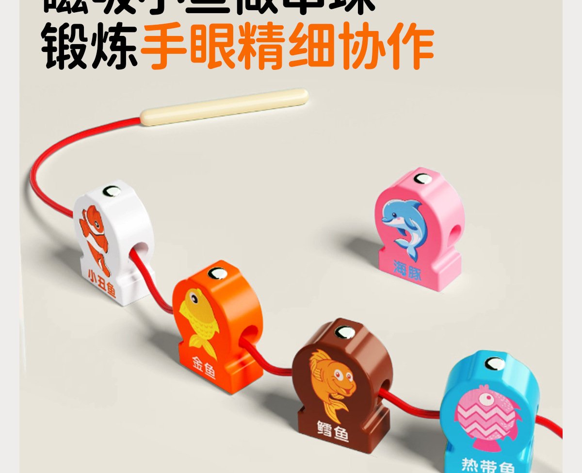 • Six-in-one [숫자 + 모양 + 낚시 + 고리 + 덧셈과 뺄셈 + 구슬 물고기]