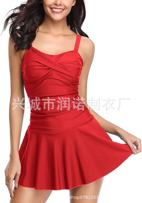 Amazon AliExpress 여성용 원피스 수영복 랩 스커트 유럽과 미국 패션 보수적 인 배꼽 커버 솔리드 컬러 백리스 수영복스토어 가기