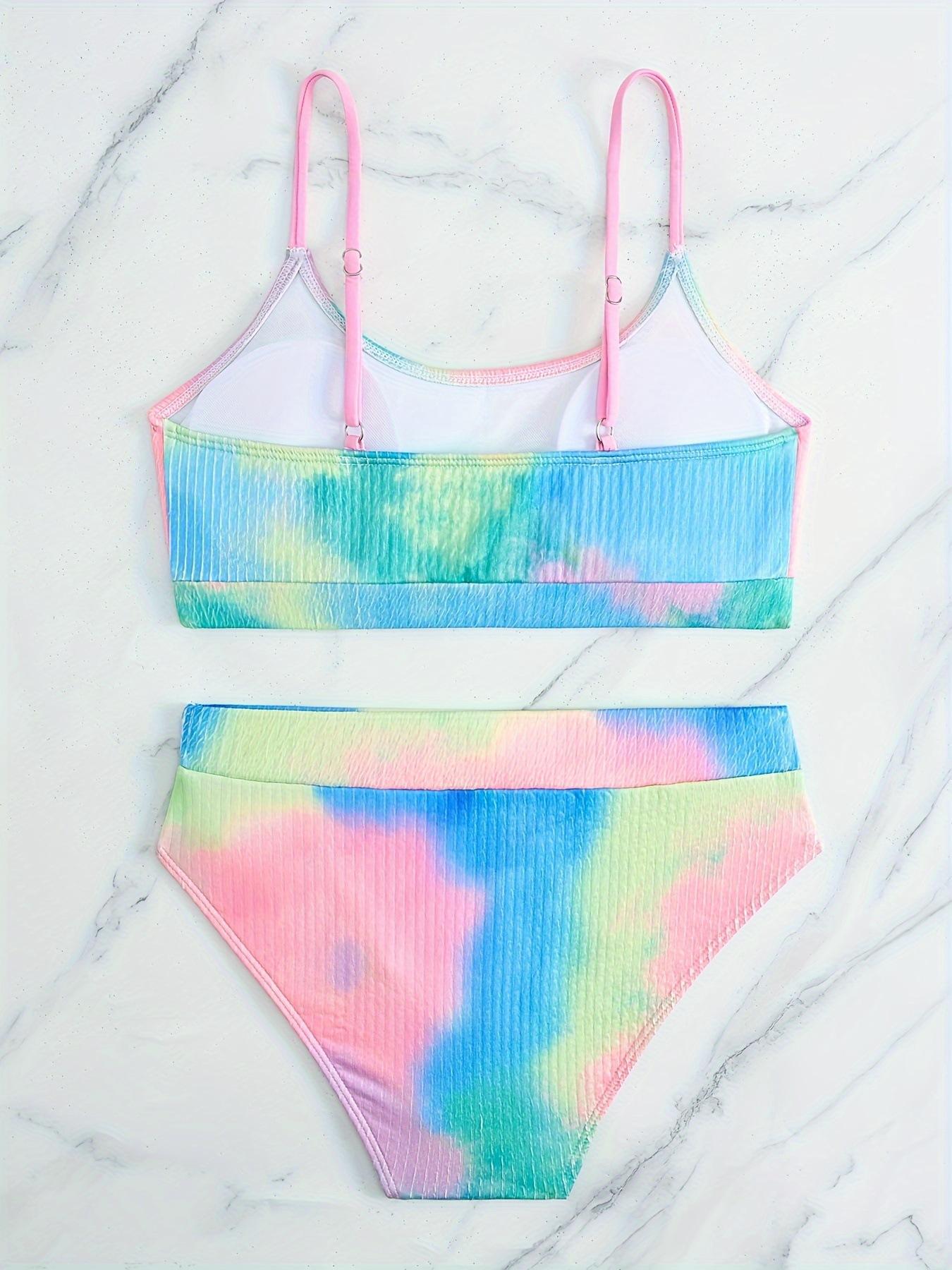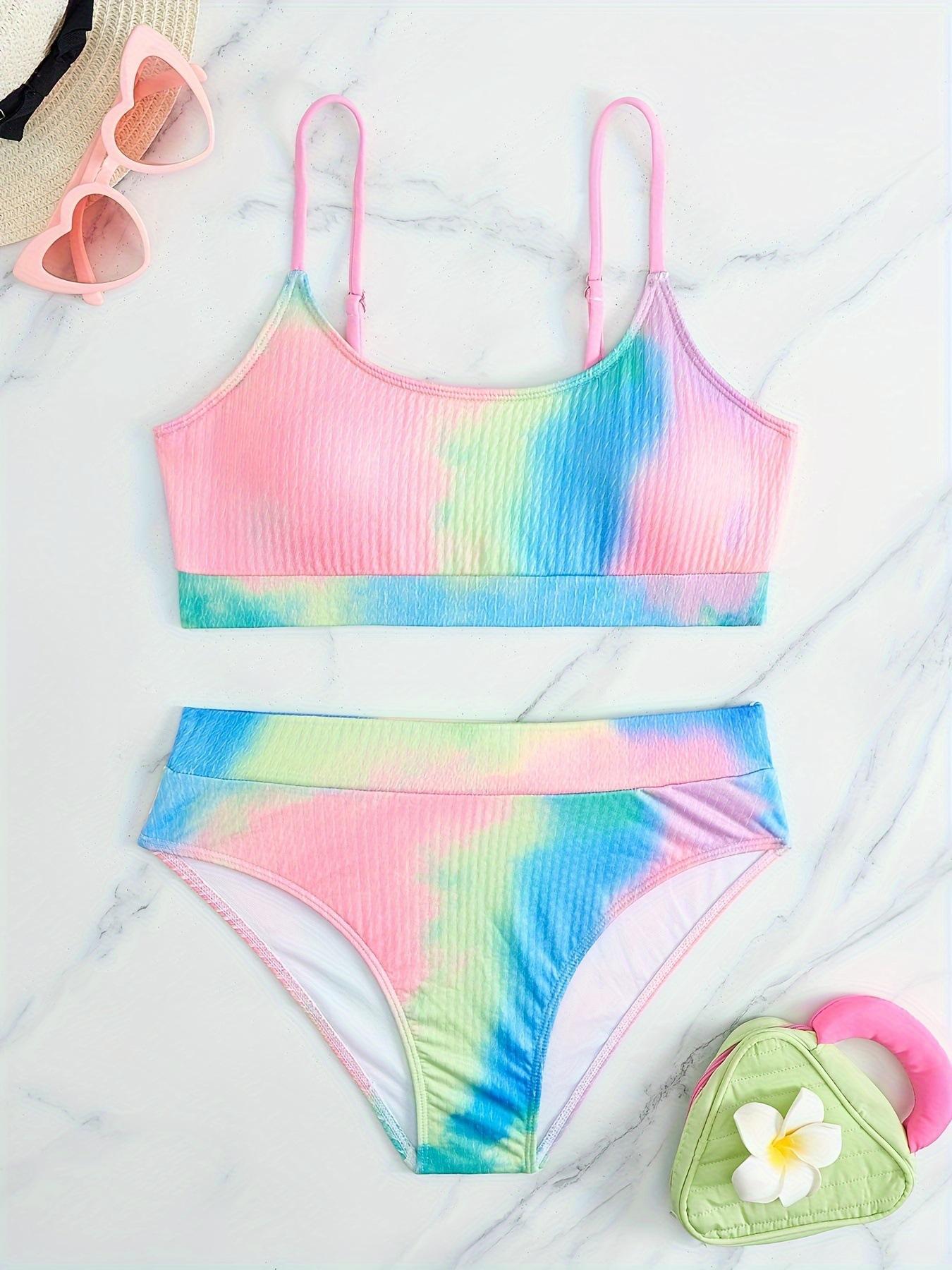 새로운 유럽과 미국의 대외 무역 비키니 아마존 새로운 국경 그라디언트 타이 다이 비키니 하이 허리 스플릿 수영복스토어 가기