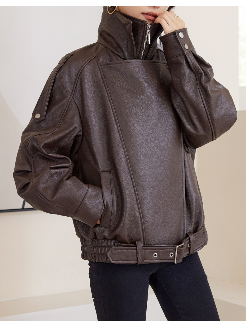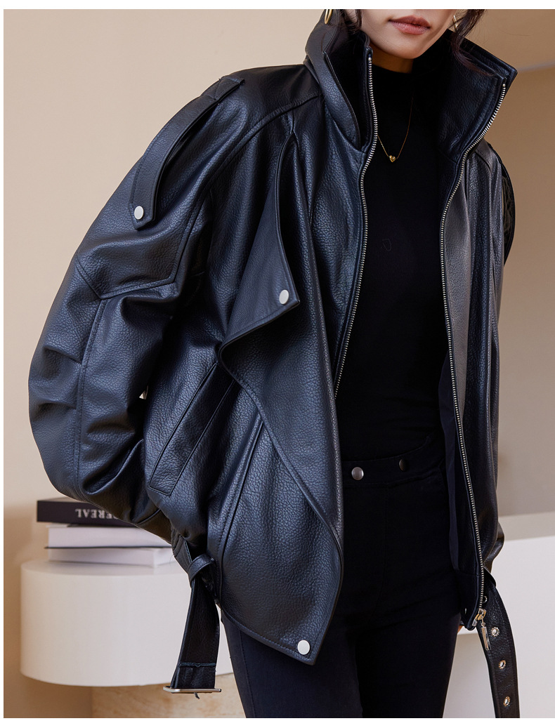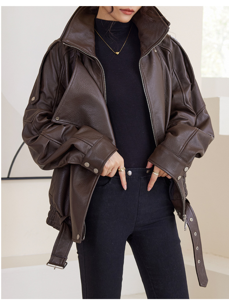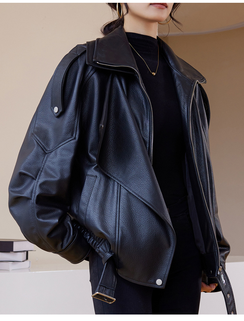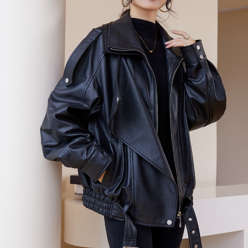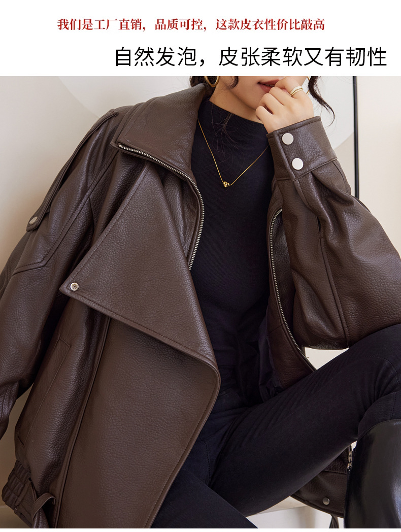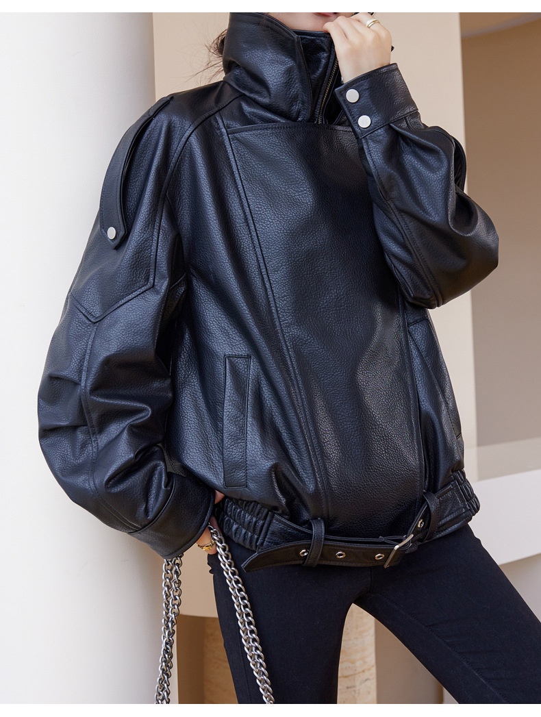 유럽 하이 엔드 정품 가죽 여성 유행 가을 오토바이 프로필 가죽 재킷 유행 정품 양가죽 자켓스토어 가기