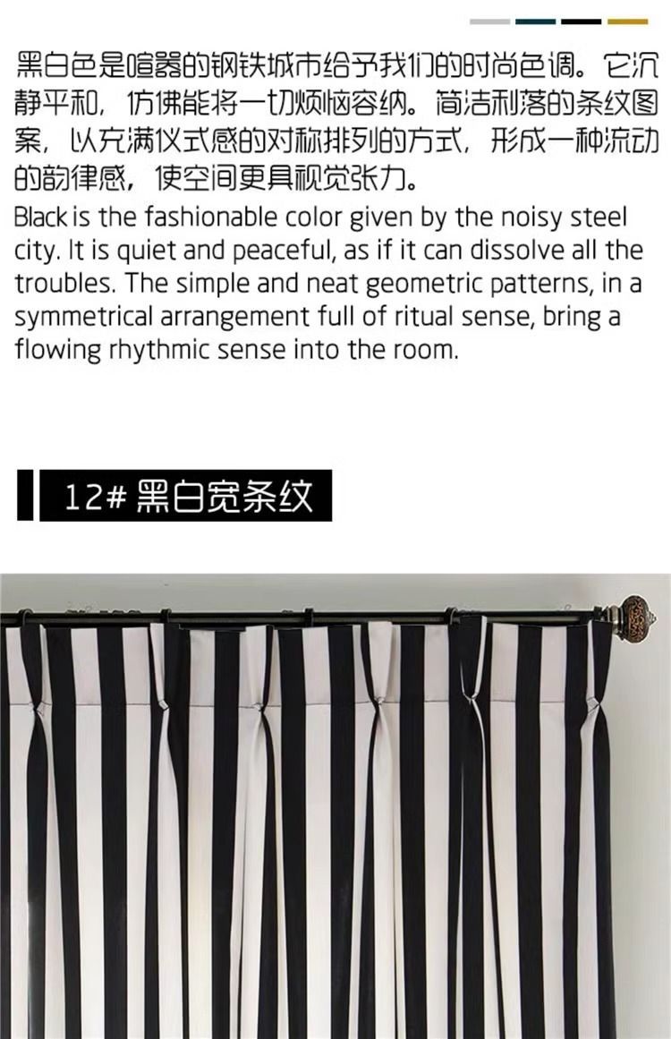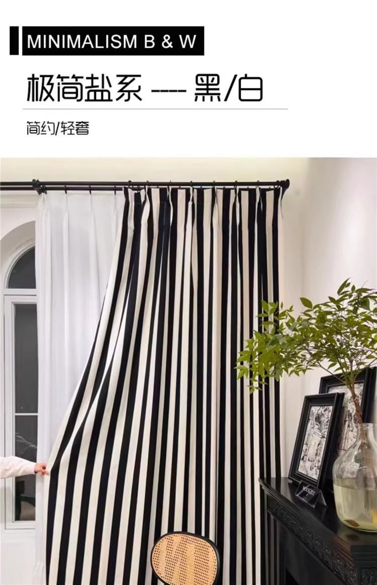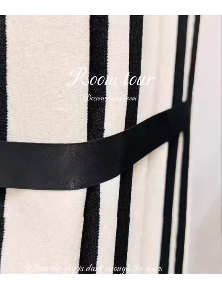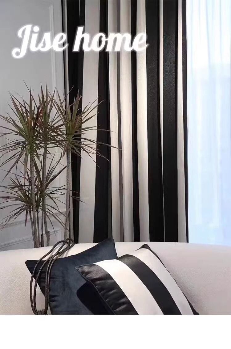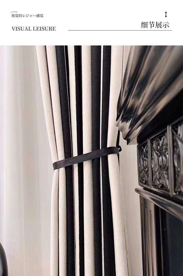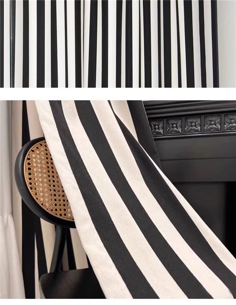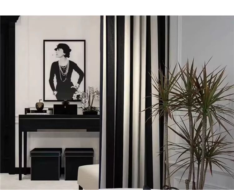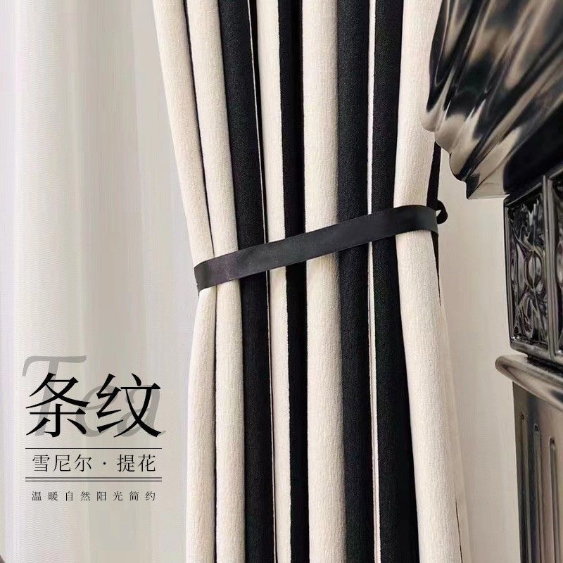 Chenille 흑백 줄무늬 샤넬 스타일 스트립 두꺼운 블랙 아웃 엔트리 럭셔리 아메리칸 스타일 프랑스 스타일 복고풍 침실 베이 창