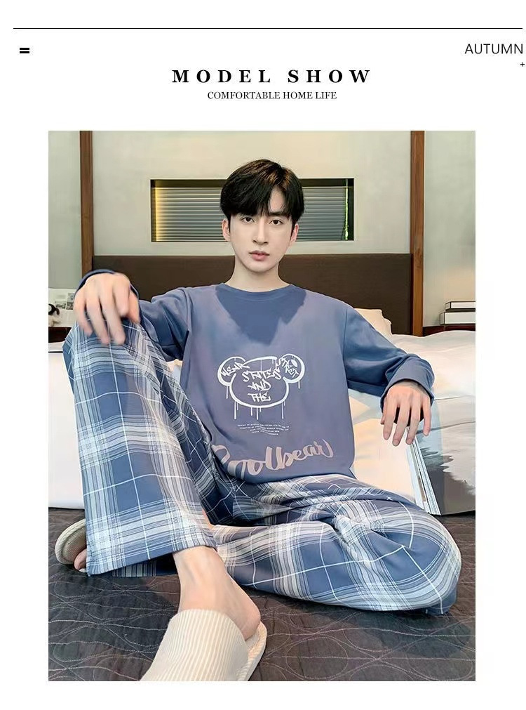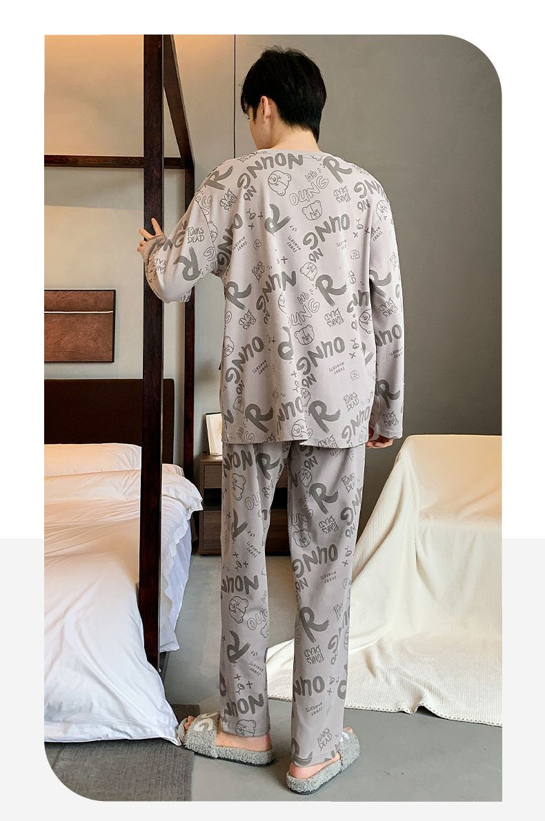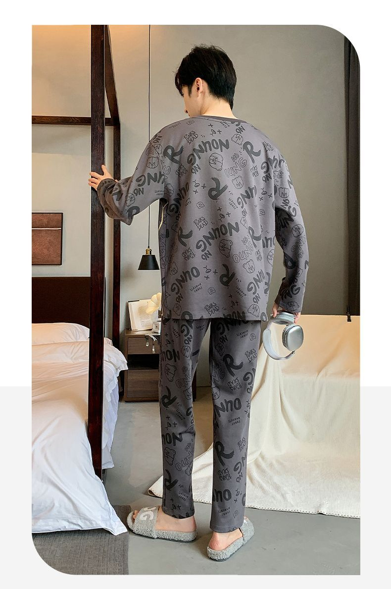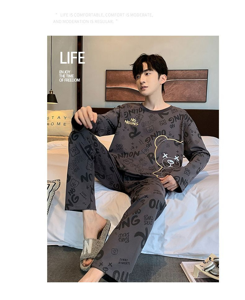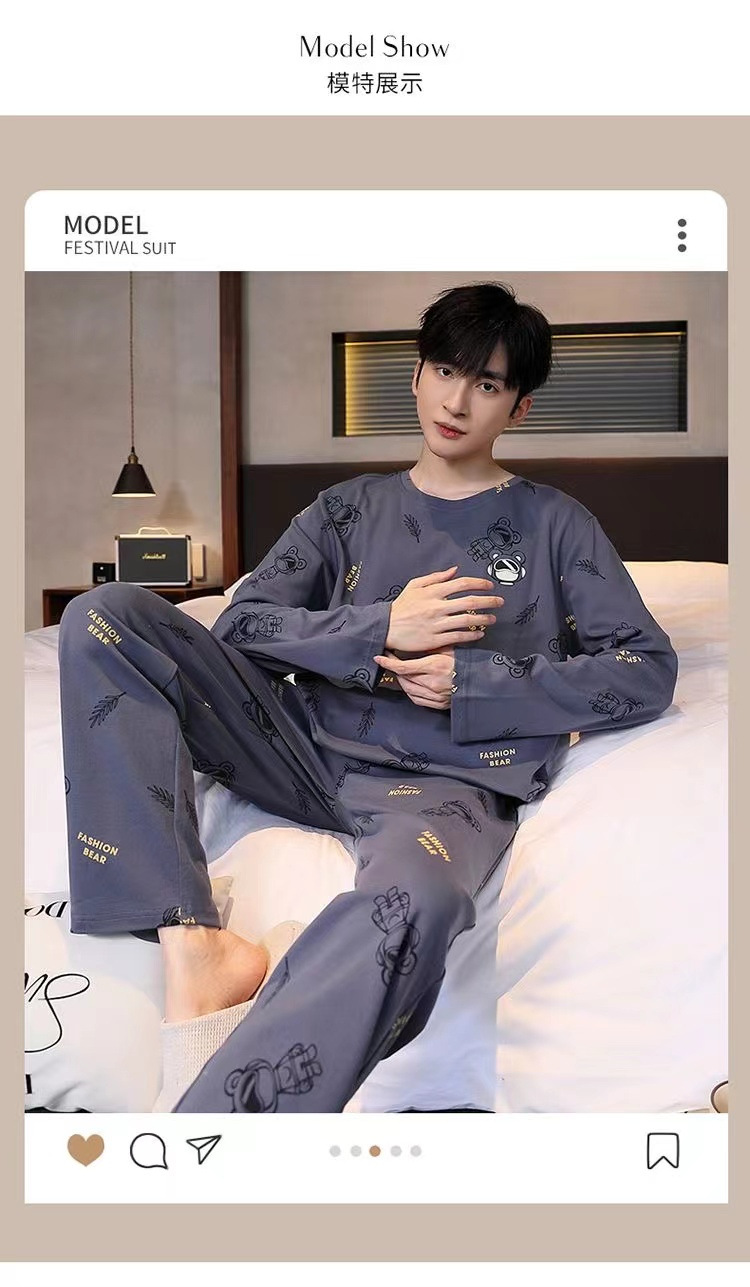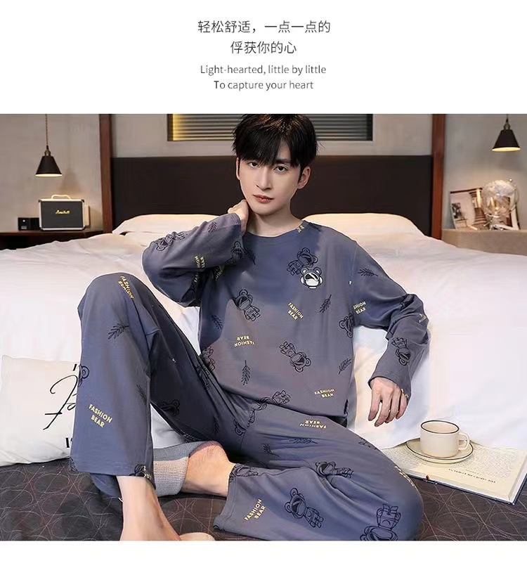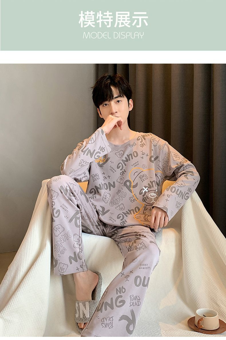 봄과 가을 긴 소매 바지 남성용 잠옷 홈 의류 플러스 남성용 느슨한 홈 세트 파자마 도매스토어 가기