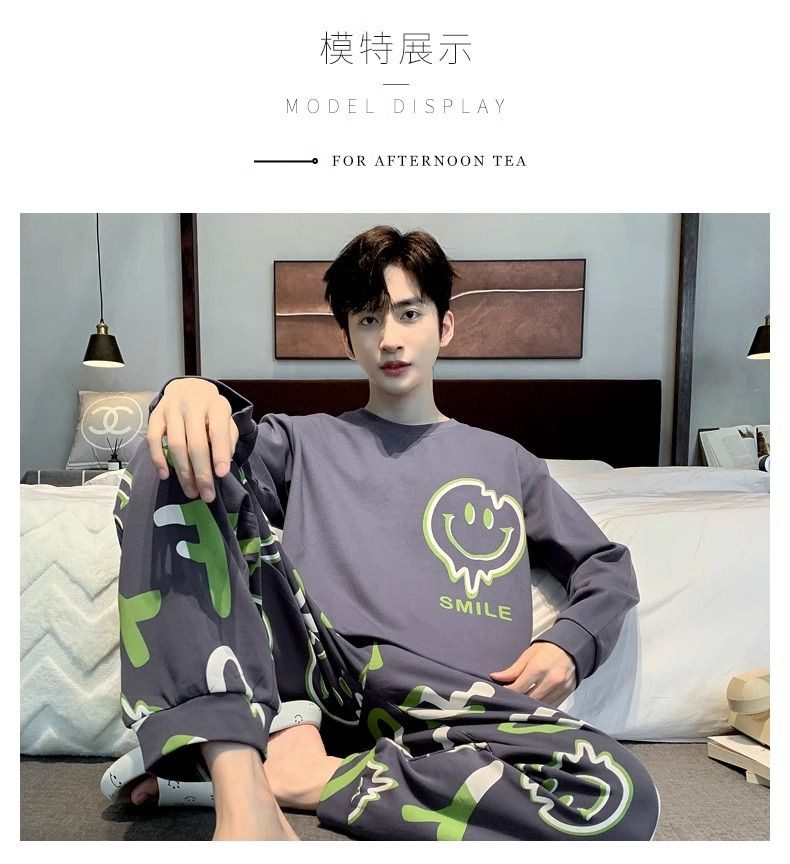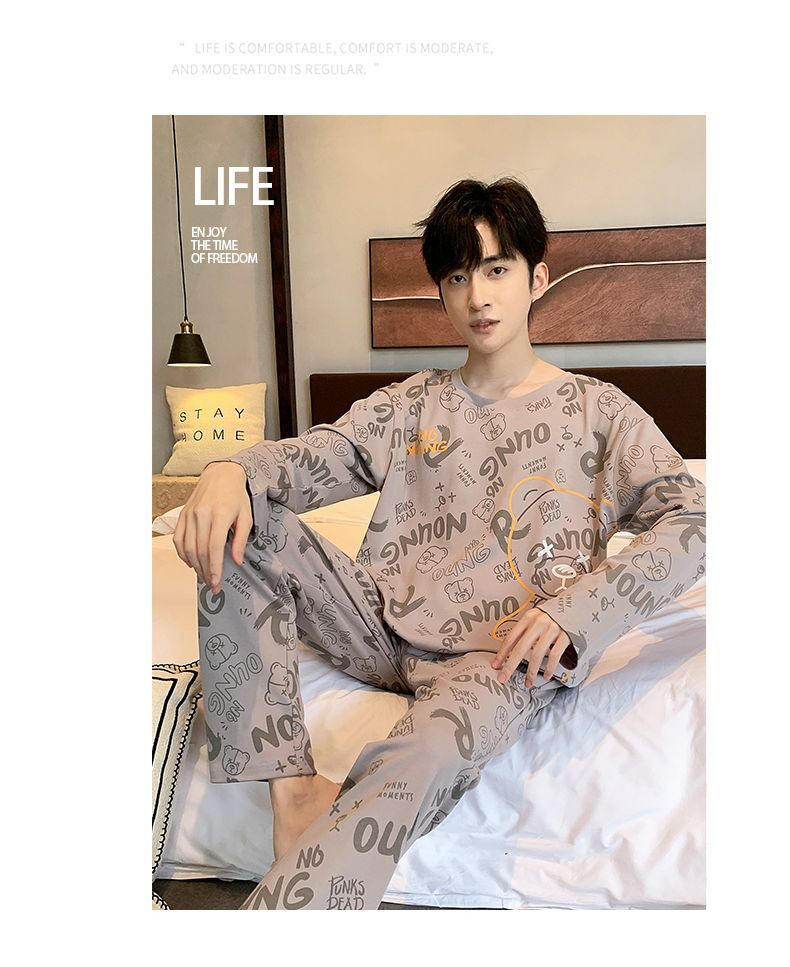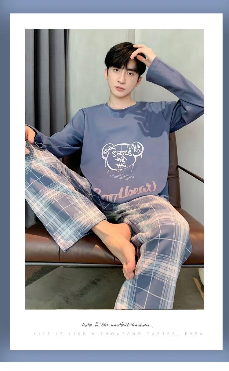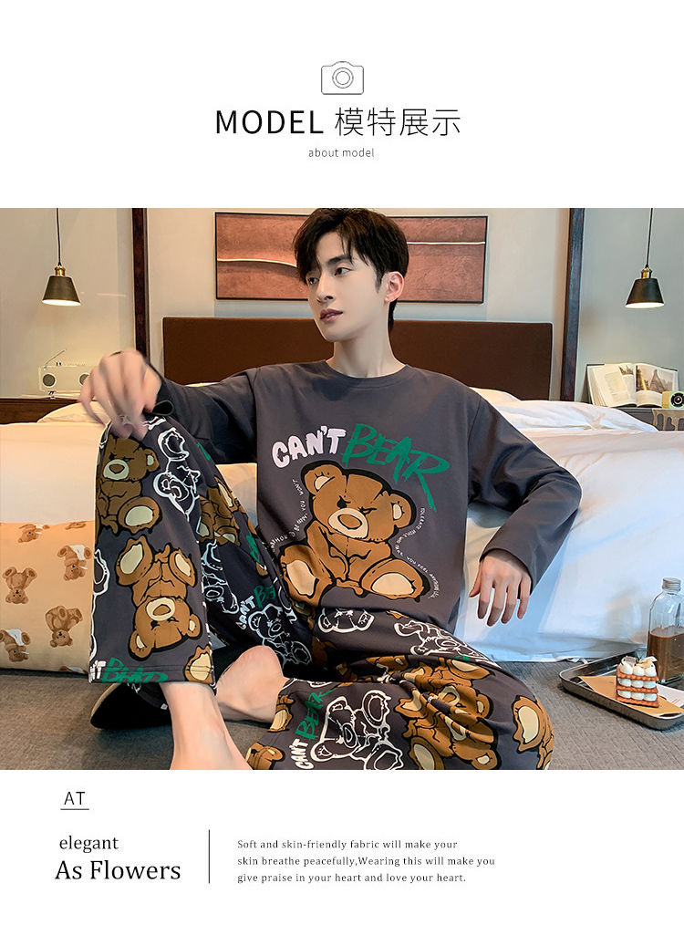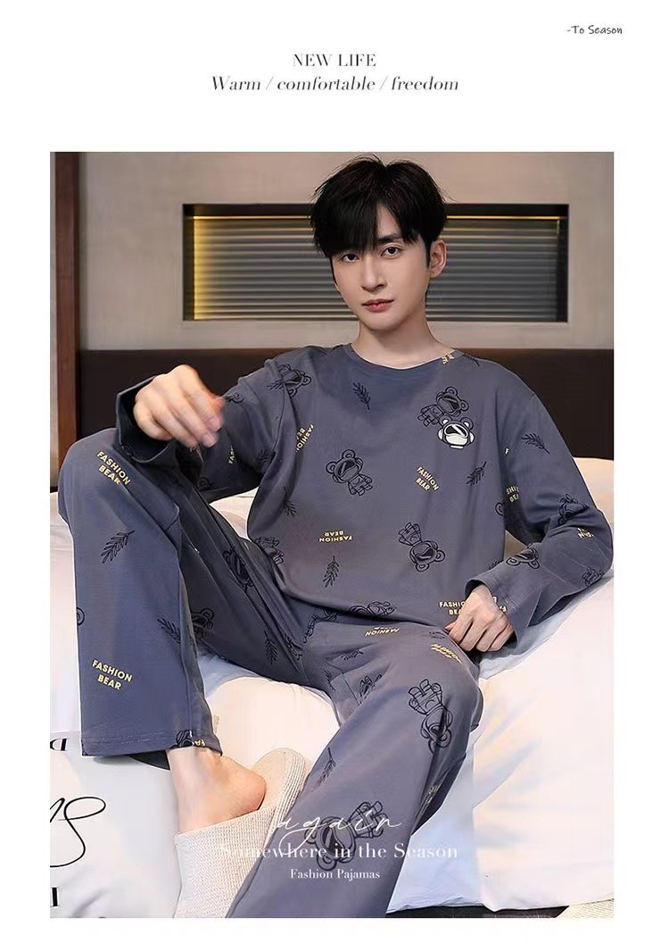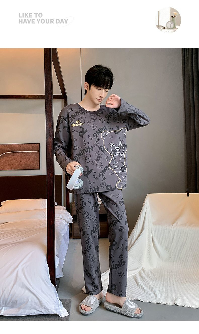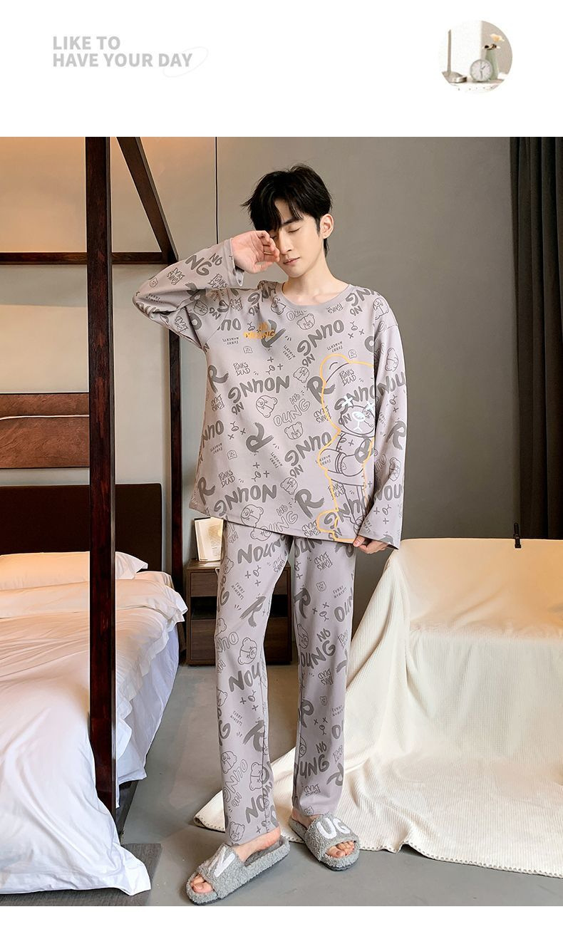 봄과 가을 긴 소매 바지 남성용 잠옷 홈 의류 플러스 남성용 느슨한 홈 세트 파자마 도매스토어 가기
