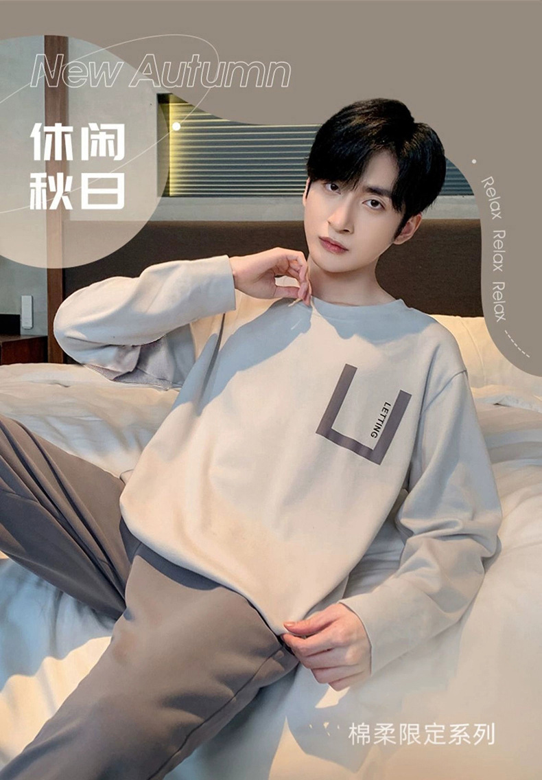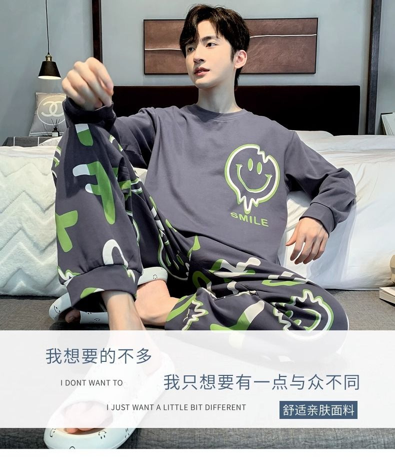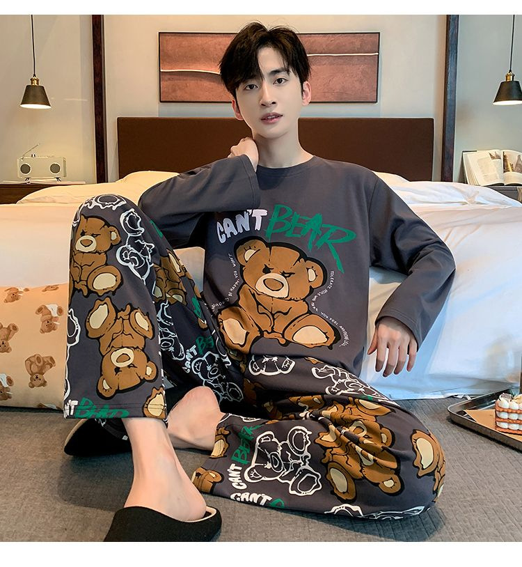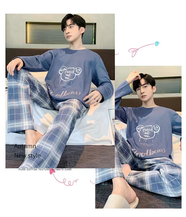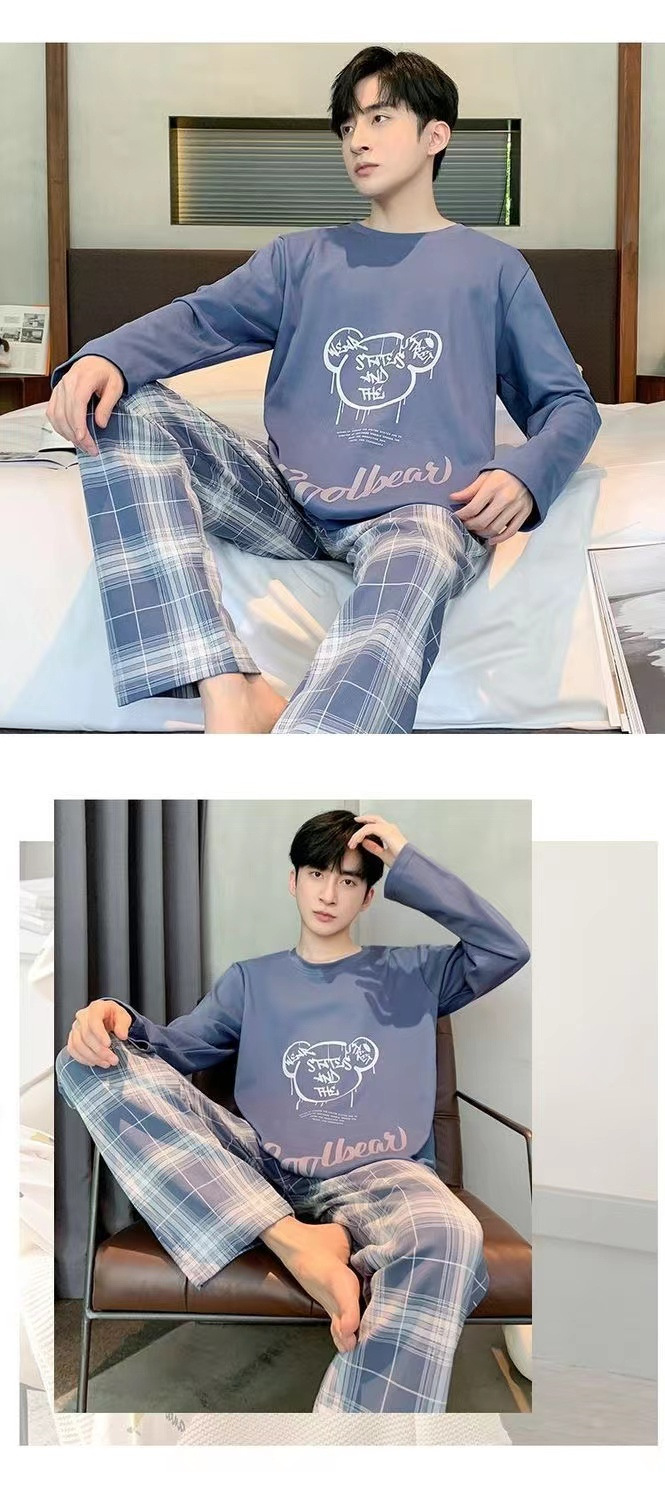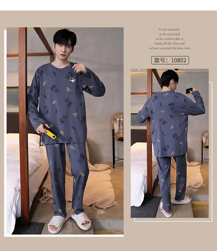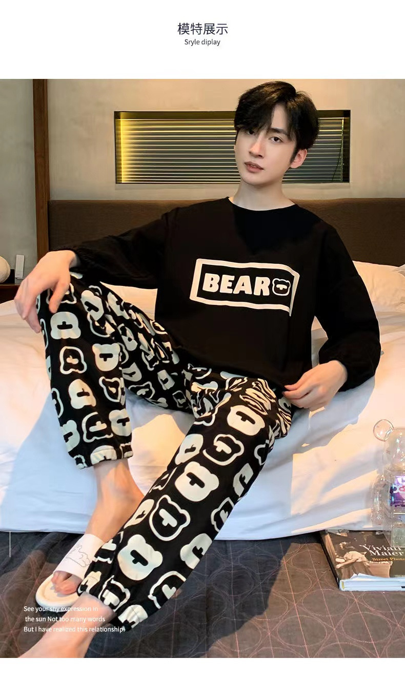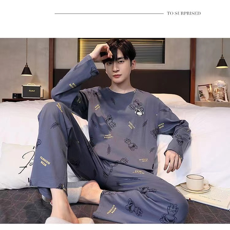봄과 가을 긴 소매 바지 남성용 잠옷 홈 의류 플러스 남성용 느슨한 홈 세트 파자마 도매스토어 가기