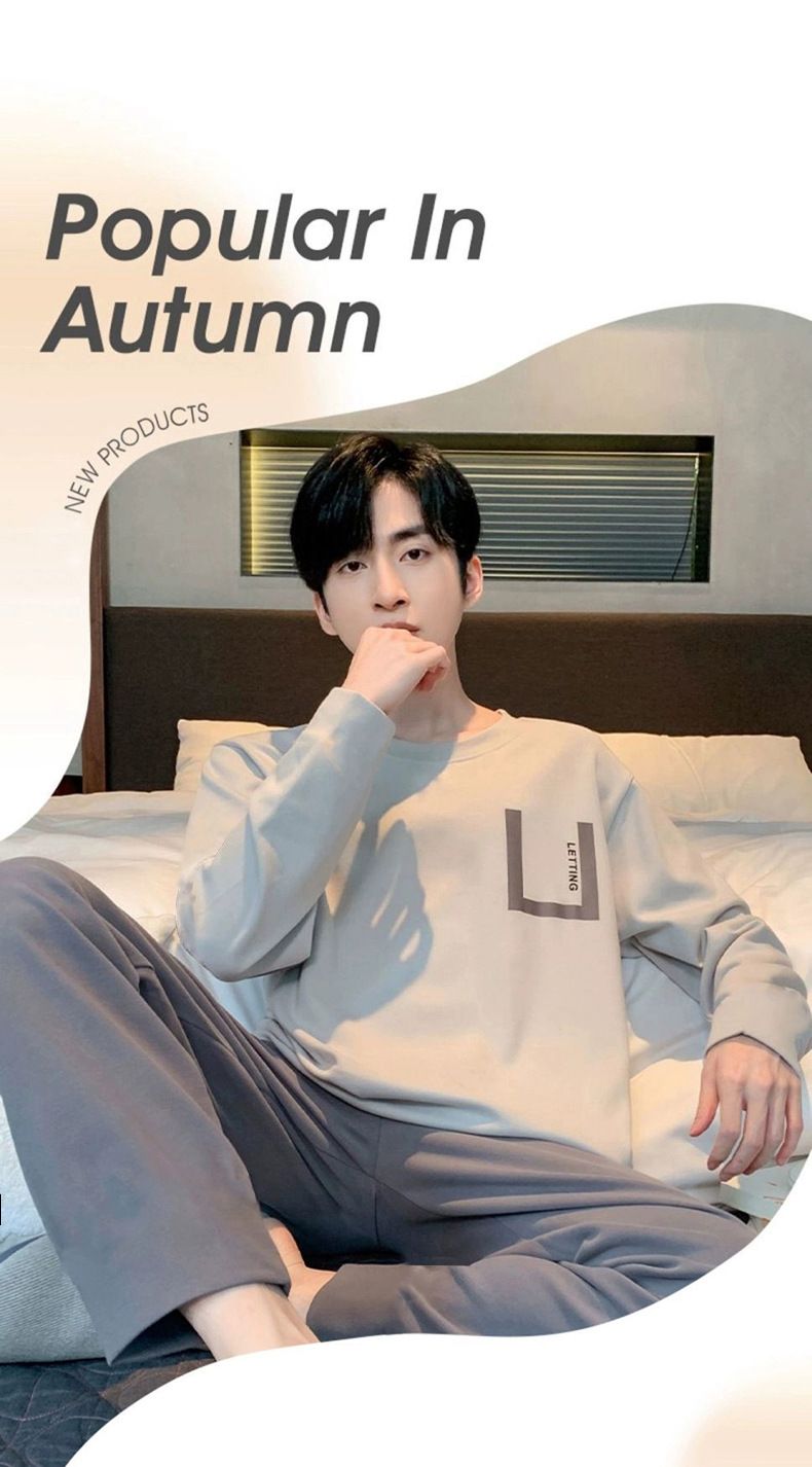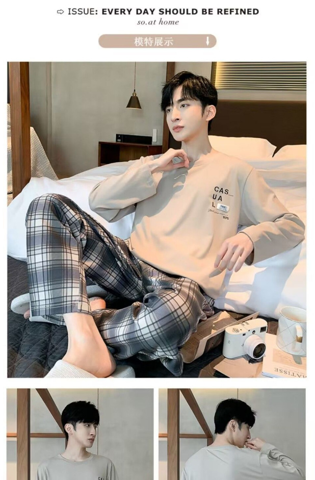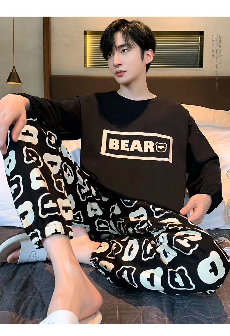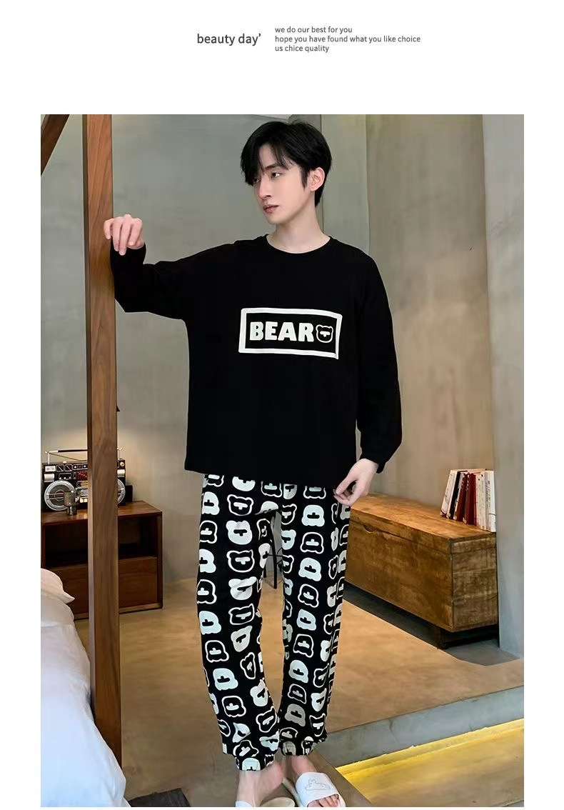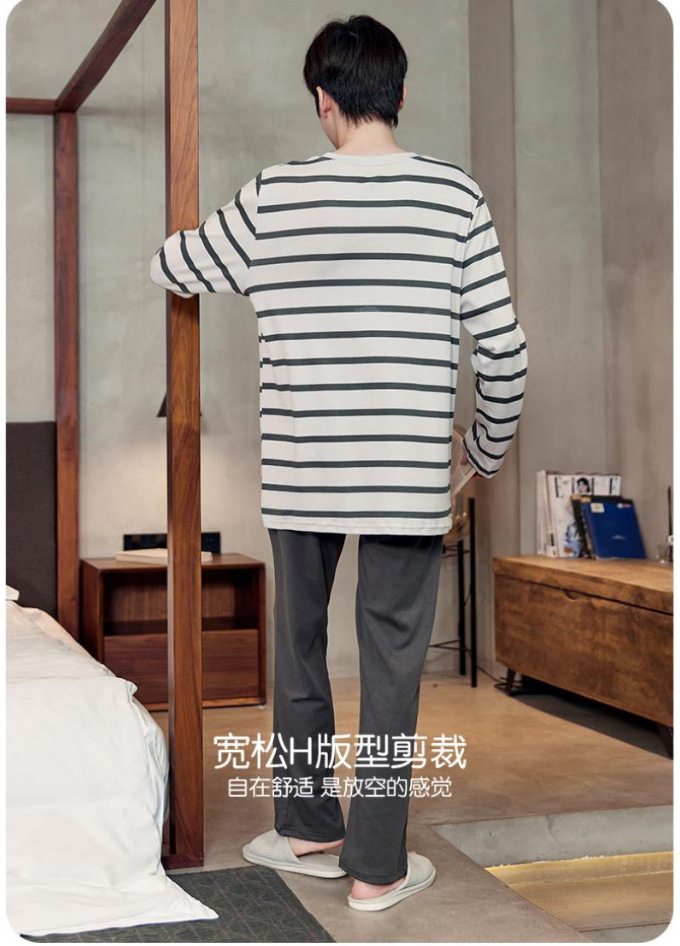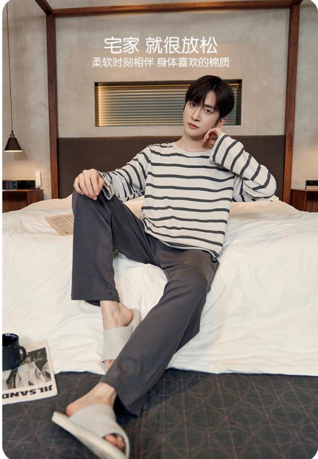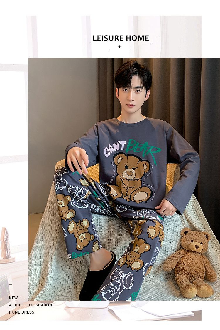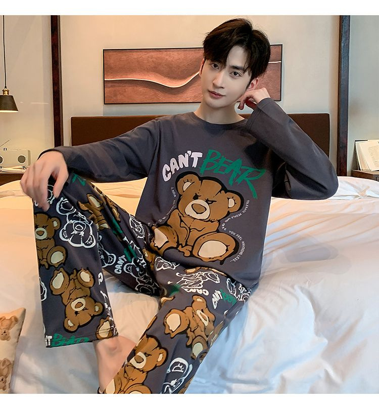봄과 가을 긴 소매 바지 남성용 잠옷 홈 의류 플러스 남성용 느슨한 홈 세트 파자마 도매스토어 가기