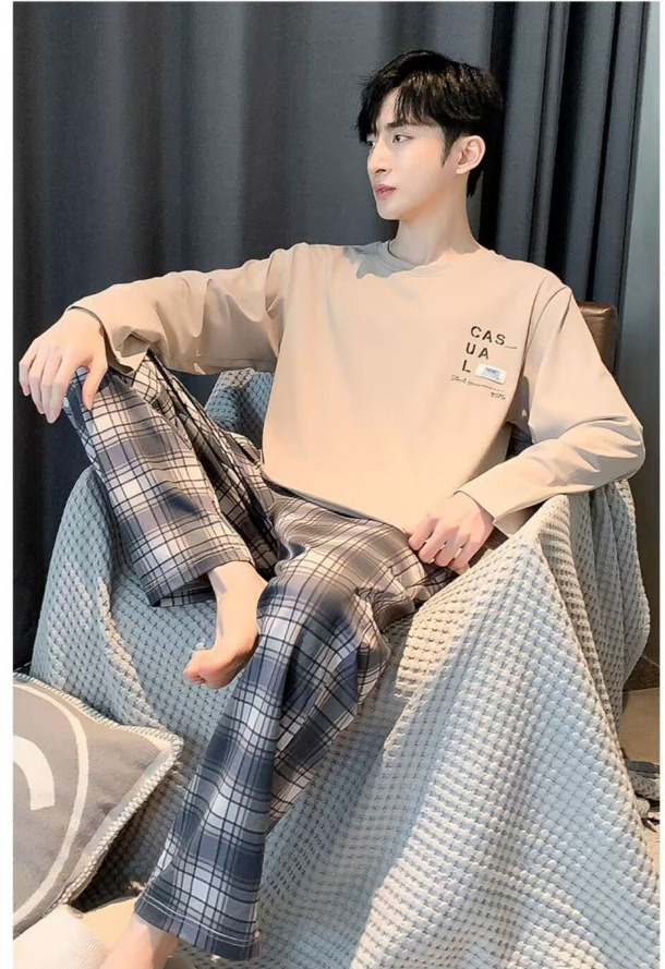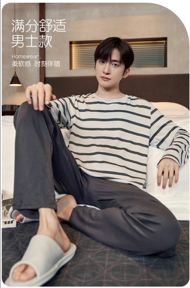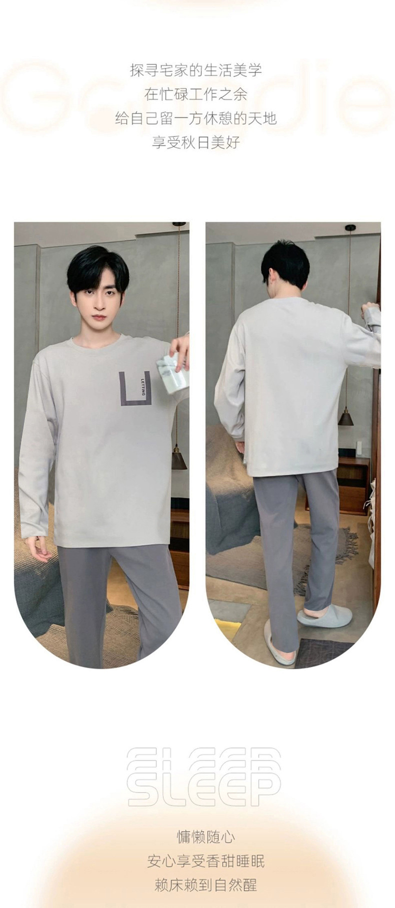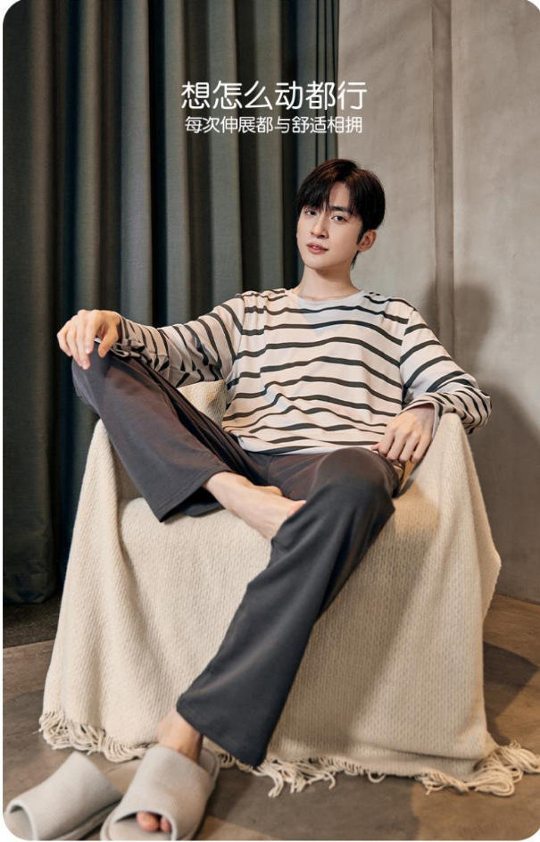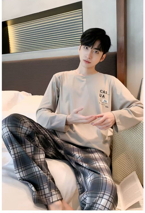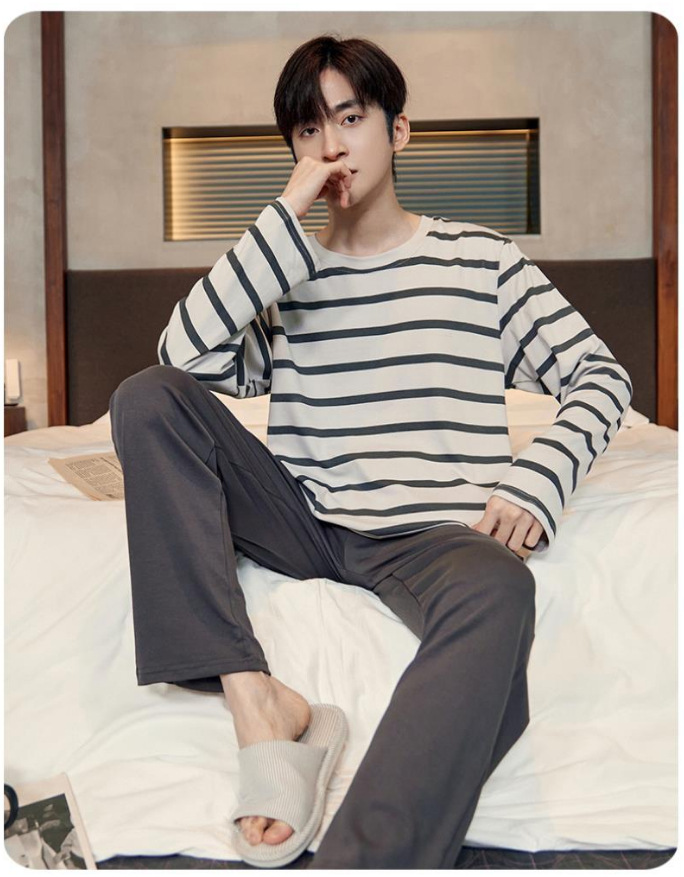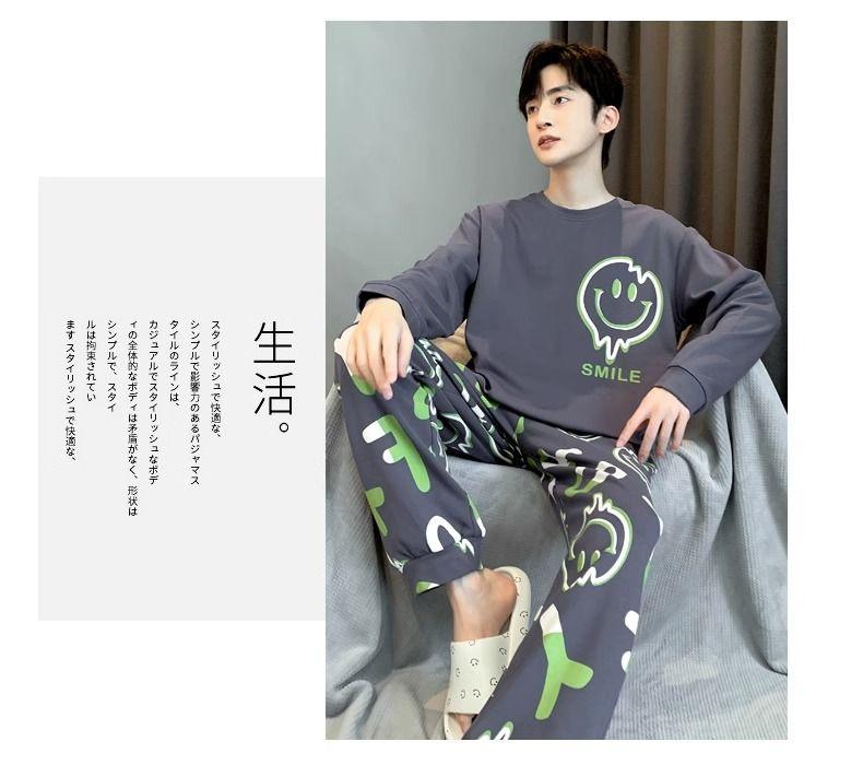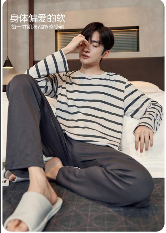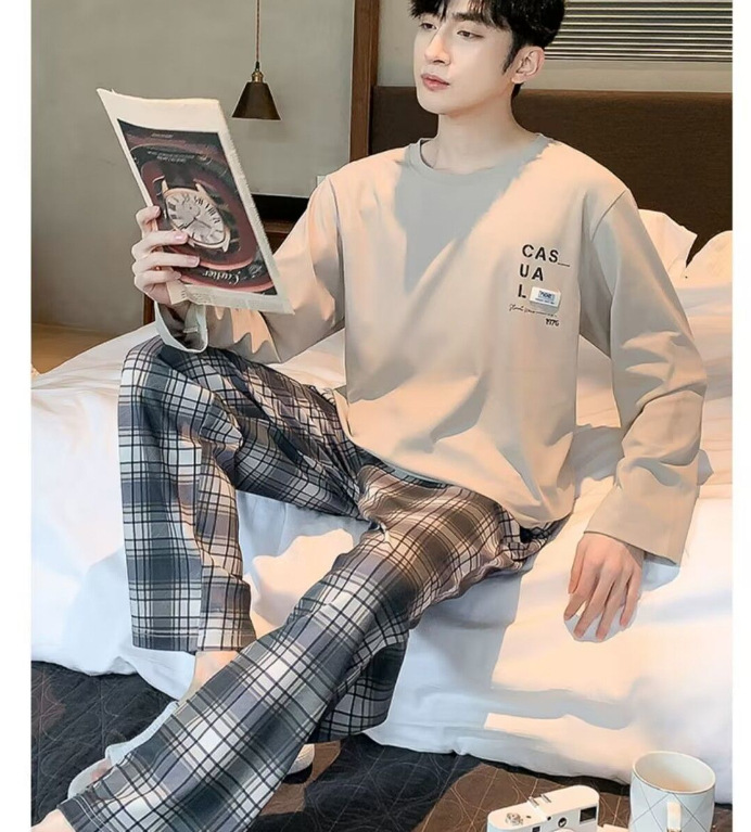 봄과 가을 긴 소매 바지 남성용 잠옷 홈 의류 플러스 남성용 느슨한 홈 세트 파자마 도매스토어 가기
