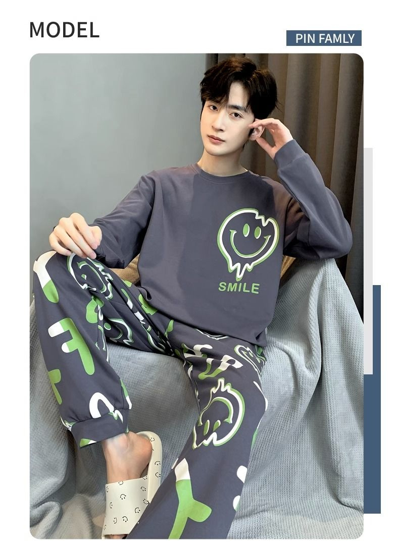 봄과 가을 긴 소매 바지 남성용 잠옷 홈 의류 플러스 남성용 느슨한 홈 세트 파자마 도매
