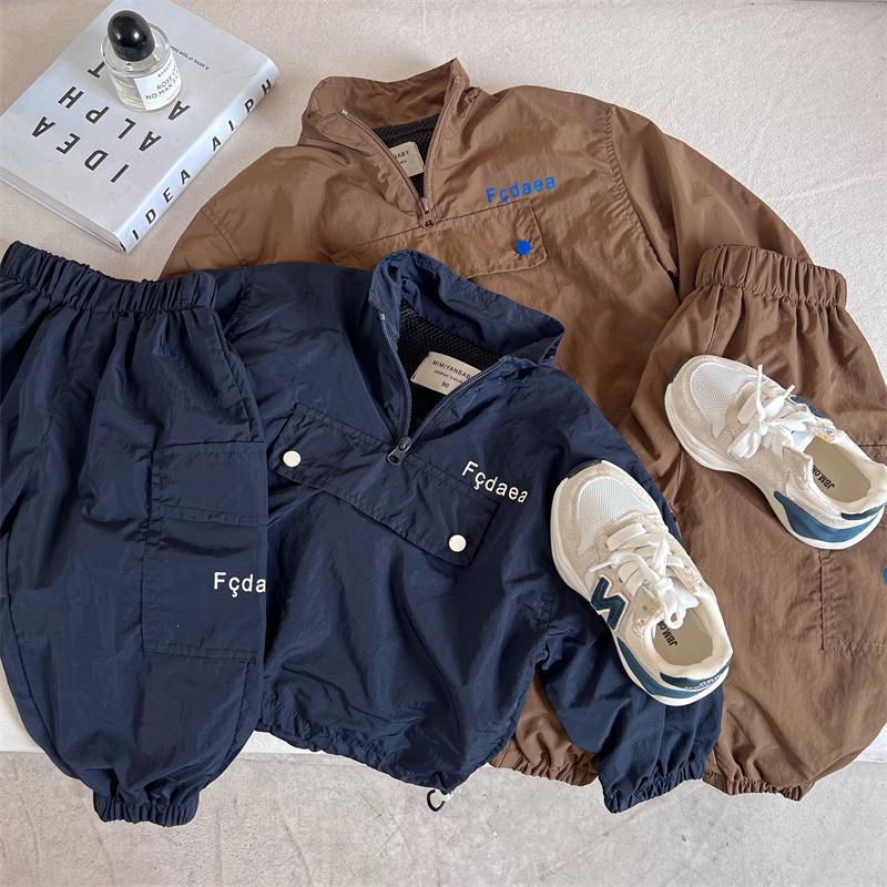 2024 아동복 어린이 세트 가을 반 지퍼 러스크 의류 소년 소녀 아기 툴링 스포츠 2 조각 유행 세트