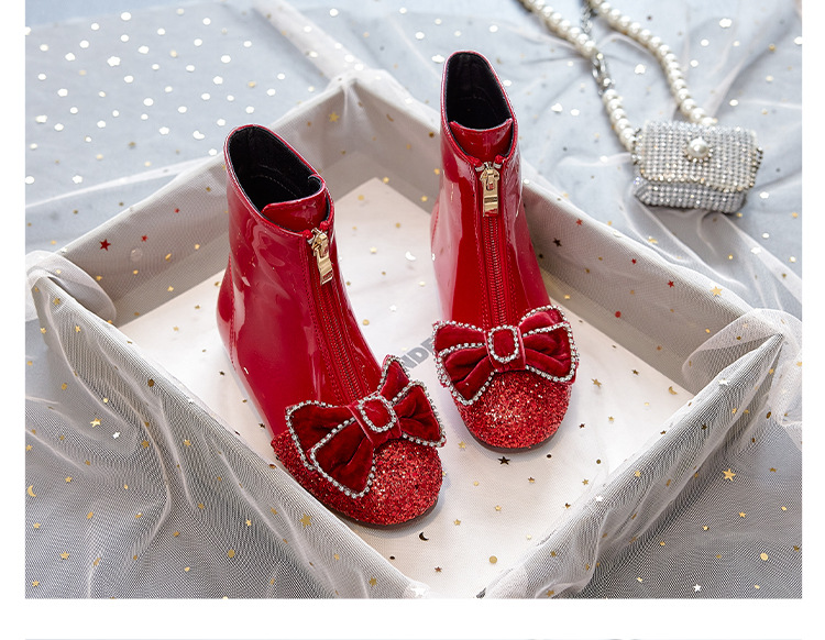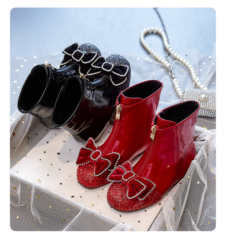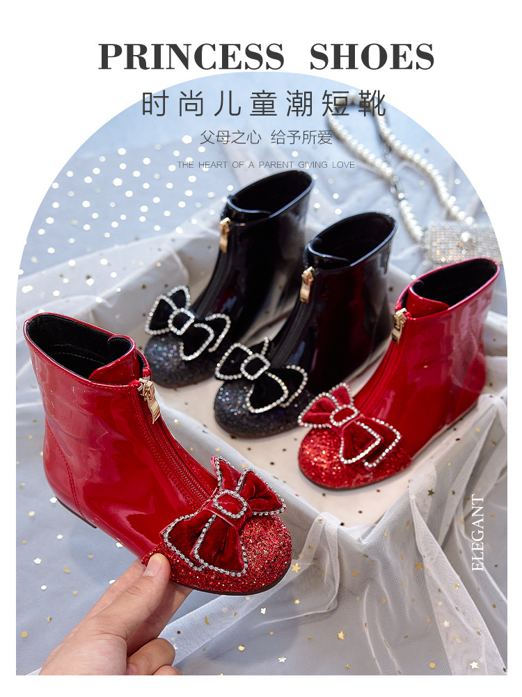 여아 부츠 아동용 봄 가을 부츠 2026 신상 아기 마틴 부츠 겨울 플러시 가죽 부츠 공주 크리스탈 숏부츠