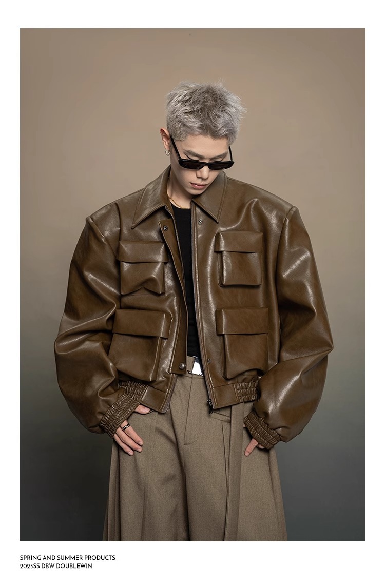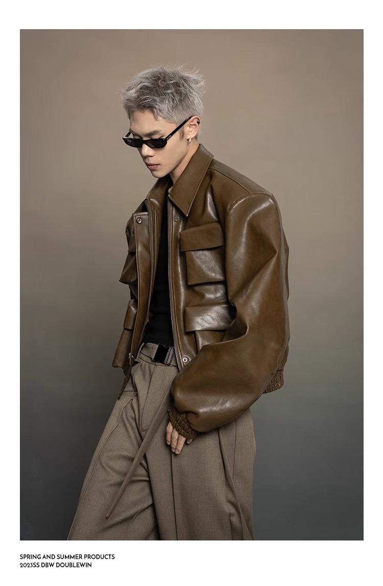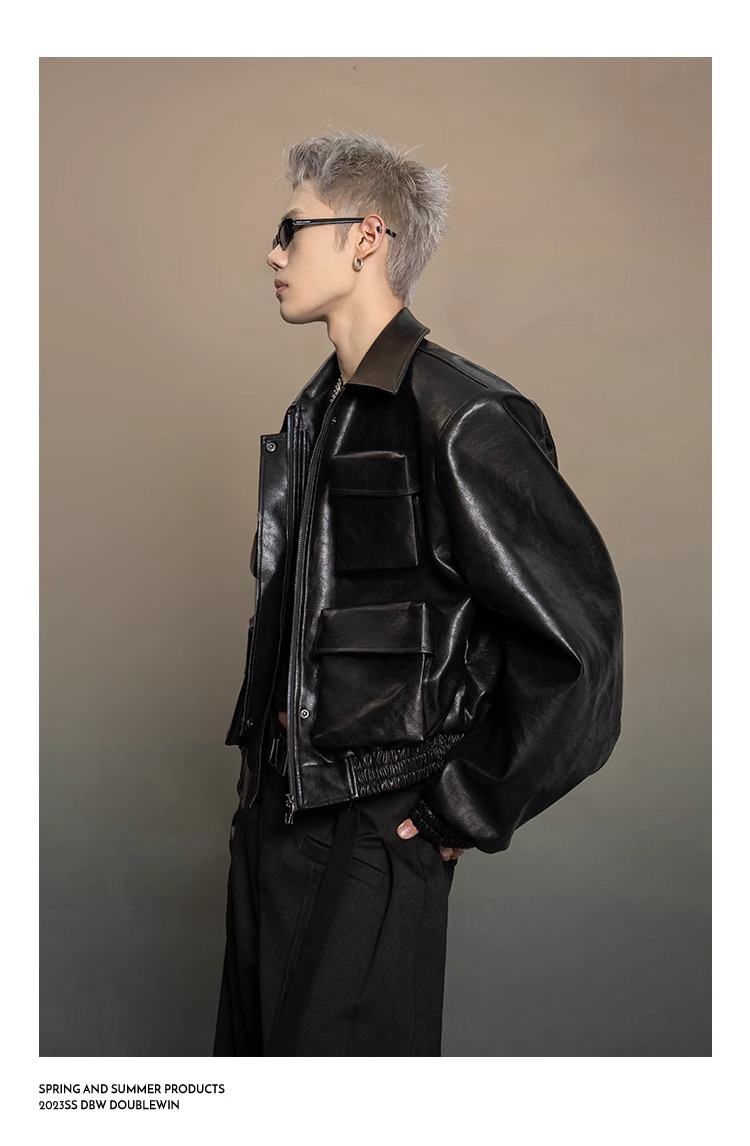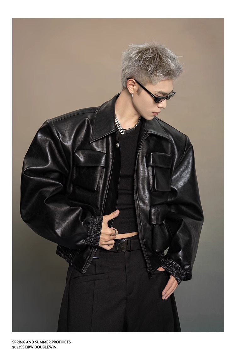 한국 스타일 프로필 디자인 센스 가죽 자켓 남자 봄과 가을 2024 새로운 느슨한 캐주얼 올 매치 재킷 탑