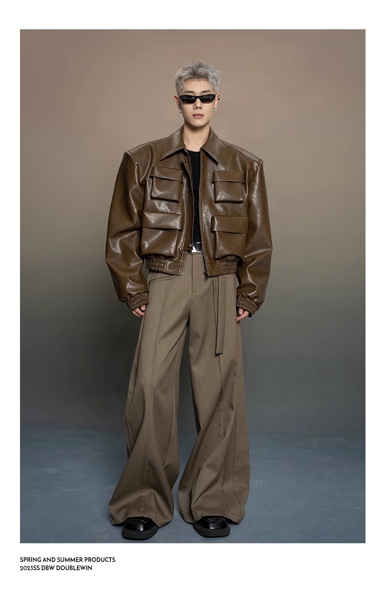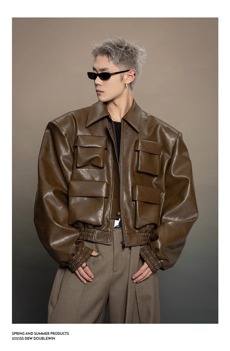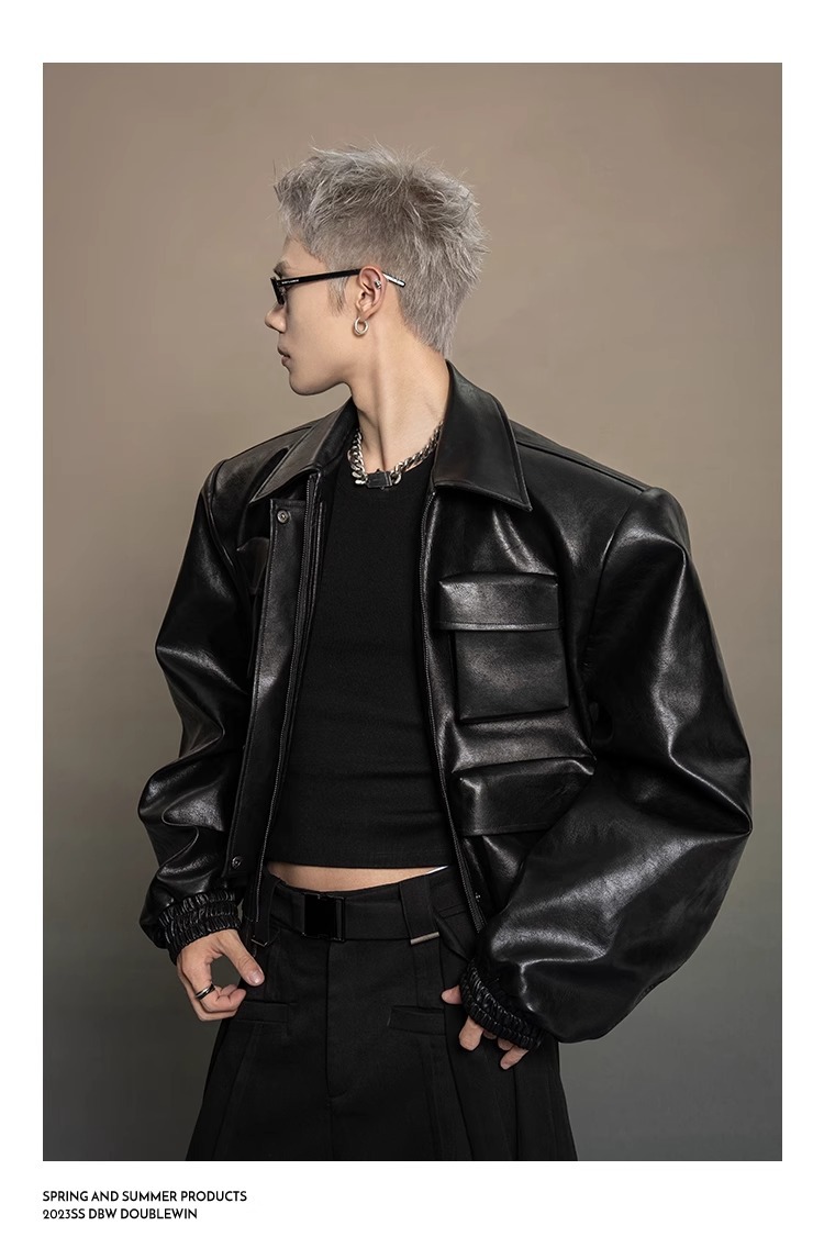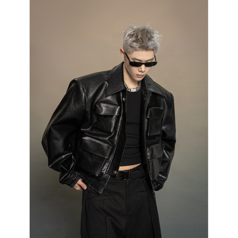한국 스타일 프로필 디자인 센스 가죽 자켓 남자 봄과 가을 2024 새로운 느슨한 캐주얼 올 매치 재킷 탑
