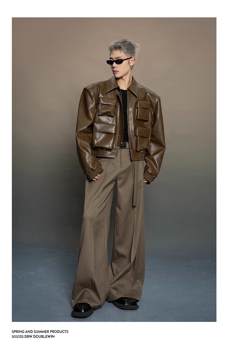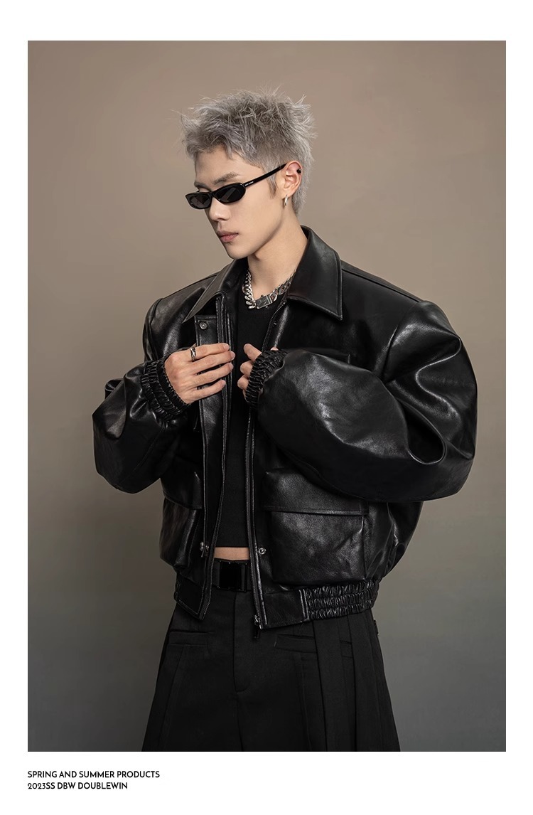 한국 스타일 프로필 디자인 센스 가죽 자켓 남자 봄과 가을 2024 새로운 느슨한 캐주얼 올 매치 재킷 탑스토어 가기