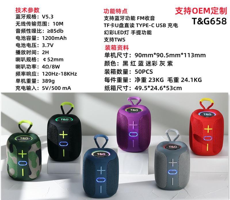 국경 TG658 블루투스 스피커 휴대용 야외 휴대용 소형 스테레오 TWS 무선 서브 우퍼 라이트 카드스토어 가기