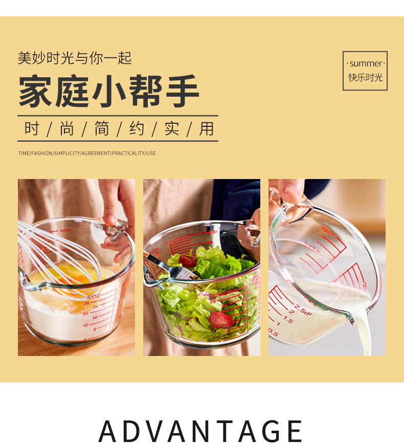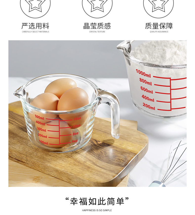 가정용 높은 붕규산 유리 측정 컵 핸들 대용량 주방 공급 우유 계란 측정 도구