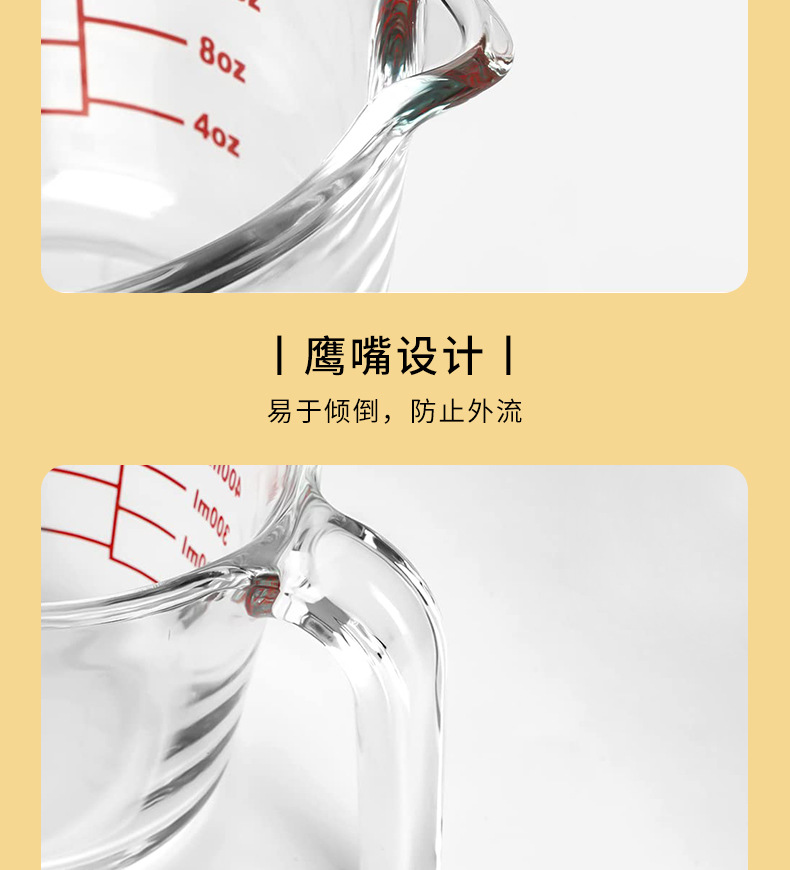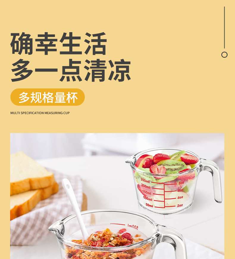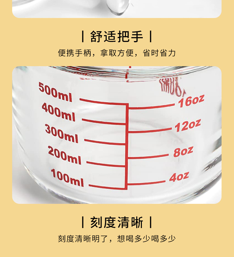 가정용 높은 붕규산 유리 측정 컵 핸들 대용량 주방 공급 우유 계란 측정 도구스토어 가기
