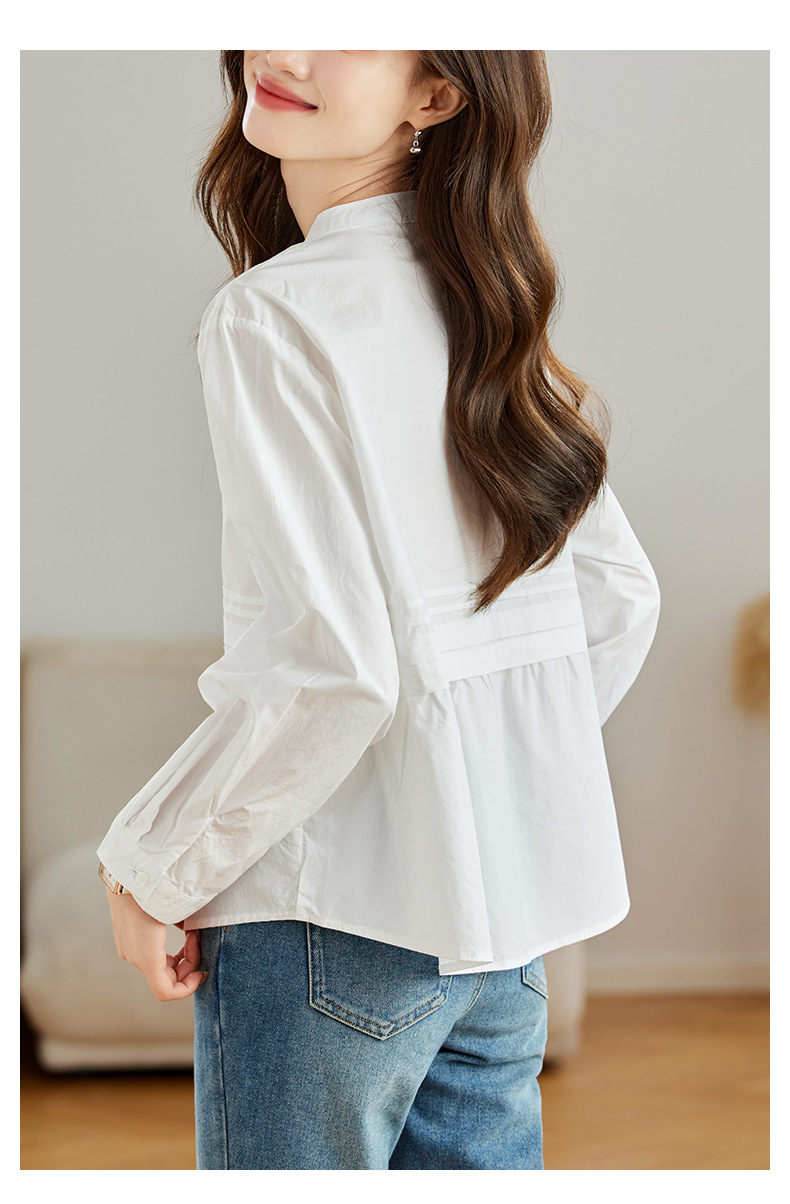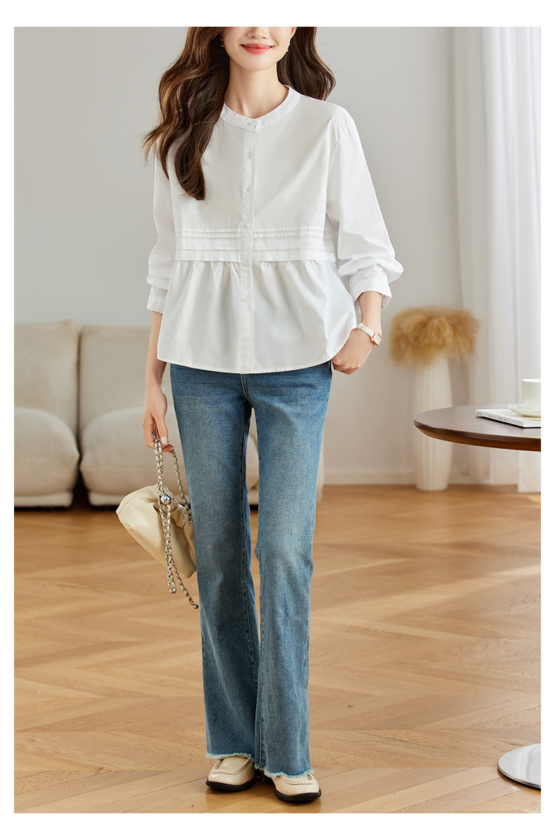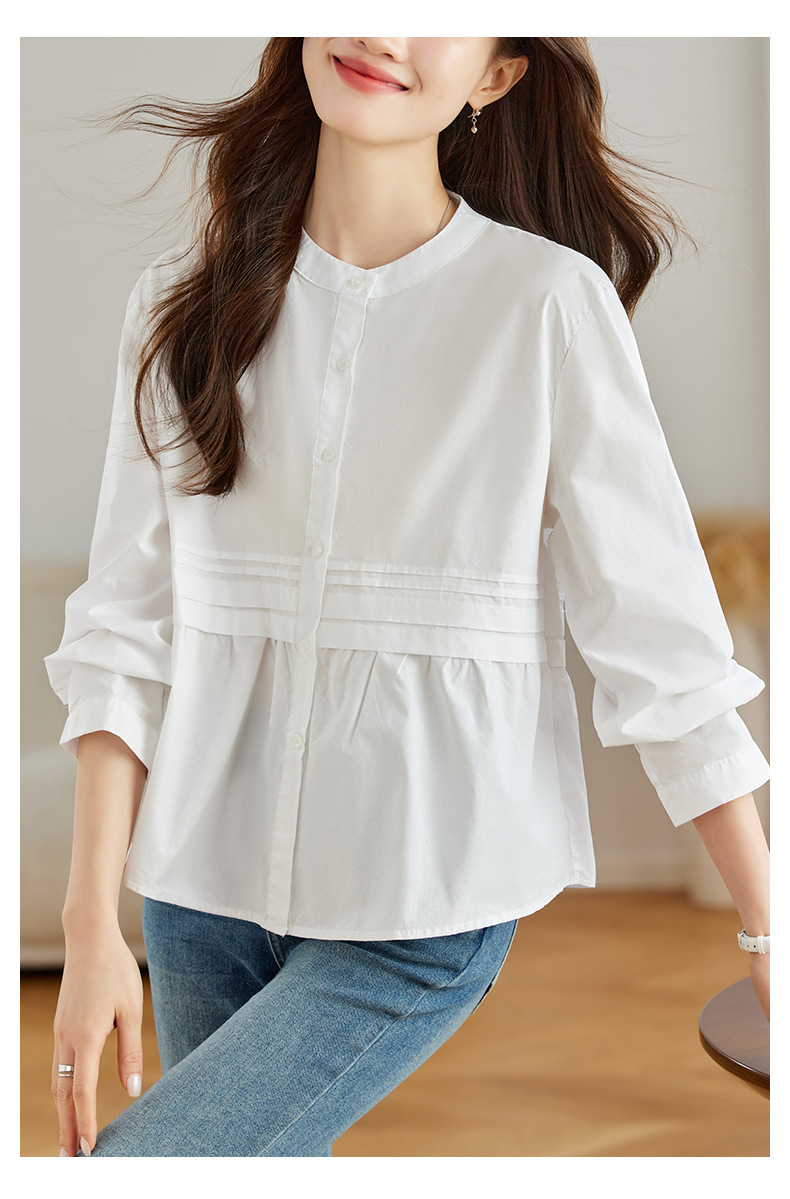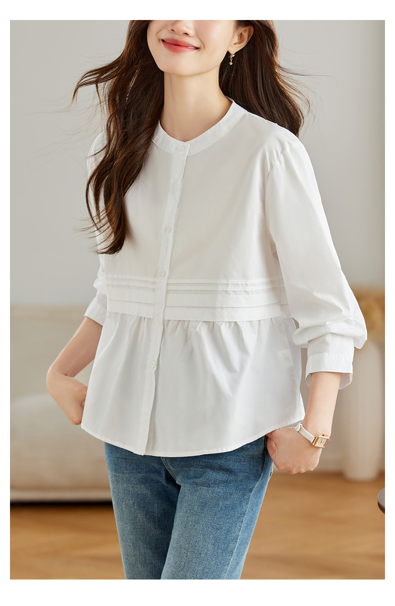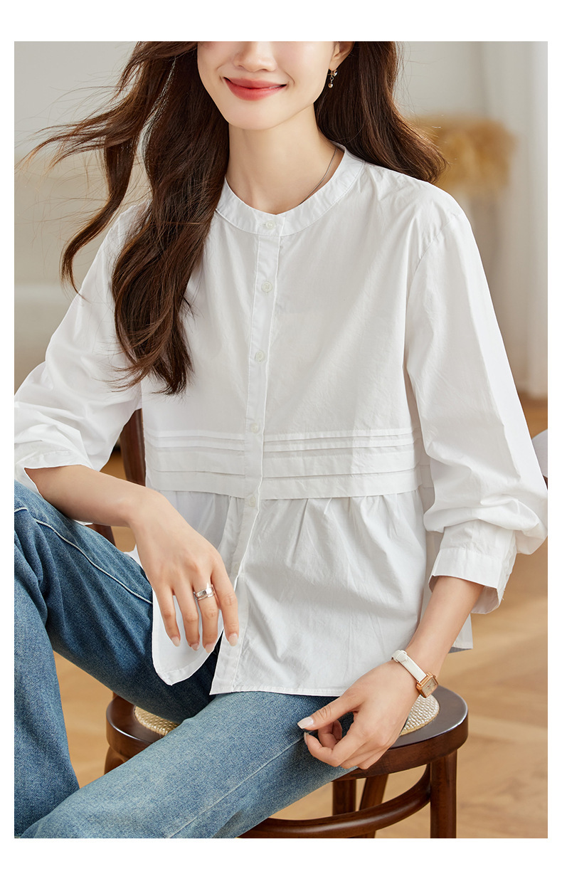 공장 직판 디자인 감각적인 주름 장식 라운드넥 스트라이프 긴팔 셔츠 여성용 2026 봄 가을 신상 루즈핏 슬리밍 탑스토어 가기
