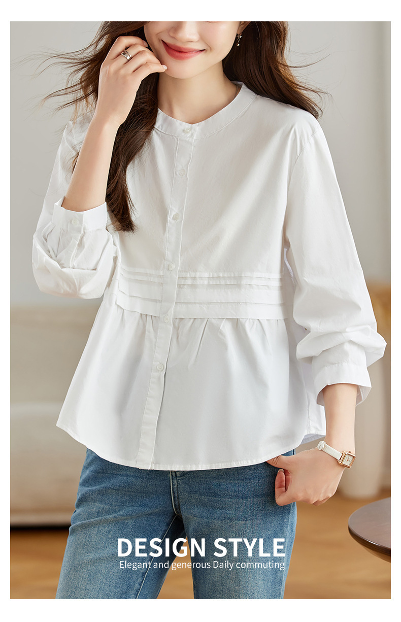 공장 직판 디자인 감각적인 주름 장식 라운드넥 스트라이프 긴팔 셔츠 여성용 2026 봄 가을 신상 루즈핏 슬리밍 탑