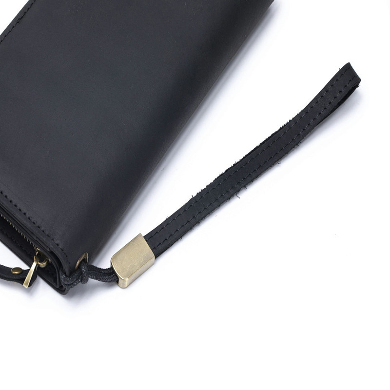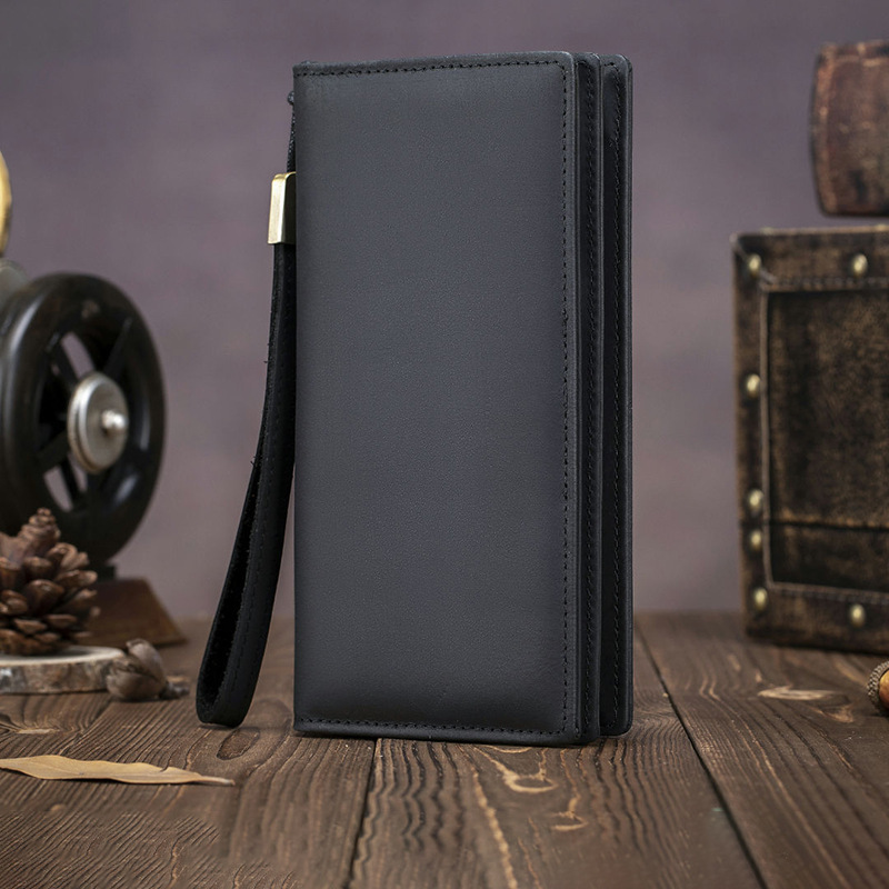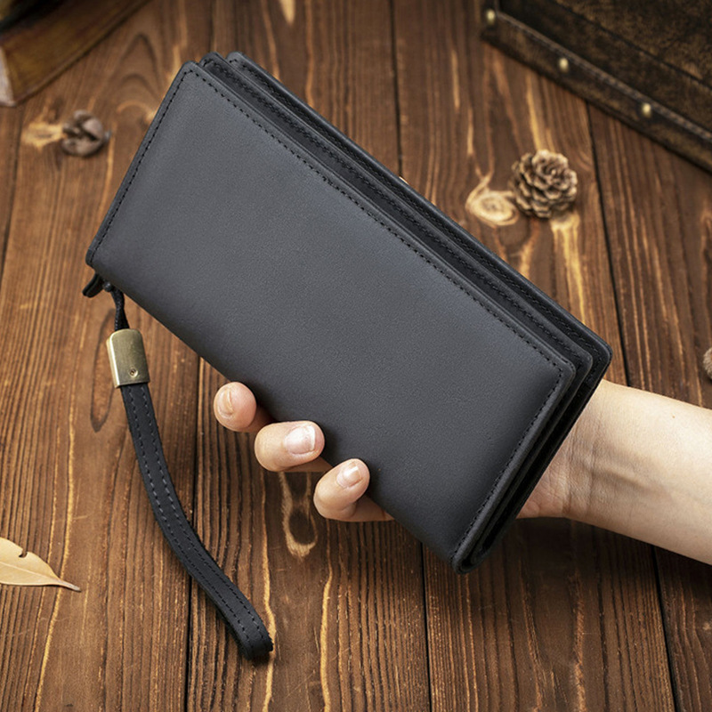 새로운 대용량 탑 레이어 Cowhide 지갑 간단한 단색 긴 남성 지갑 2 배 지퍼 클러치 재고