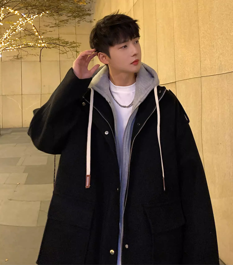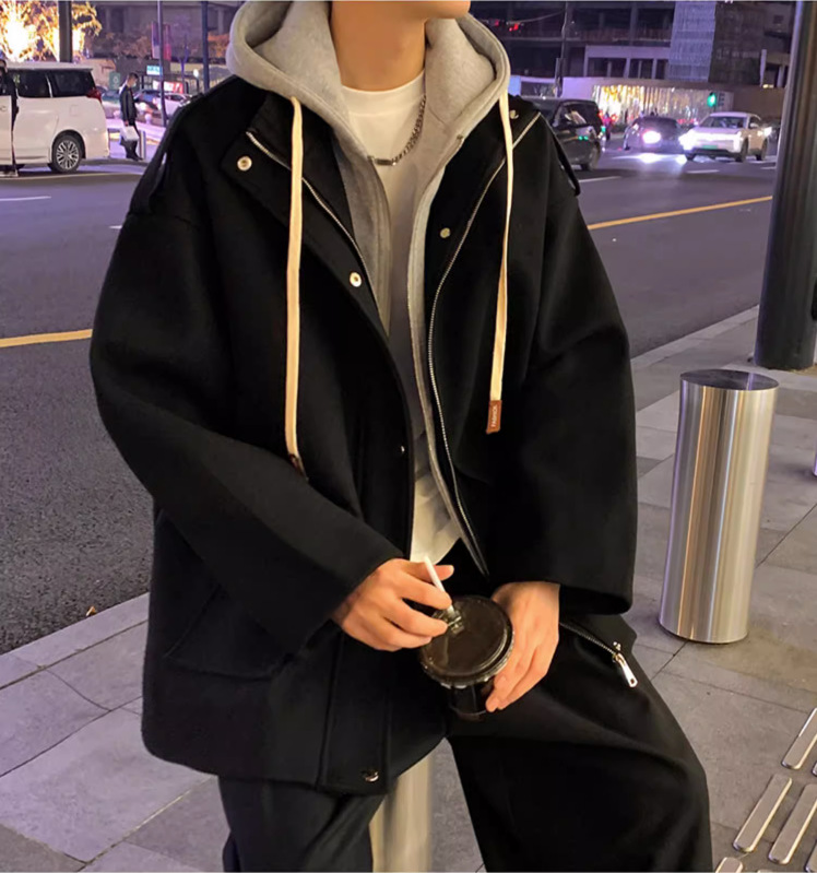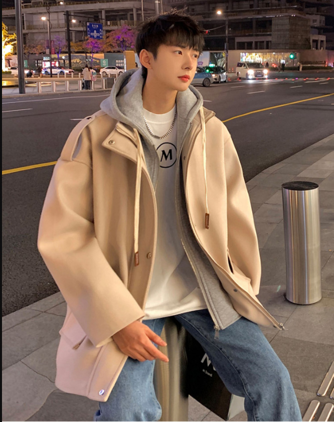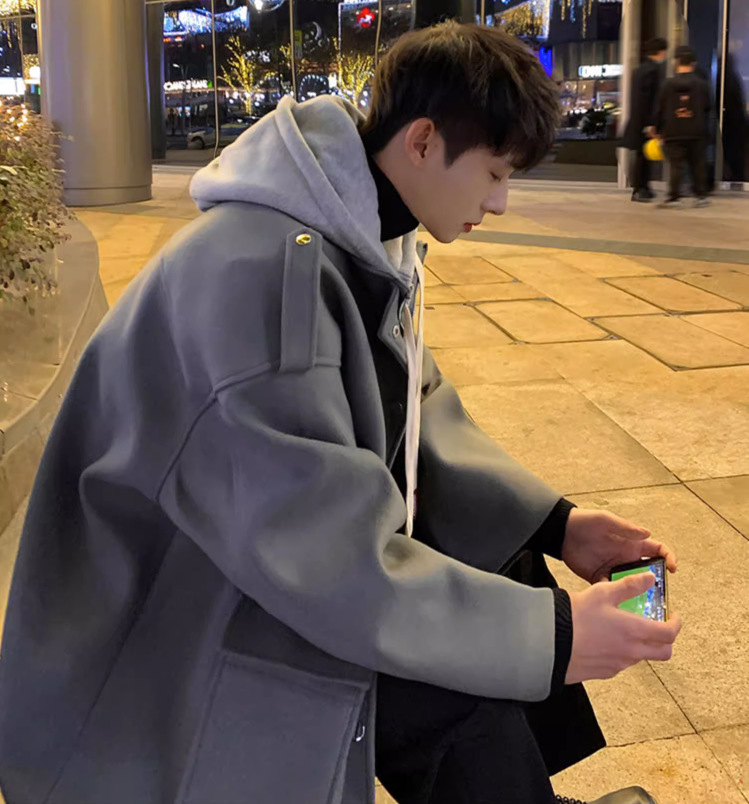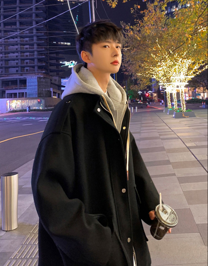 가짜 투피스 울 코트 소년 봄과 가을 얇은 하이 엔드 가운 유행 브랜드 야기 슈아이 프라이드 스트리트 패셔너블 루즈 재킷