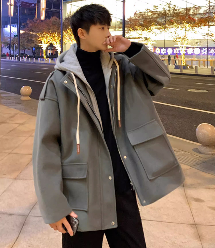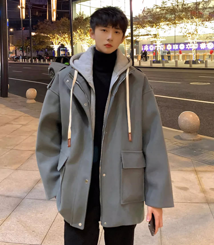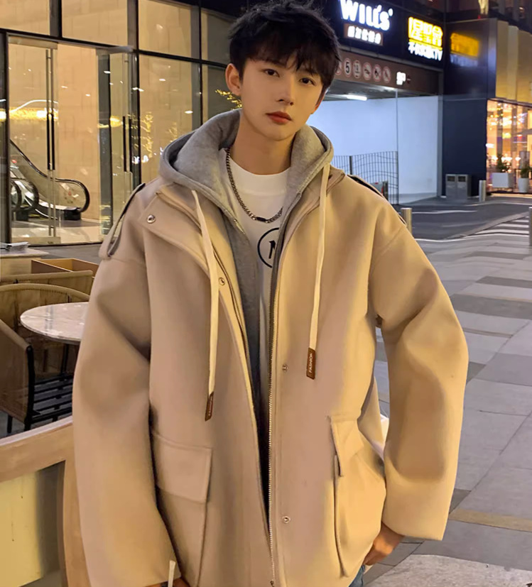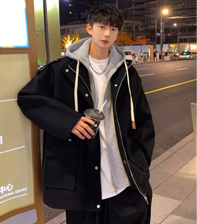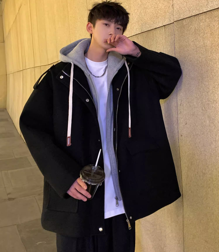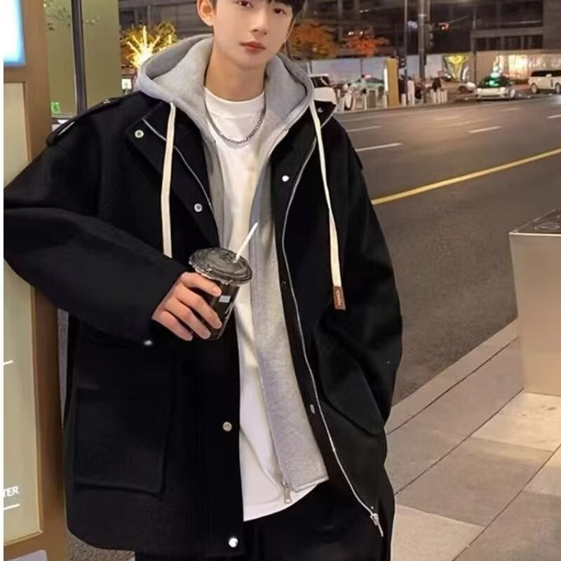가짜 투피스 울 코트 소년 봄과 가을 얇은 하이 엔드 가운 유행 브랜드 야기 슈아이 프라이드 스트리트 패셔너블 루즈 재킷스토어 가기