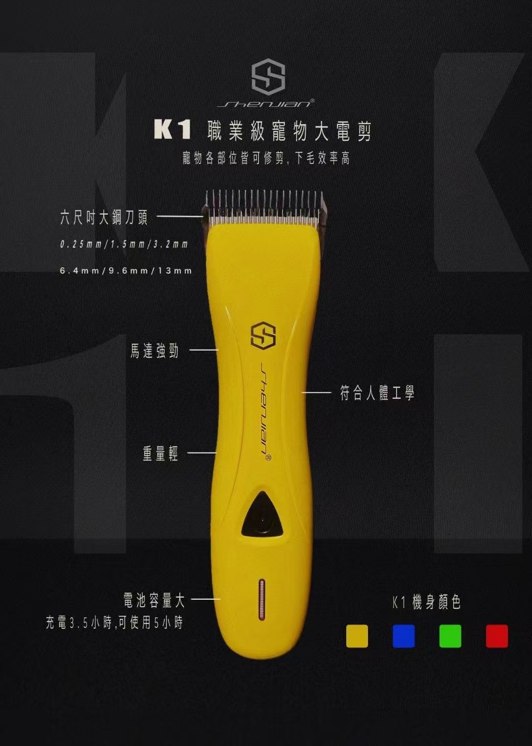 대만 신 전단 K1 애완 동물 전기 전단 개 고양이 큰 전기 전단 충전식 절단기 머리 다양 한 머리 유지