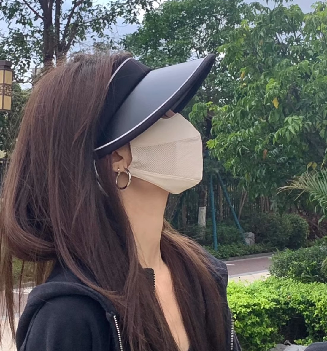 • Z12—자외선 차단 투피스 세트 [기본 블랙 아이스 실크 헤드밴드 + 블랙 마스크]