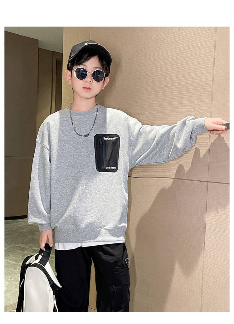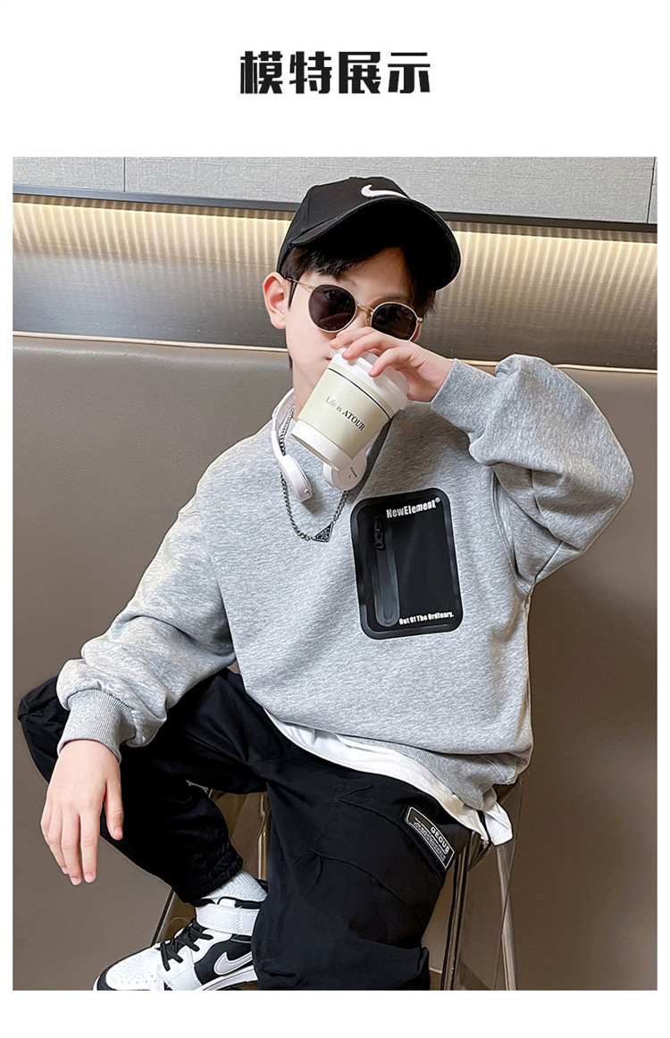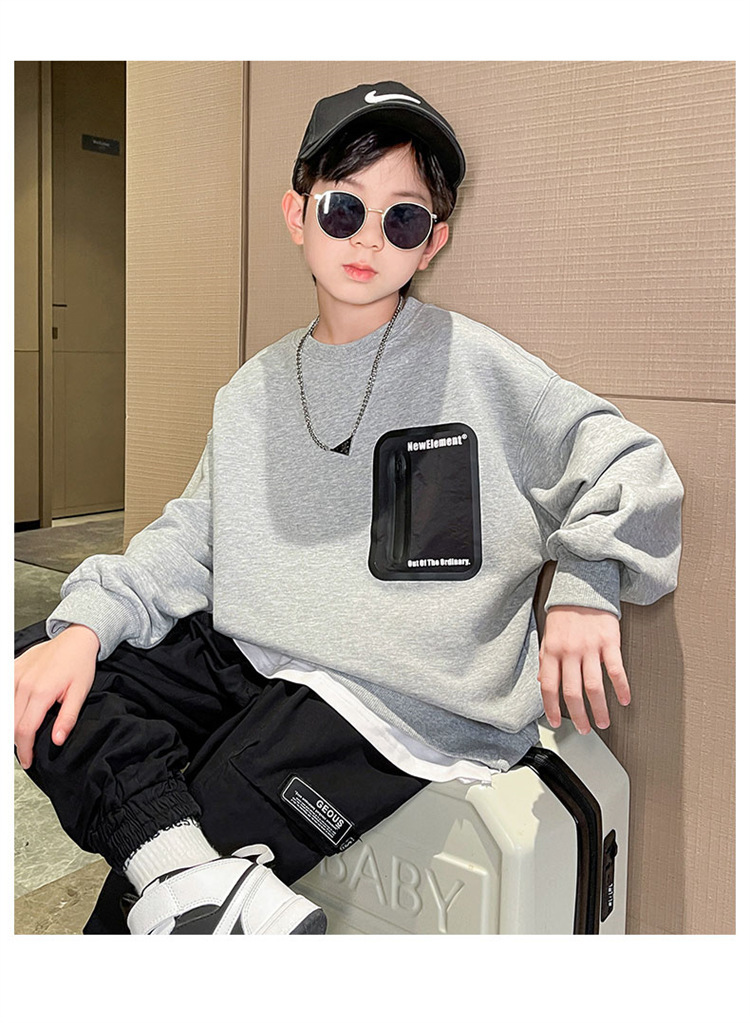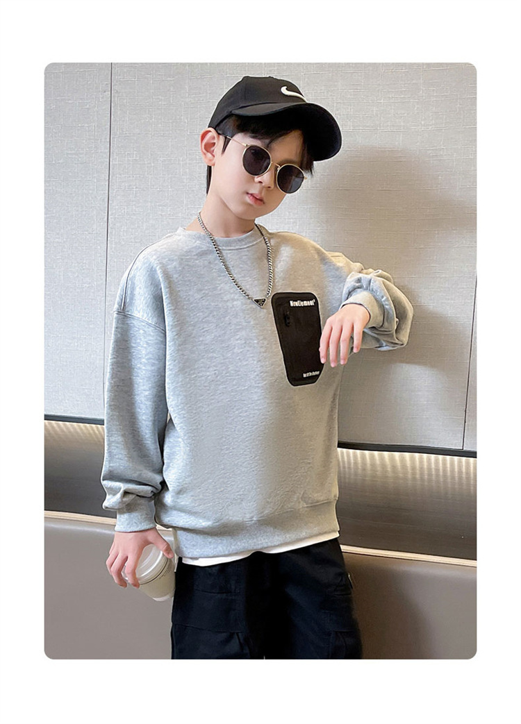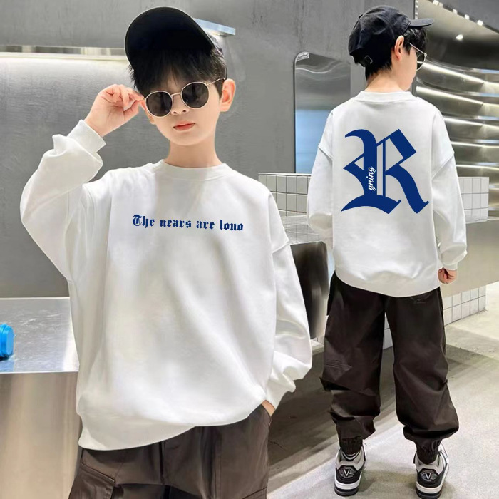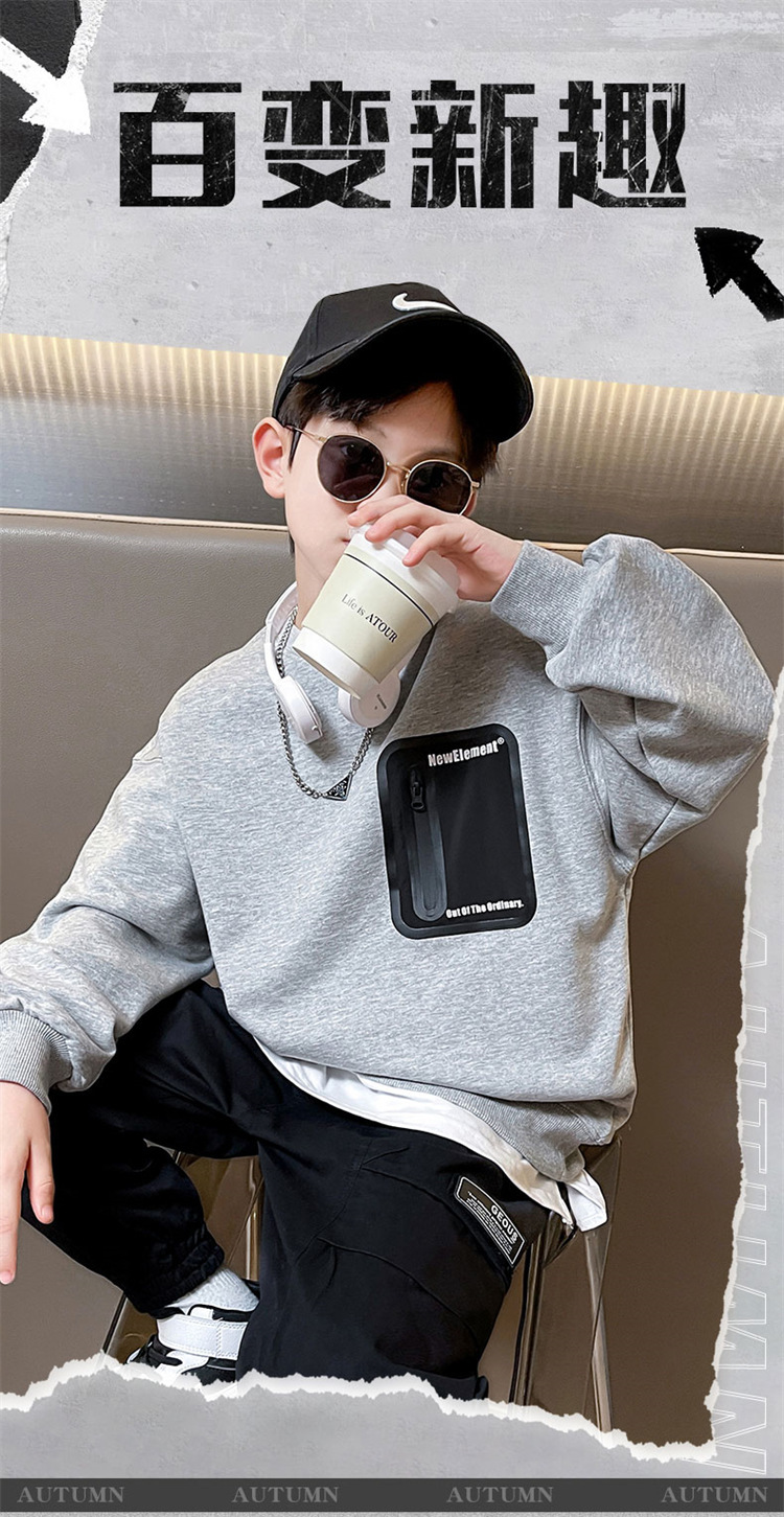 2026년 가을 겨울 신상 남아용 패셔너블한 라운드넥 순면 스웨트셔츠, 중대형 아동용 다용도 트렌디 아동복 상의스토어 가기