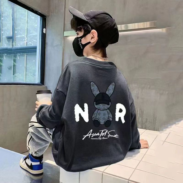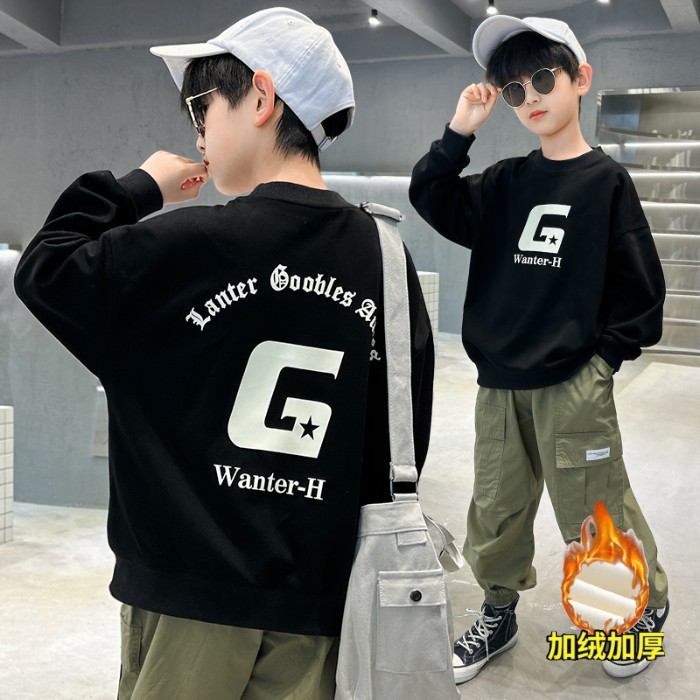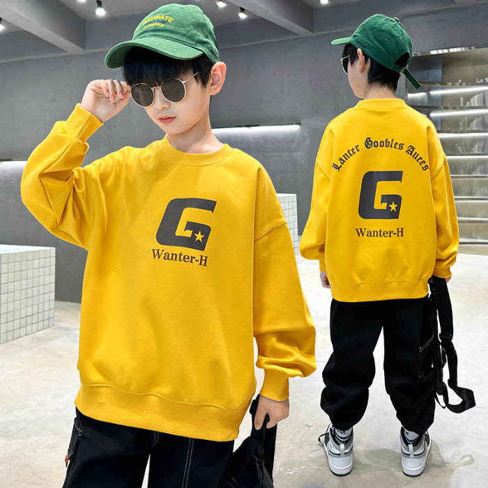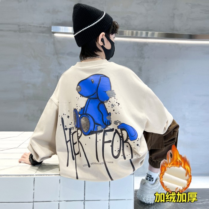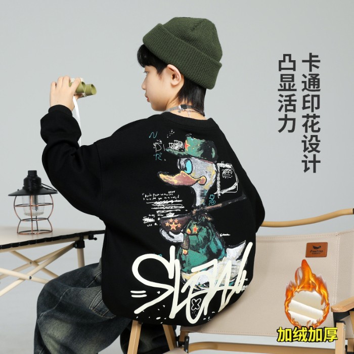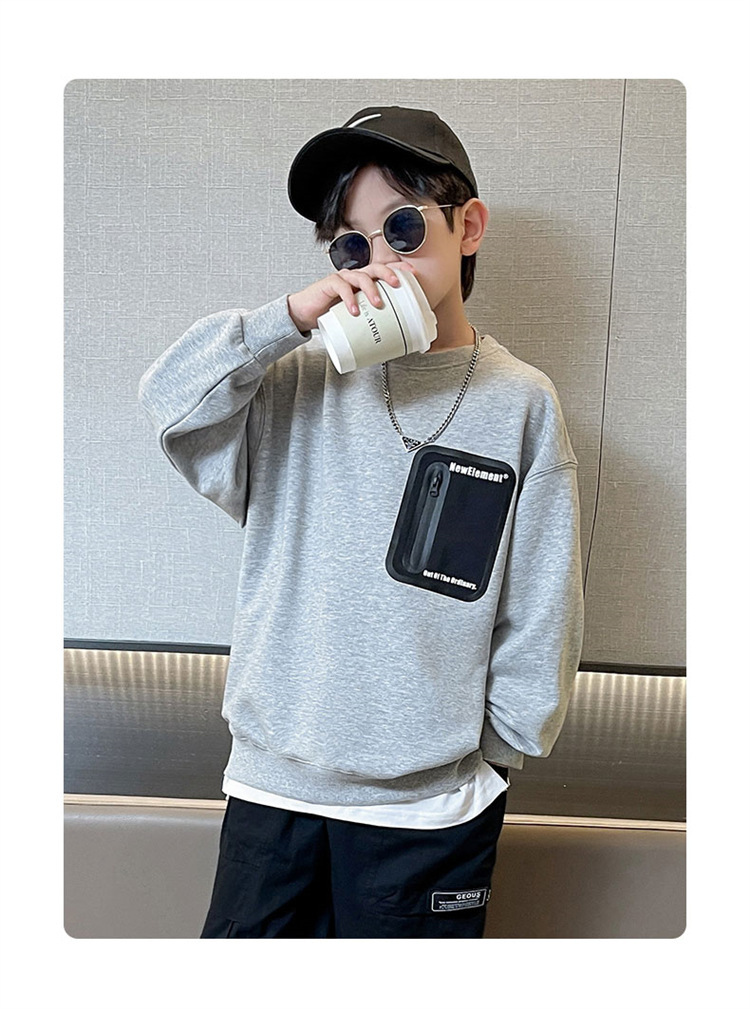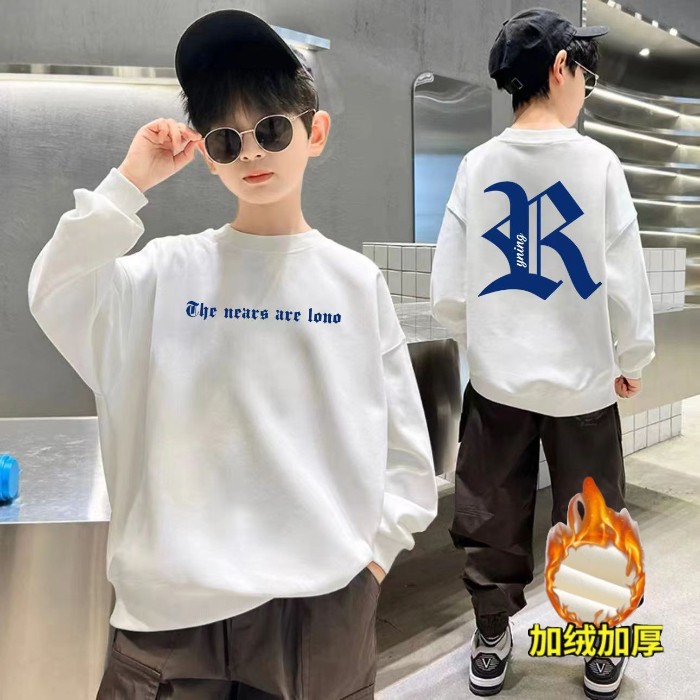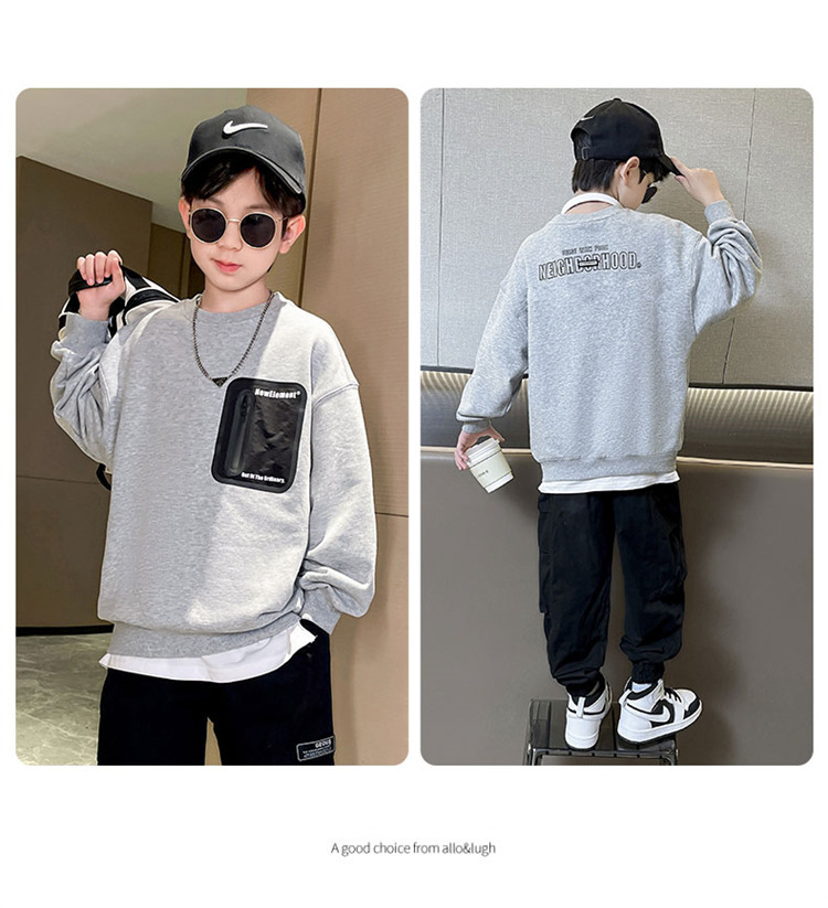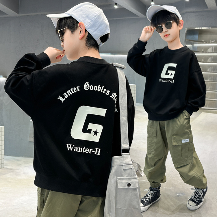 2026년 가을 겨울 신상 남아용 패셔너블한 라운드넥 순면 스웨트셔츠, 중대형 아동용 다용도 트렌디 아동복 상의스토어 가기