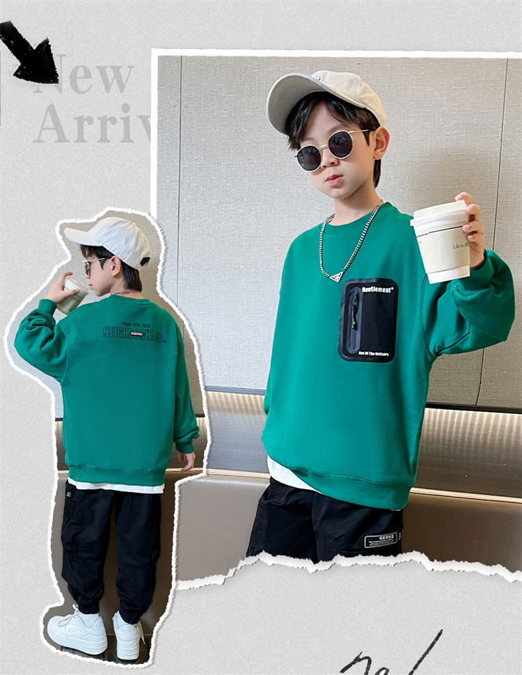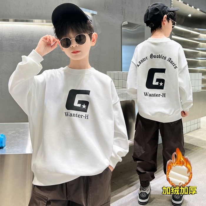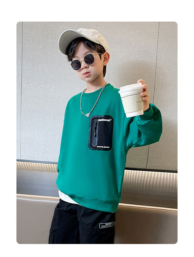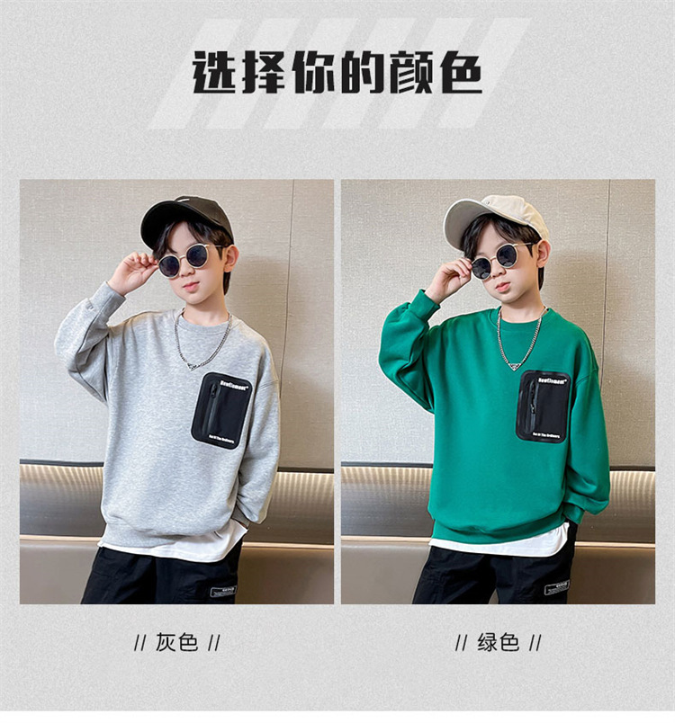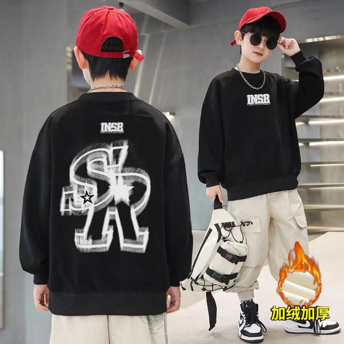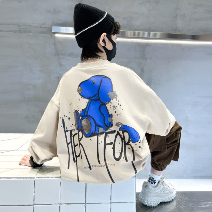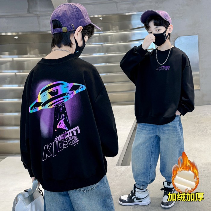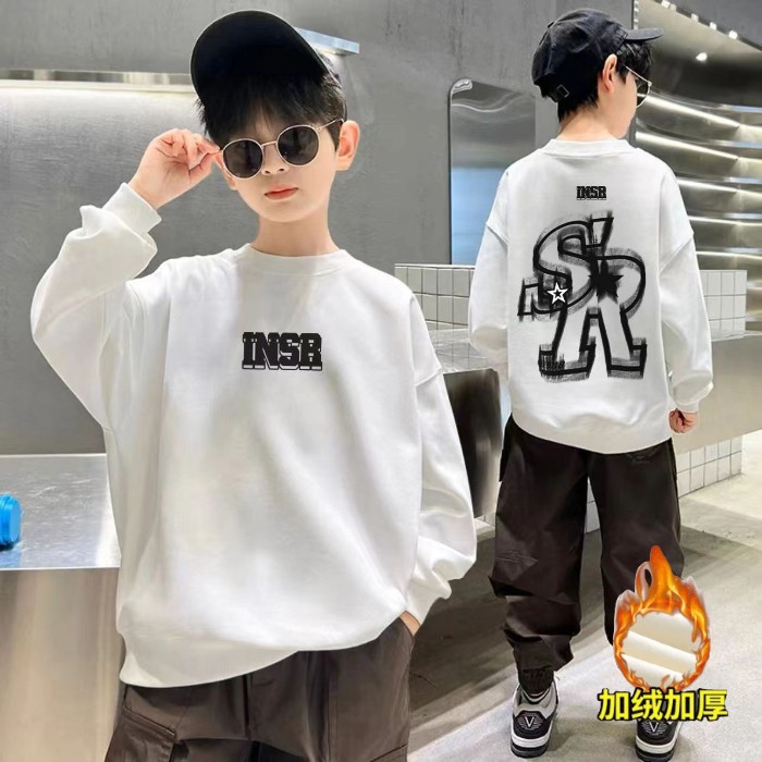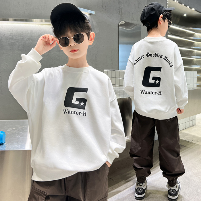 2026년 가을 겨울 신상 남아용 패셔너블한 라운드넥 순면 스웨트셔츠, 중대형 아동용 다용도 트렌디 아동복 상의스토어 가기