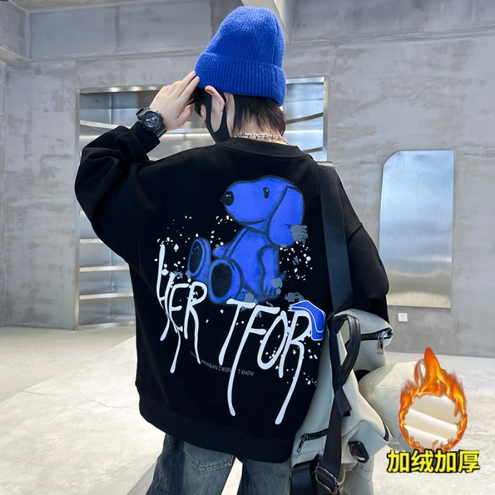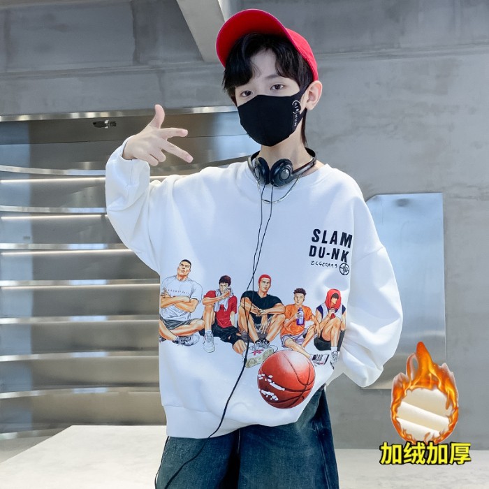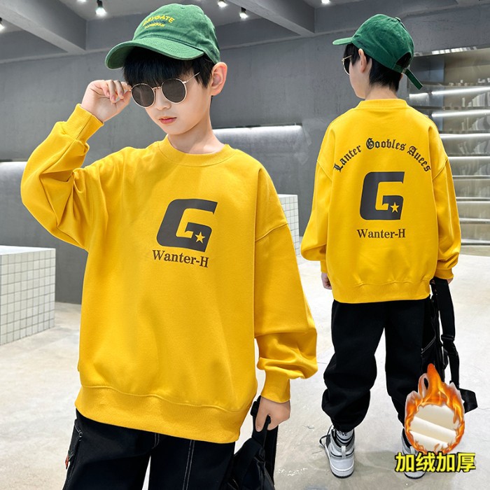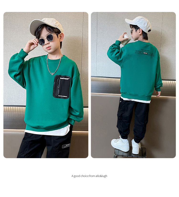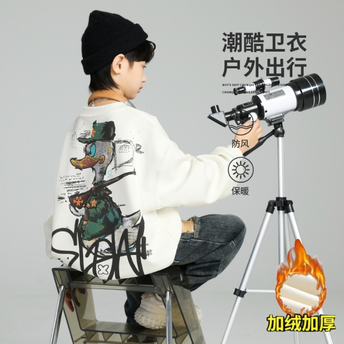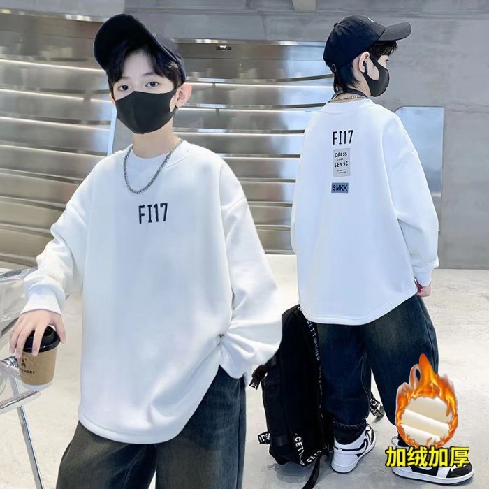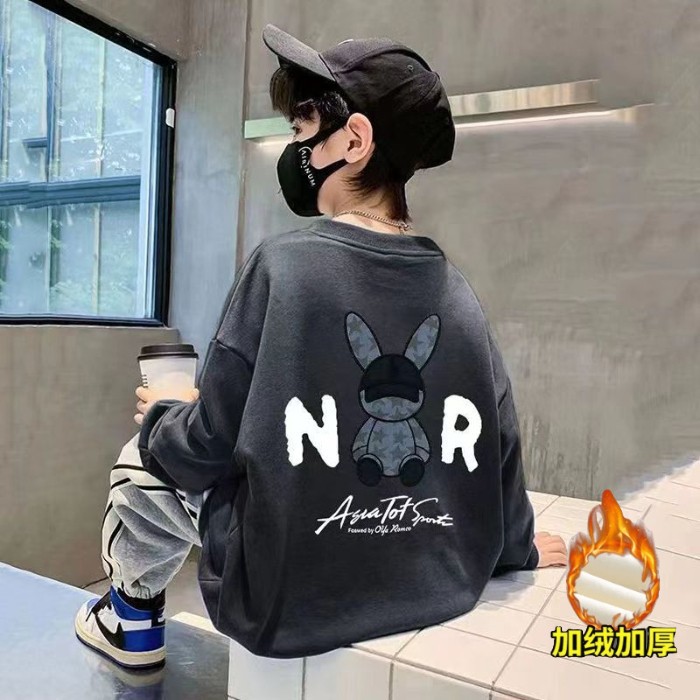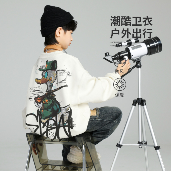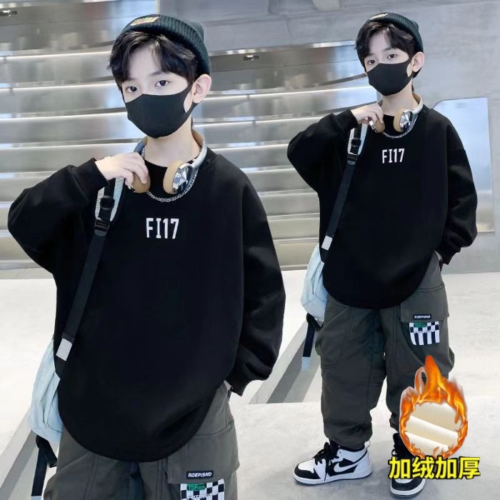 2026년 가을 겨울 신상 남아용 패셔너블한 라운드넥 순면 스웨트셔츠, 중대형 아동용 다용도 트렌디 아동복 상의스토어 가기