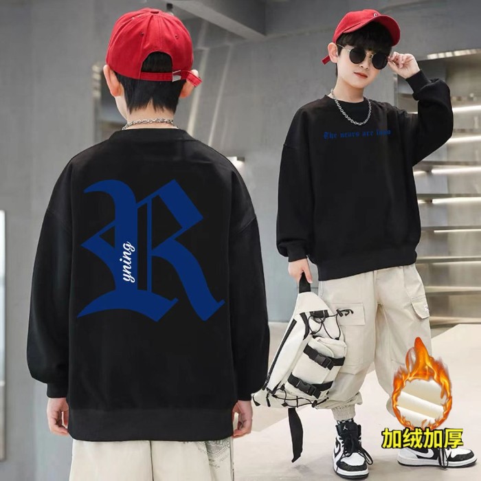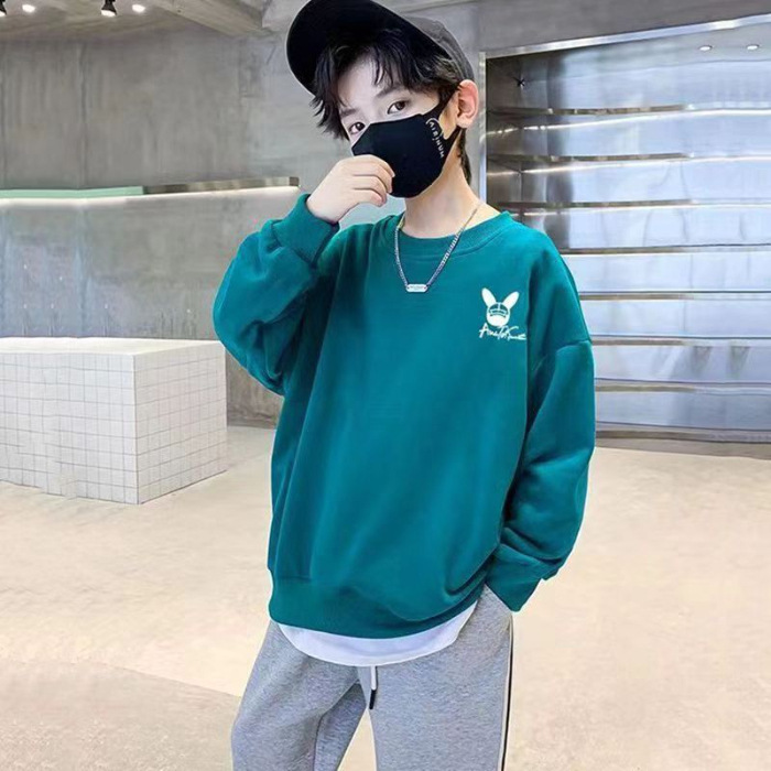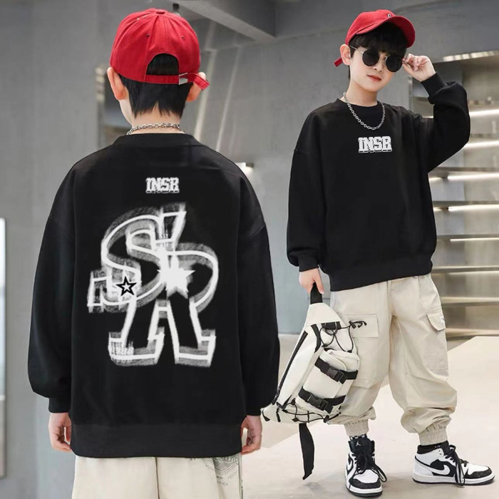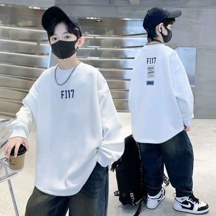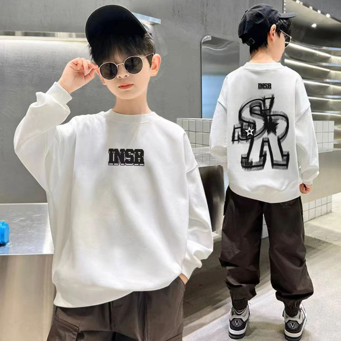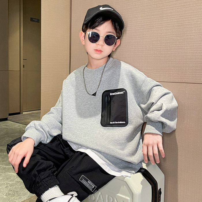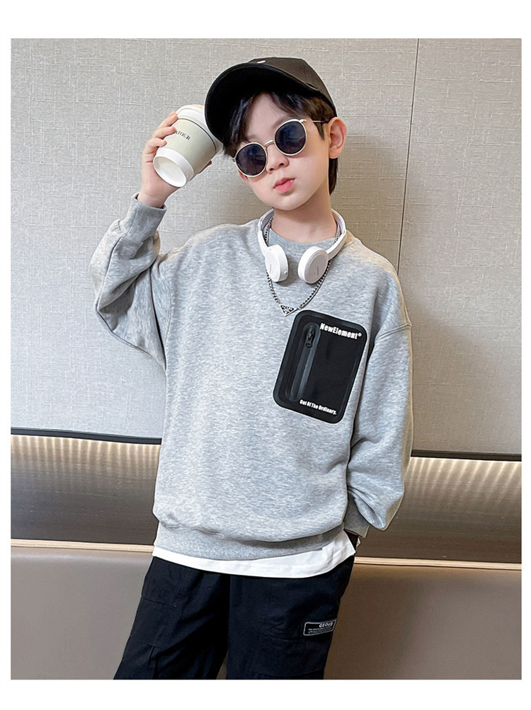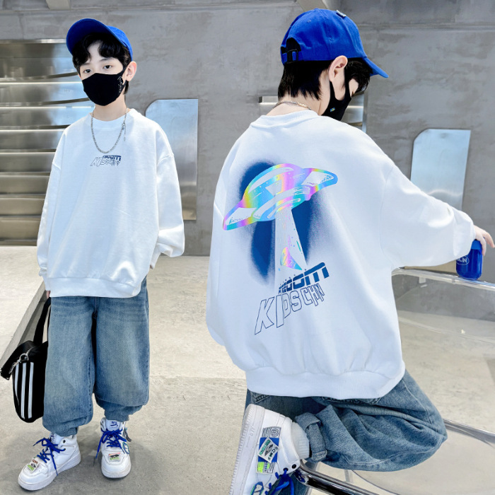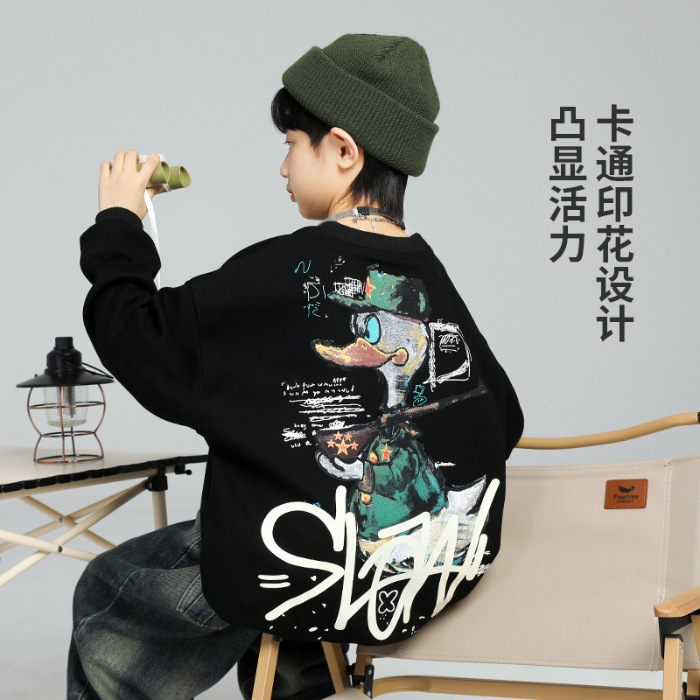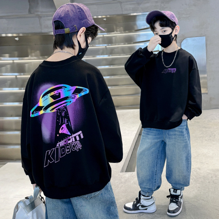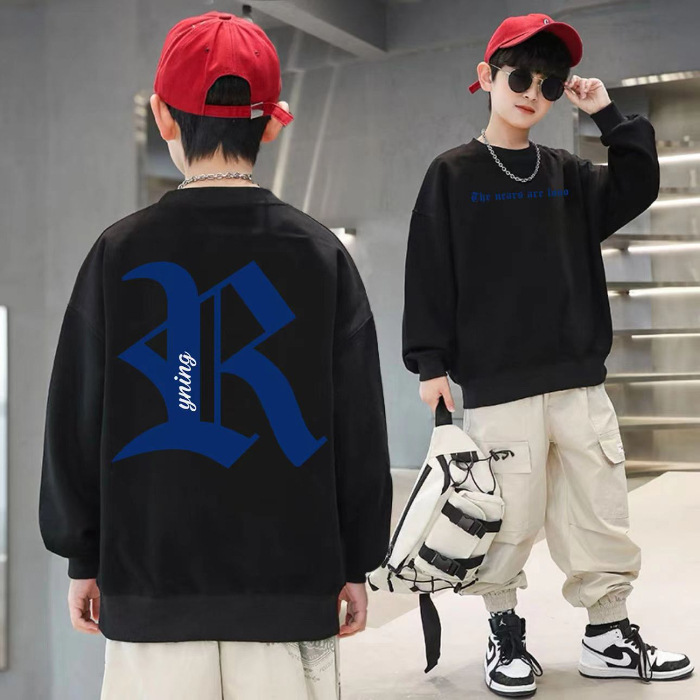 2026년 가을 겨울 신상 남아용 패셔너블한 라운드넥 순면 스웨트셔츠, 중대형 아동용 다용도 트렌디 아동복 상의