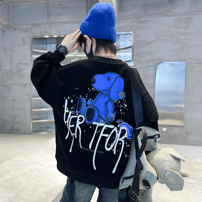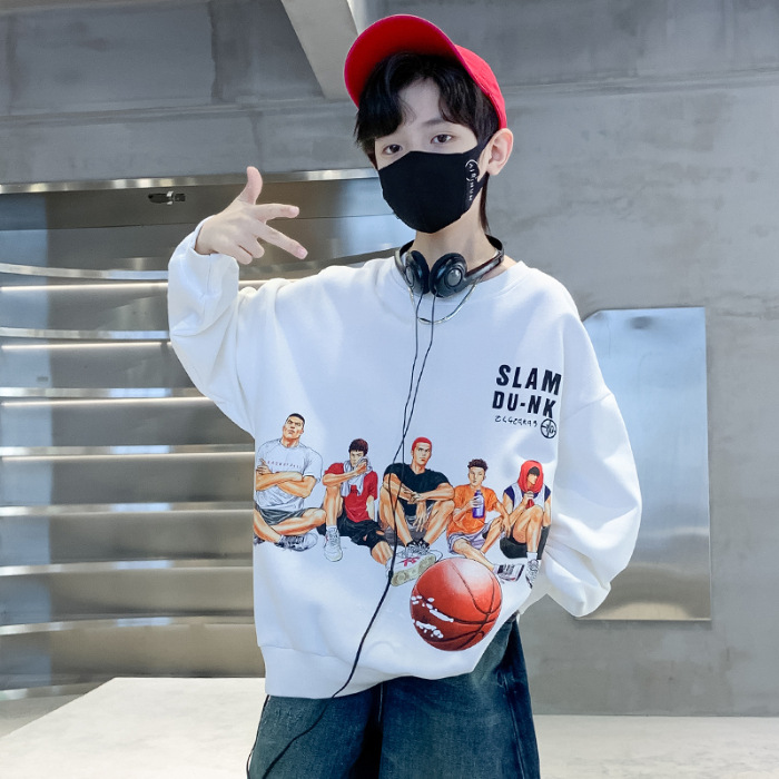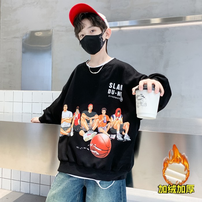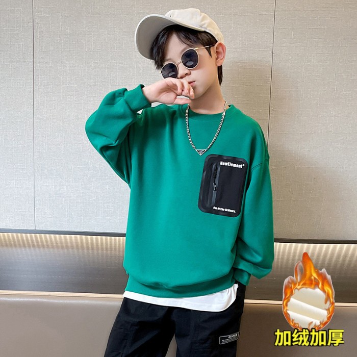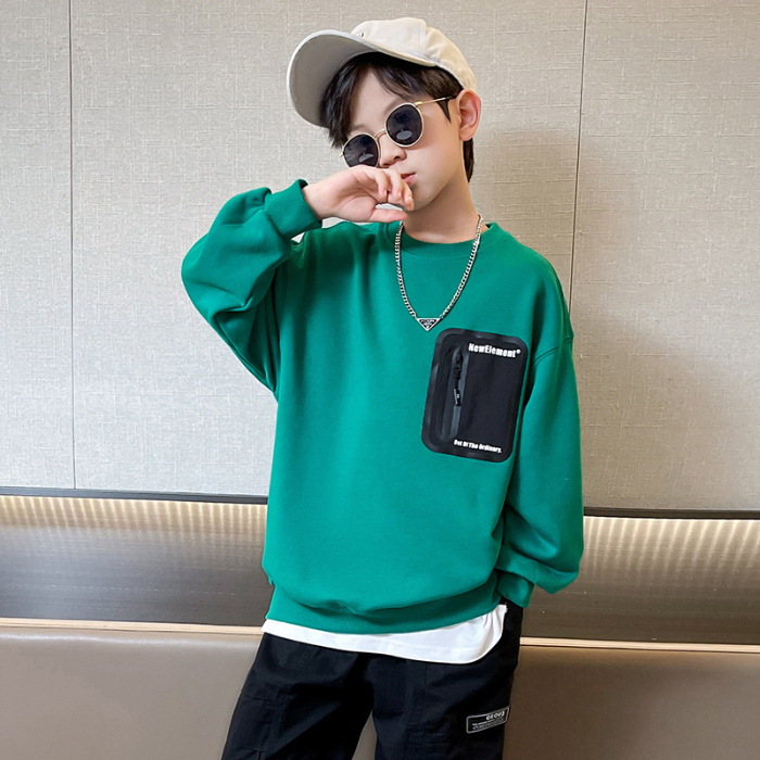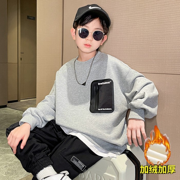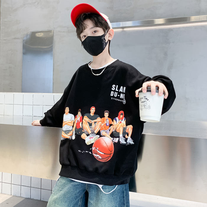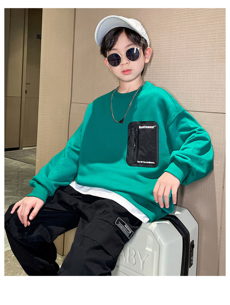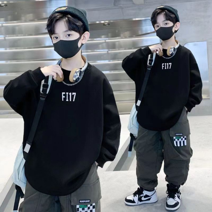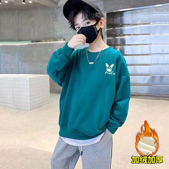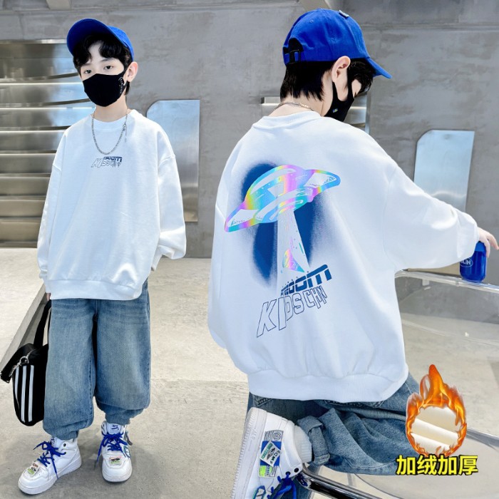 2026년 가을 겨울 신상 남아용 패셔너블한 라운드넥 순면 스웨트셔츠, 중대형 아동용 다용도 트렌디 아동복 상의