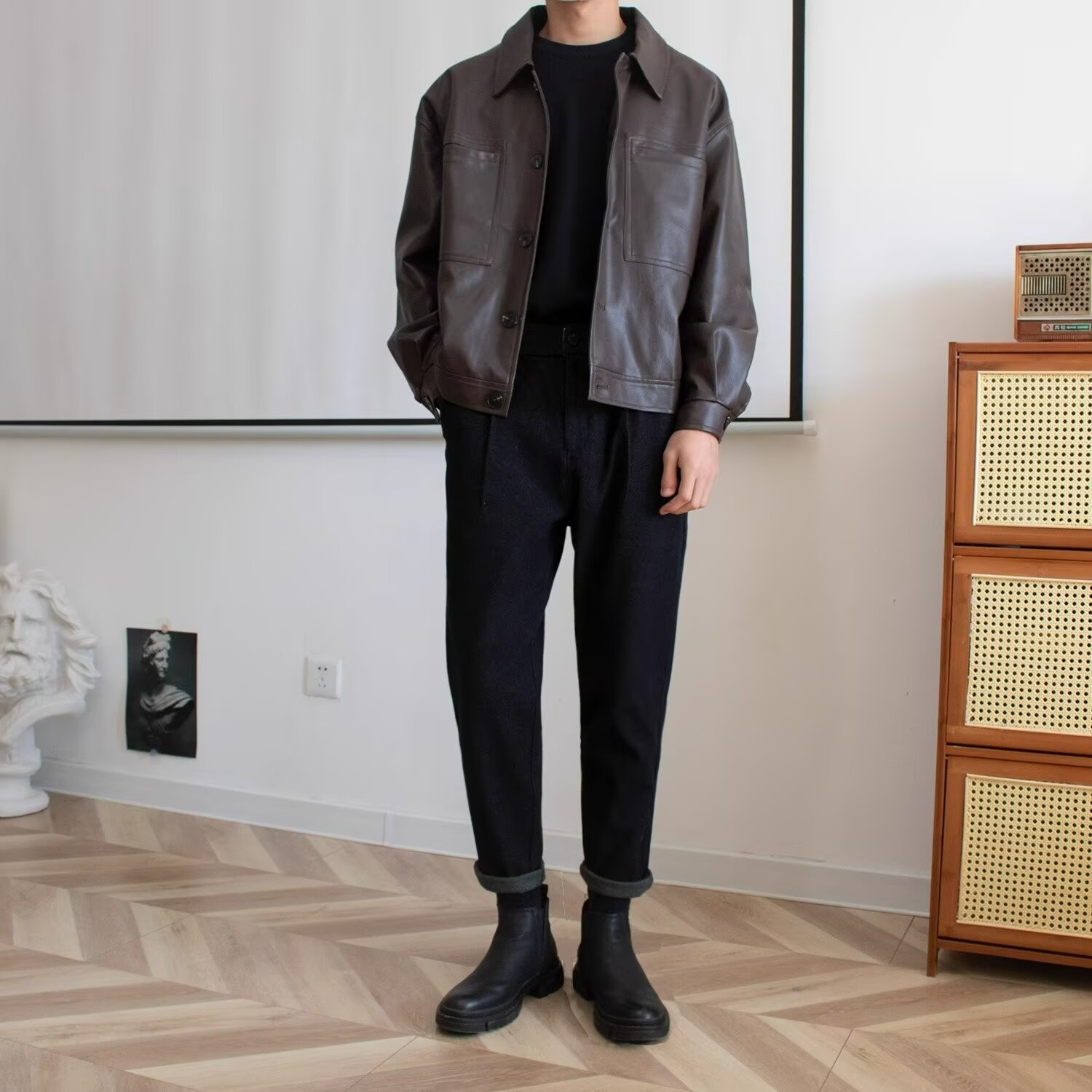 2024 봄과 가을 새로운 PU 가죽 남성 느슨한 캐주얼 미국 빈티지 짧은 오토바이 가죽 자켓 남성 코트스토어 가기