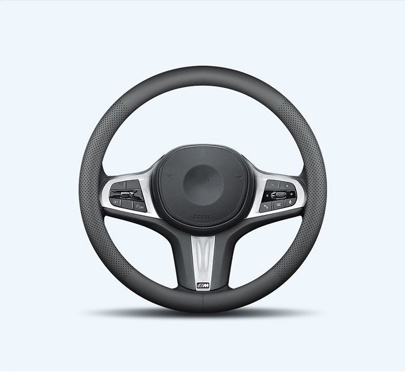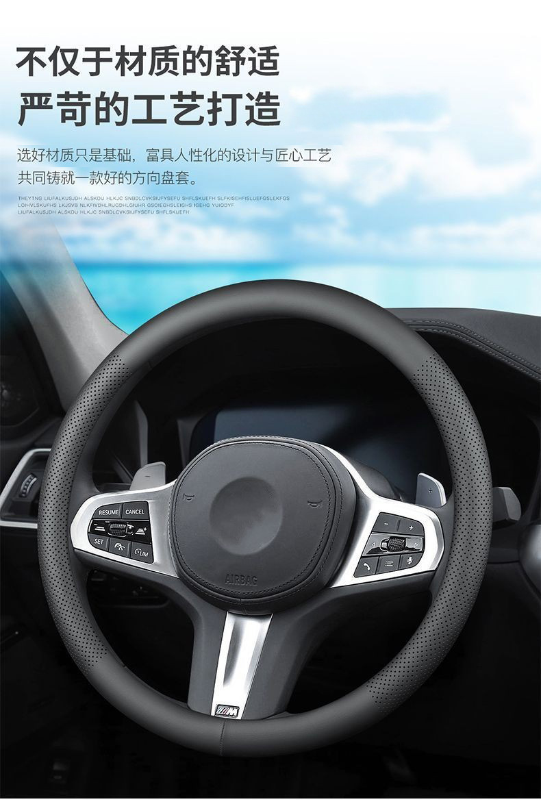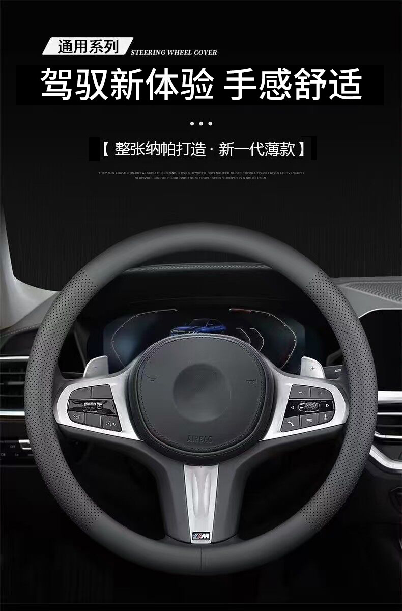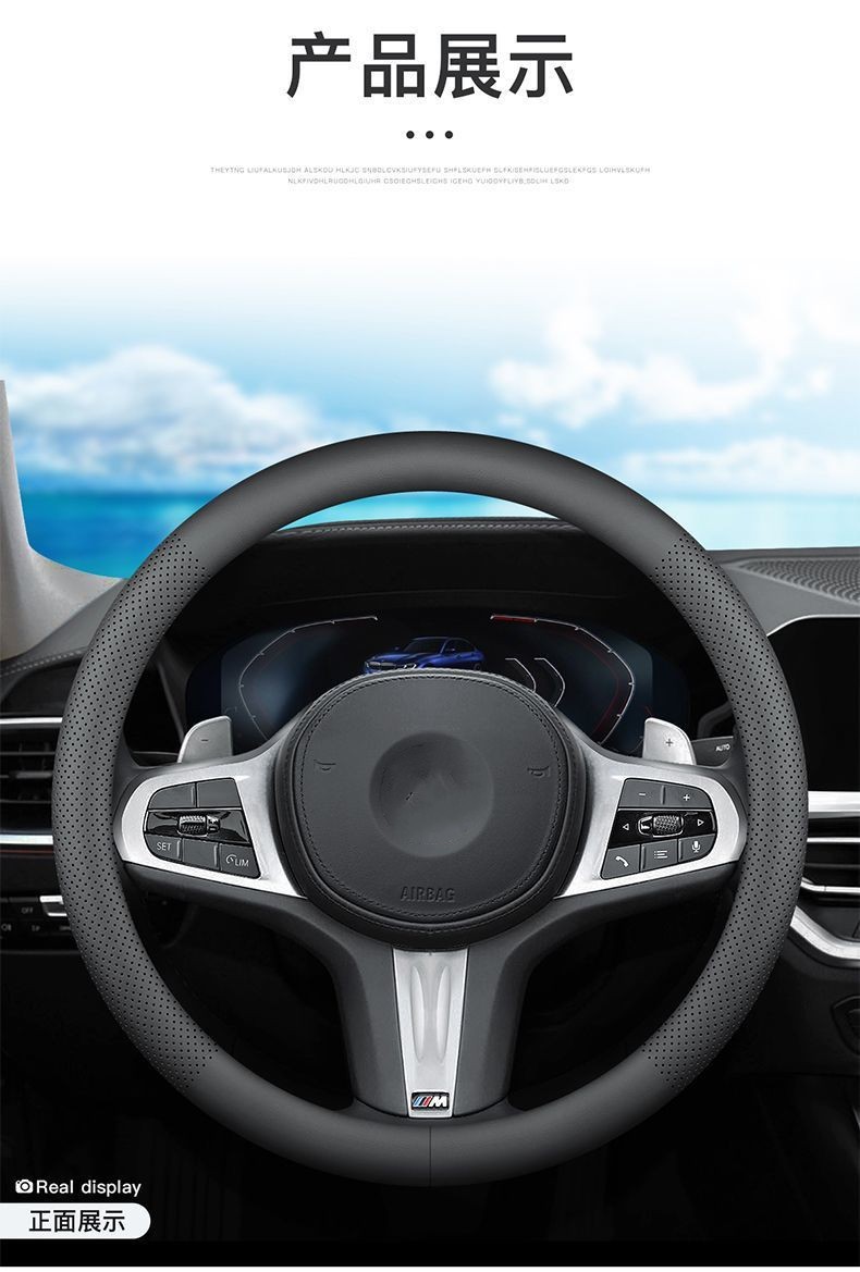 자동차 스티어링 휠 커버 사계절 보편적 인 천공 통기성 미끄럼 편안한 자동차 인테리어 수정 나파 가죽 핸들 커버