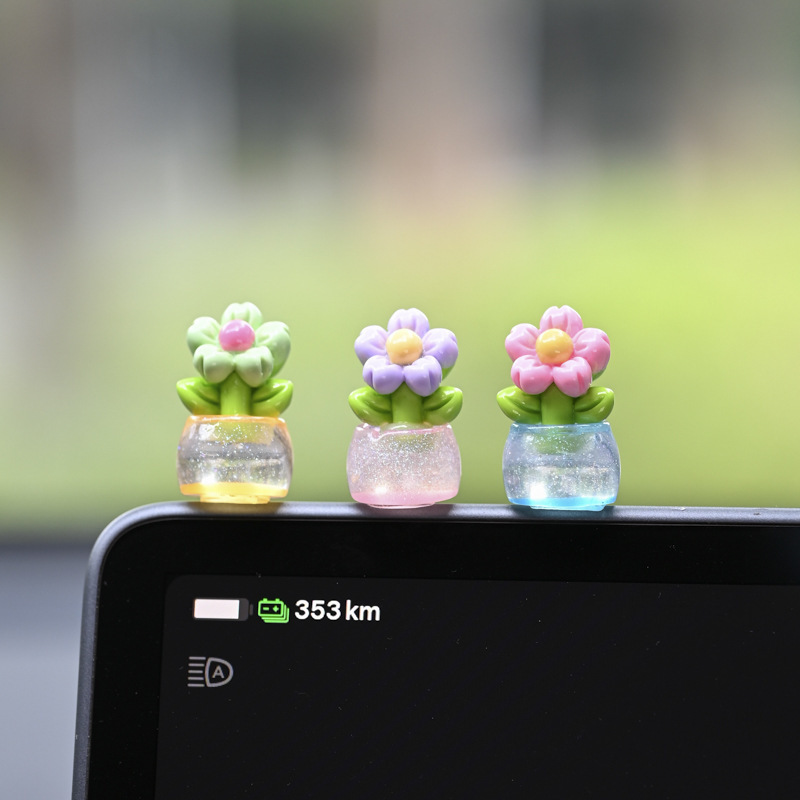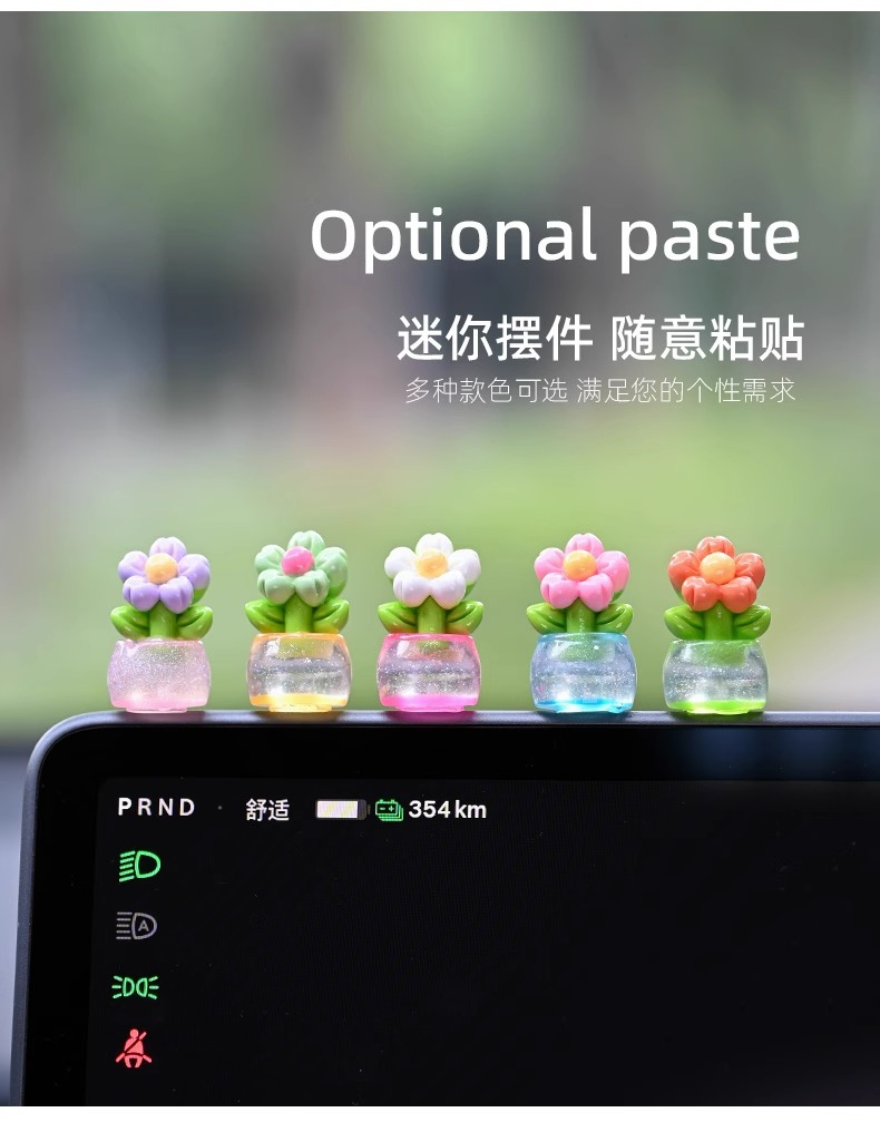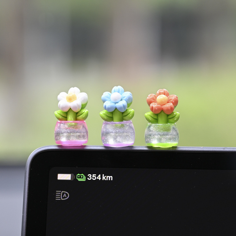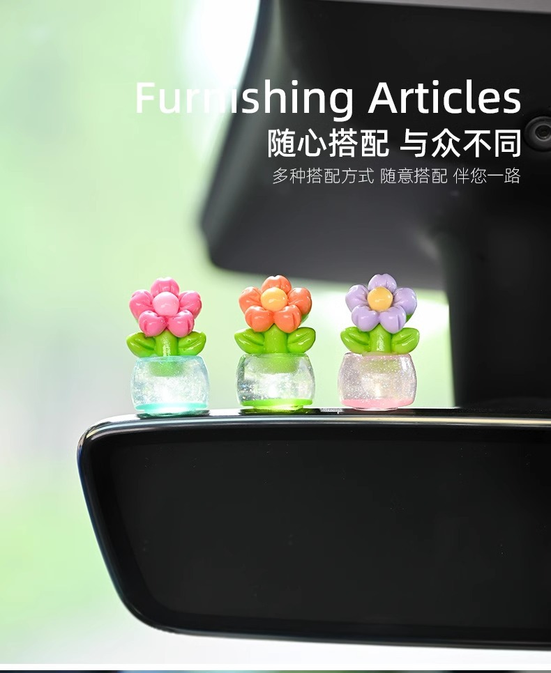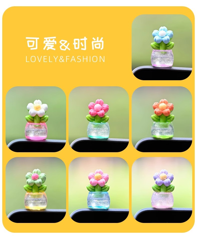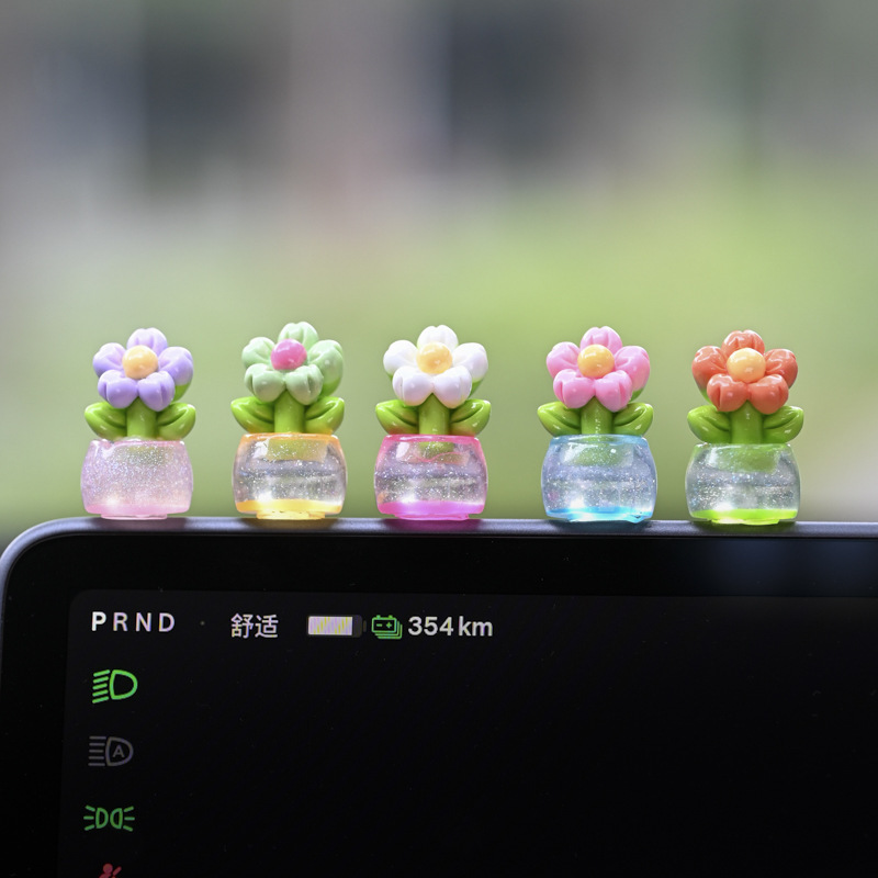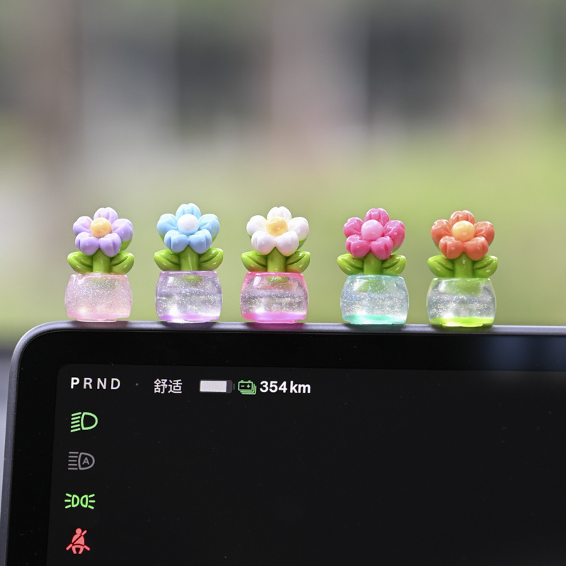 귀여운 빛나는 작은 꽃 냄비 자동차 장식품 자동차 센터 콘솔 자동차 화면 작은 꽃 자동차 창조적 인 장식