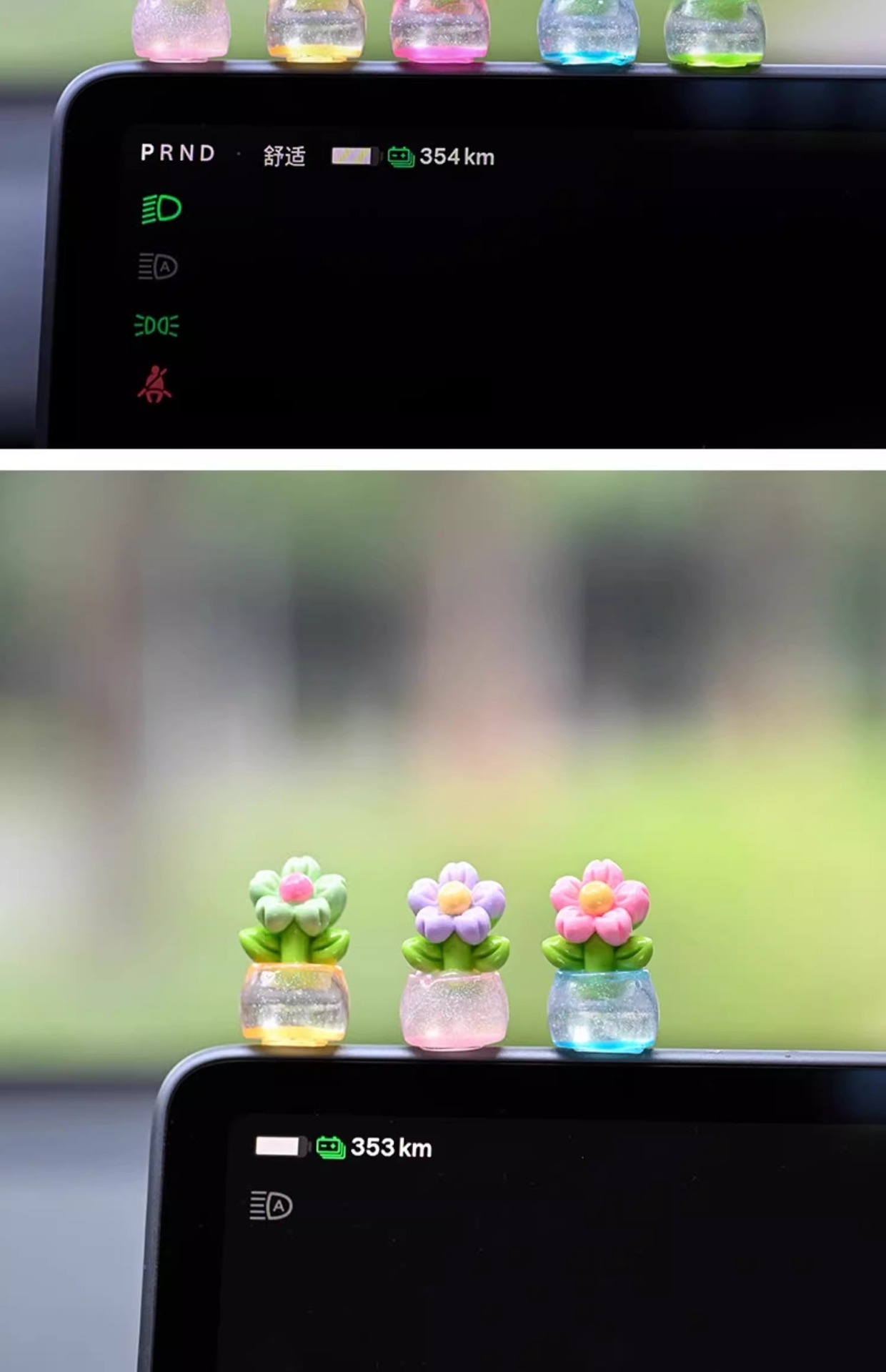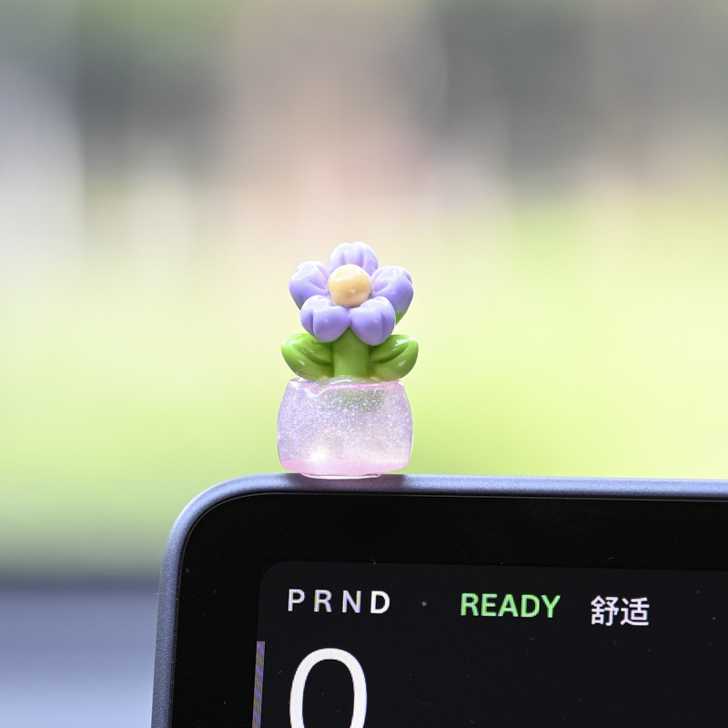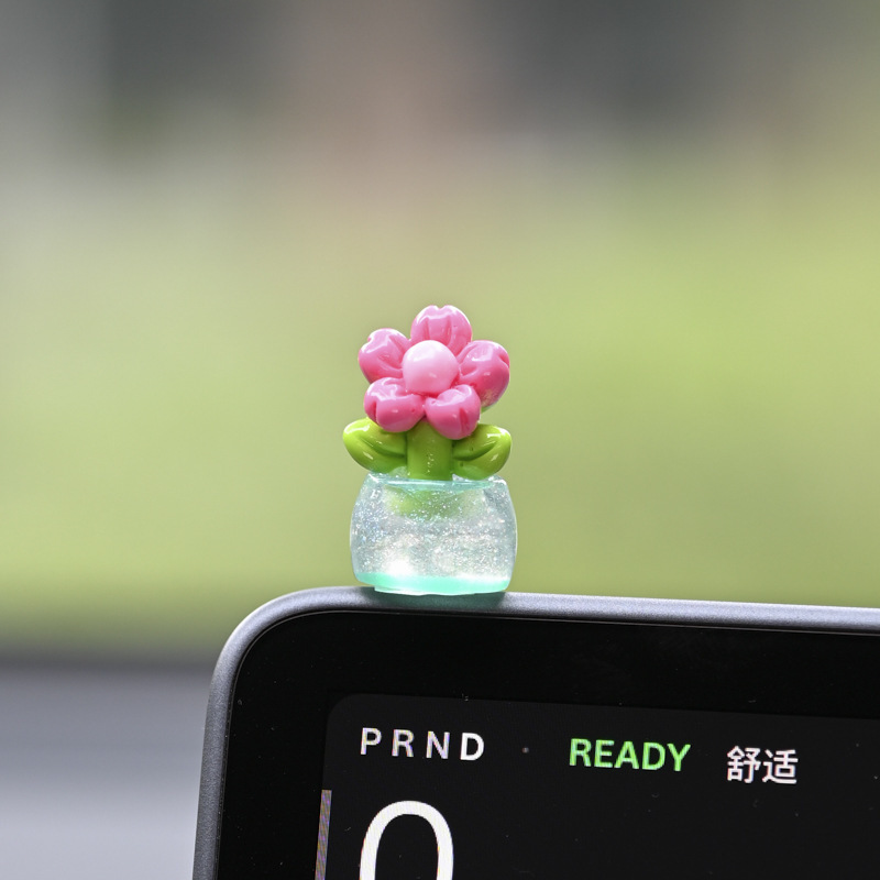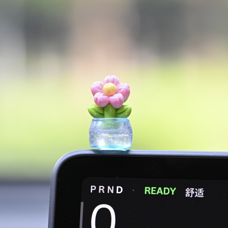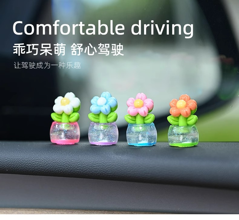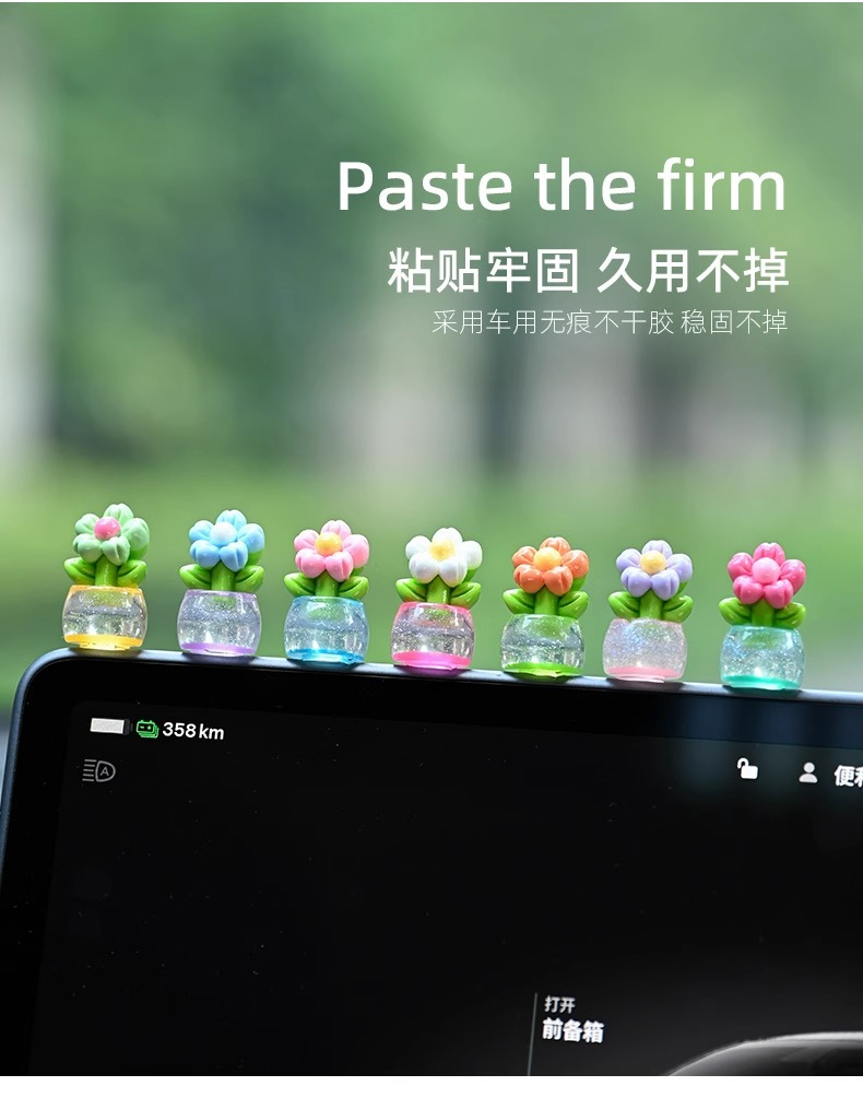 귀여운 빛나는 작은 꽃 냄비 자동차 장식품 자동차 센터 콘솔 자동차 화면 작은 꽃 자동차 창조적 인 장식