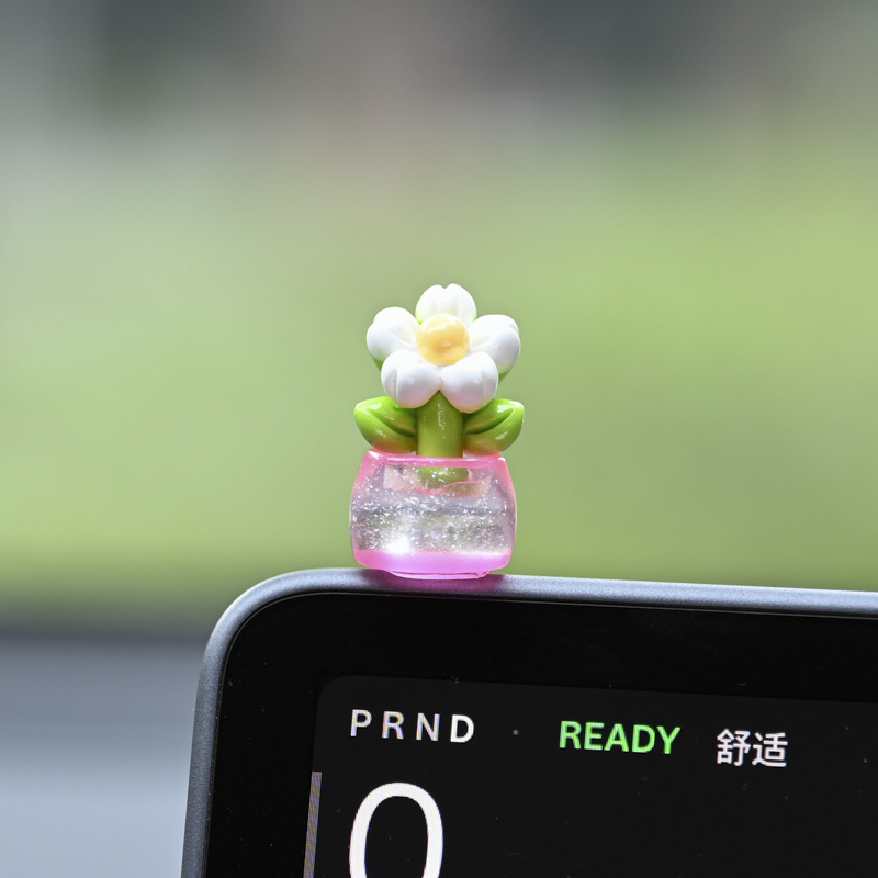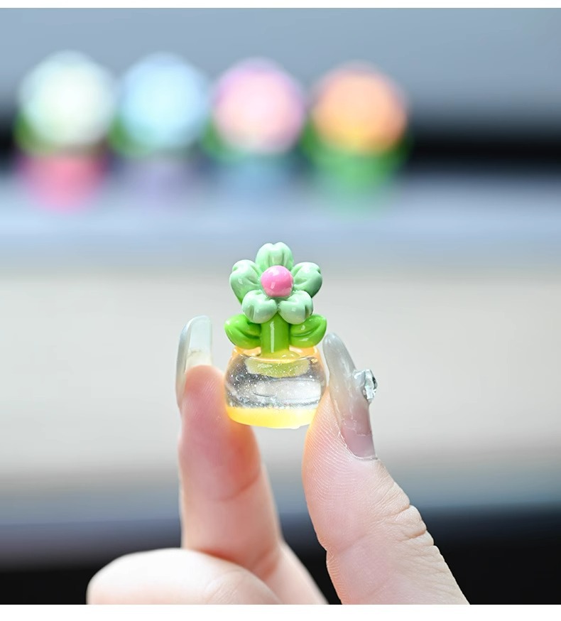 귀여운 빛나는 작은 꽃 냄비 자동차 장식품 자동차 센터 콘솔 자동차 화면 작은 꽃 자동차 창조적 인 장식스토어 가기