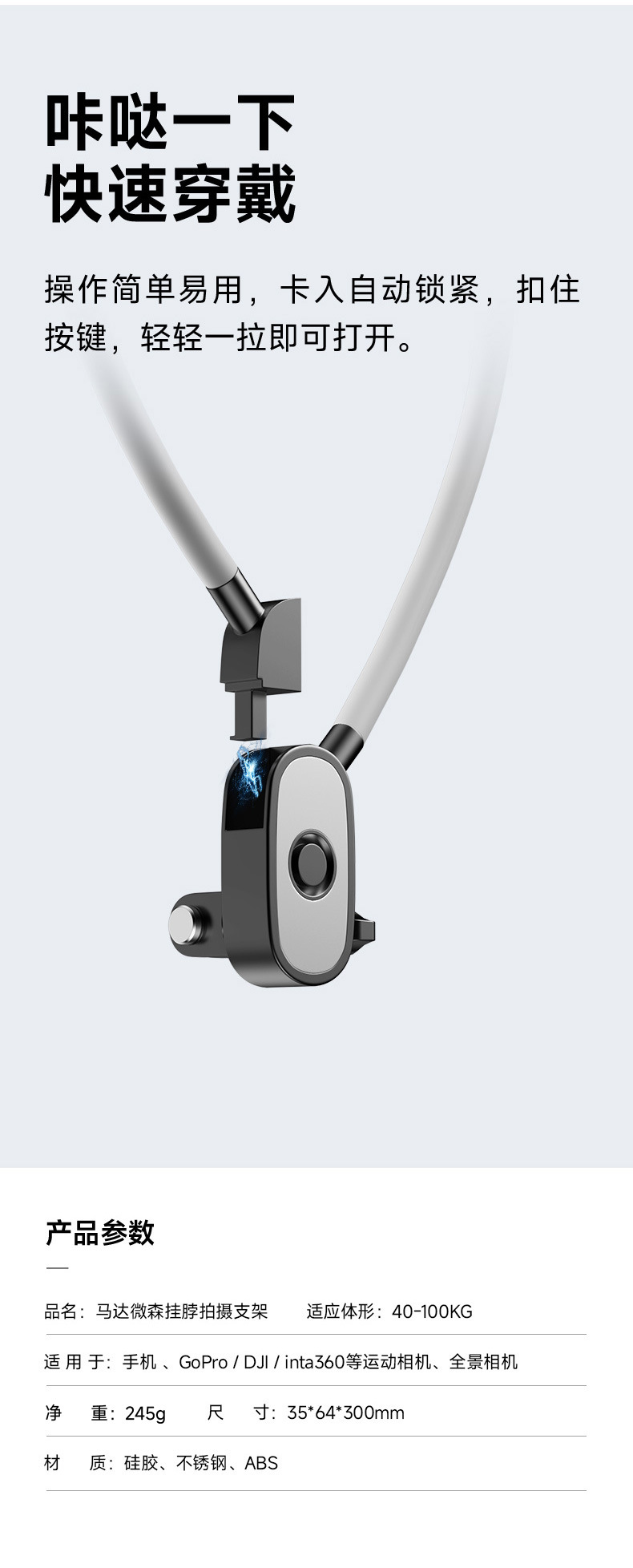 마도 마이크로센 휴대폰 목걸이 촬영 스탠드 1인칭 낚시 및 사이클링 카메라 브이로그 가슴 고정 촬영