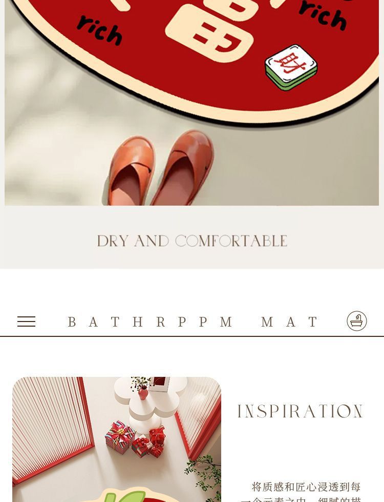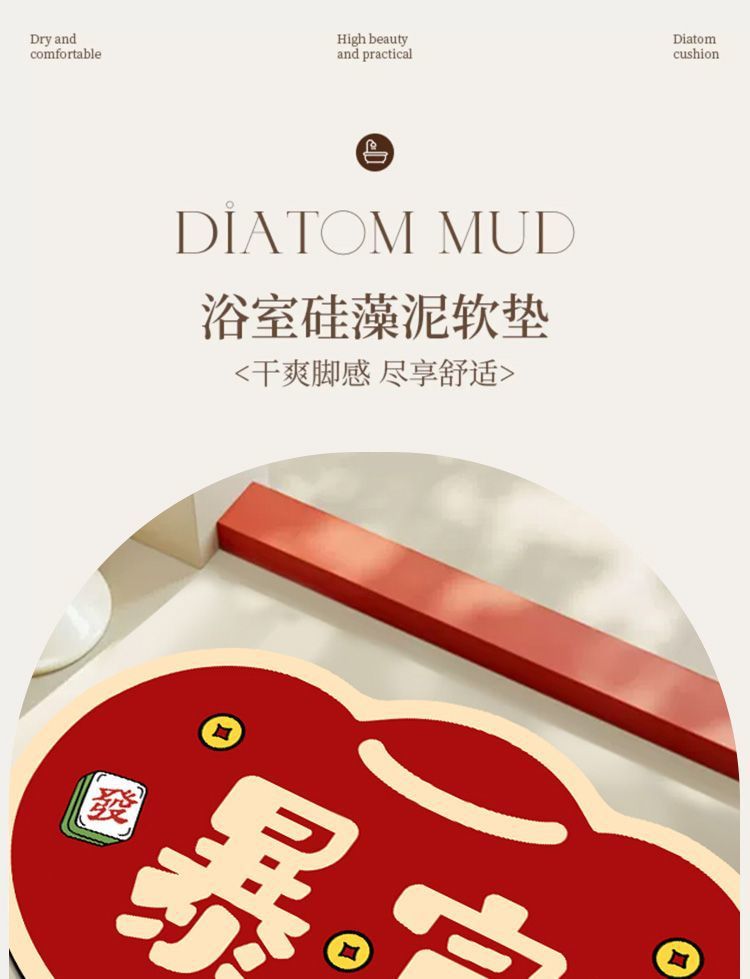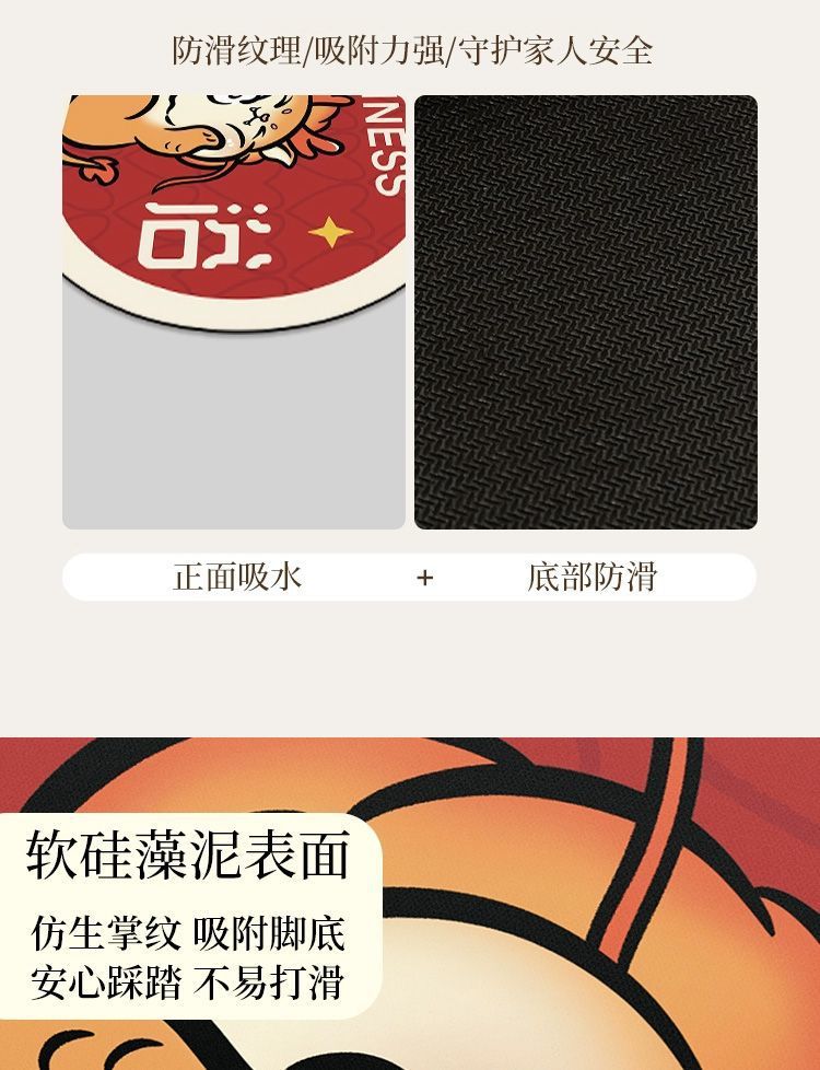 새로운 중국 스타일의 가정용 화장실 바닥 매트 얼룩에 강하고 청소하기 쉬운 미끄럼 방지 매트 빠른 건조 규조류 진흙 바닥 매트 머리카락