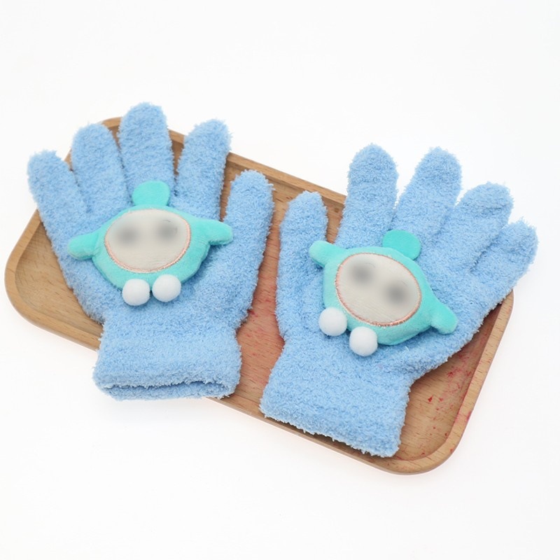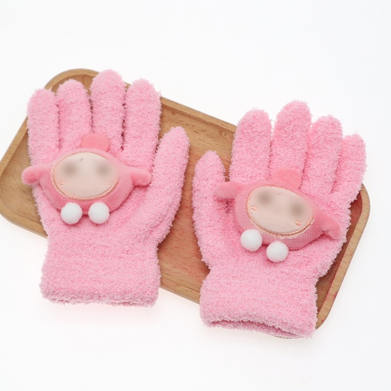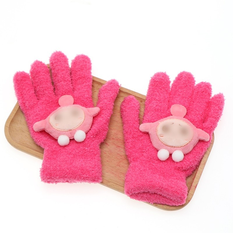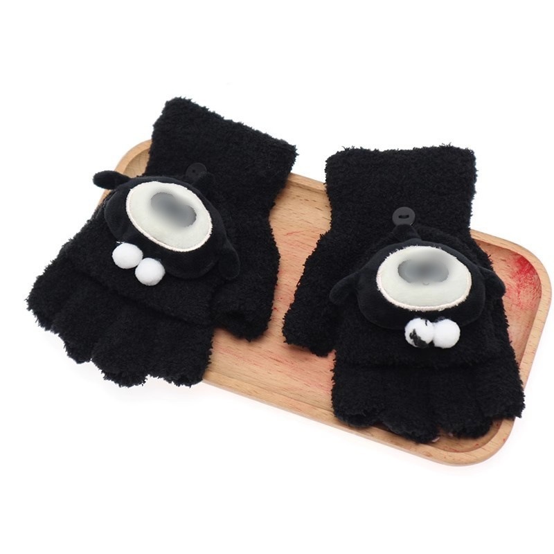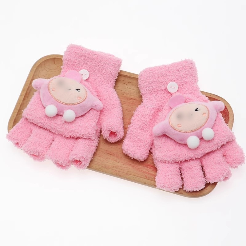 어린이 플립 장갑 만화 에그 소녀 가을과 겨울 반 손가락 학생들은 차가운 중간 및 큰 아이들을 따뜻하게 씁니다