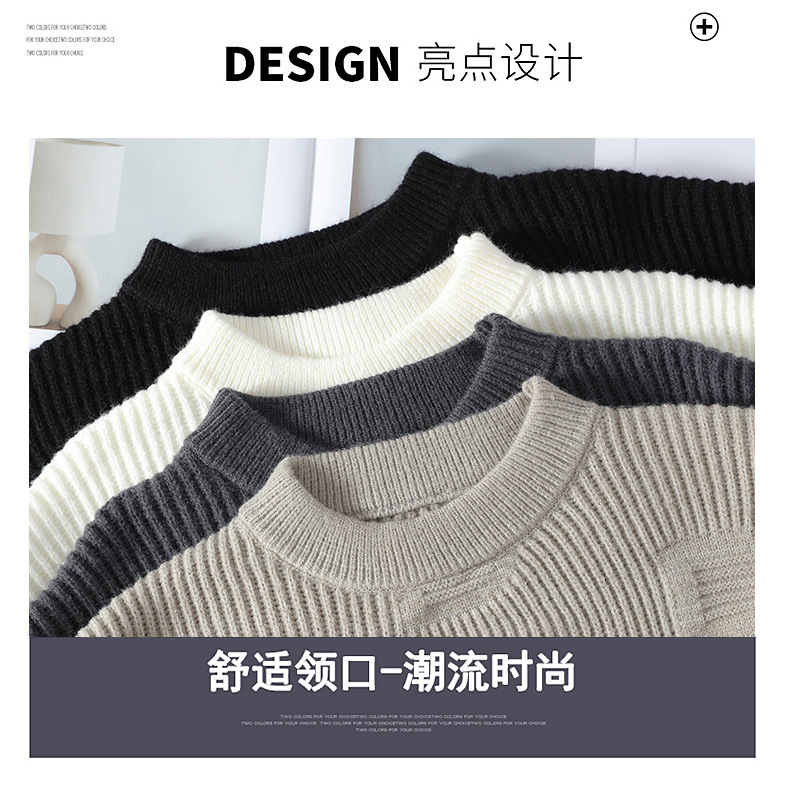 가을과 겨울 두꺼운 따뜻한 둥근 목 따뜻한 유행 브랜드 스웨터 남자 느슨한 새로운 내부 니트 스웨터스토어 가기