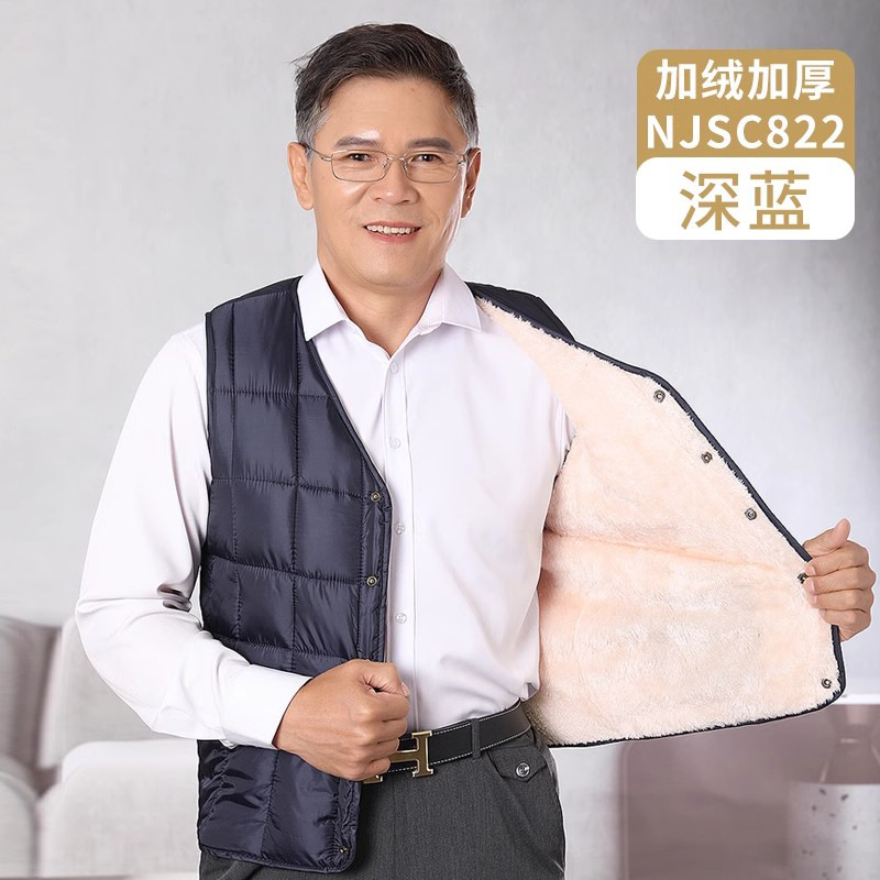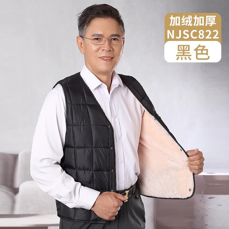 할아버지 기모 두꺼운 조끼 조끼 가을 및 겨울 착용 중년 및 노인 남성 허리 코트 노인 아빠 따뜻한 면화 조끼