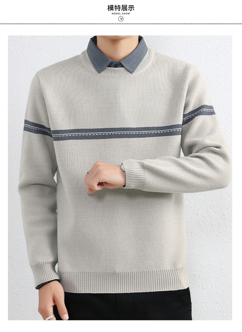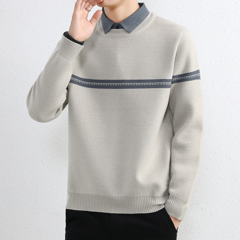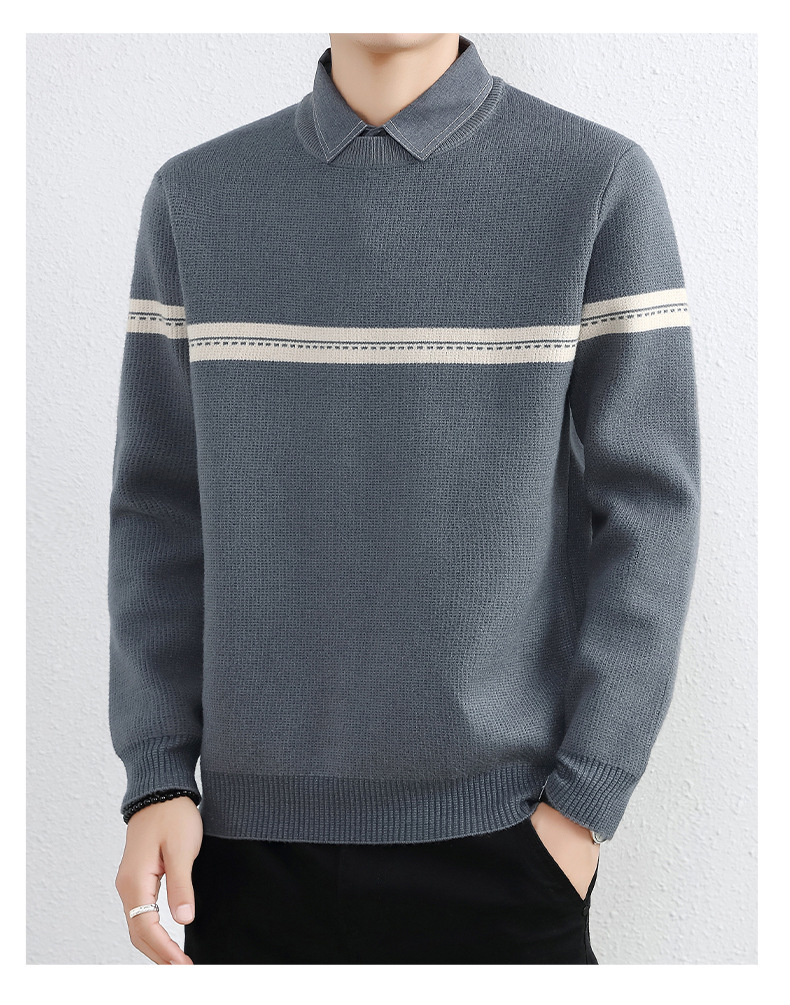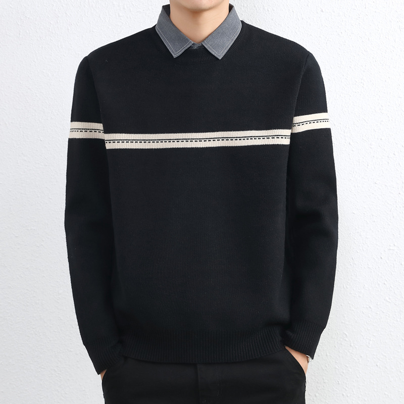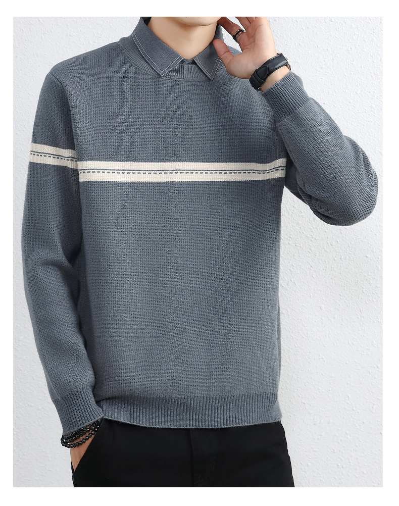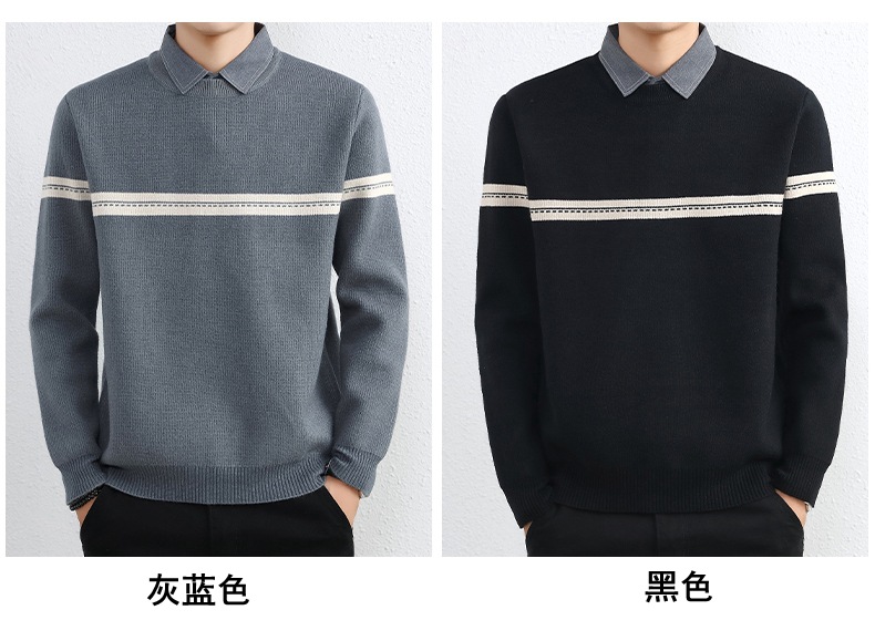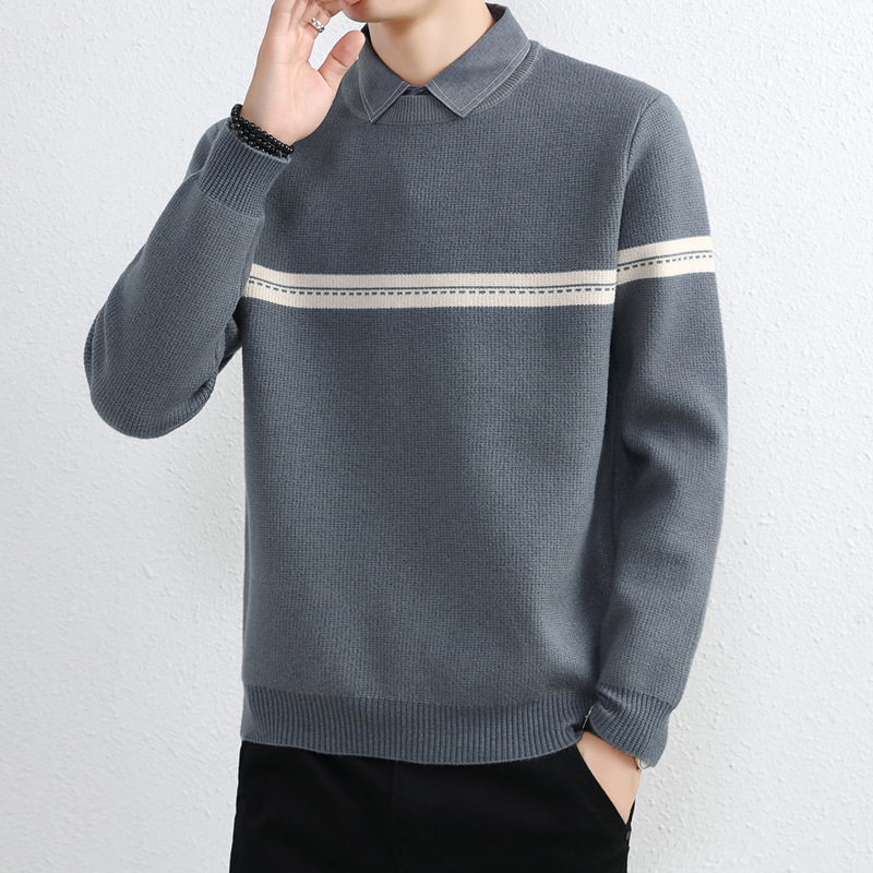 셔츠 칼라 스웨터 남성용 스웨터 두꺼운 가을과 겨울 내복 가짜 투피스 니트웨어 남성용 캐주얼 패셔너블 스웨터