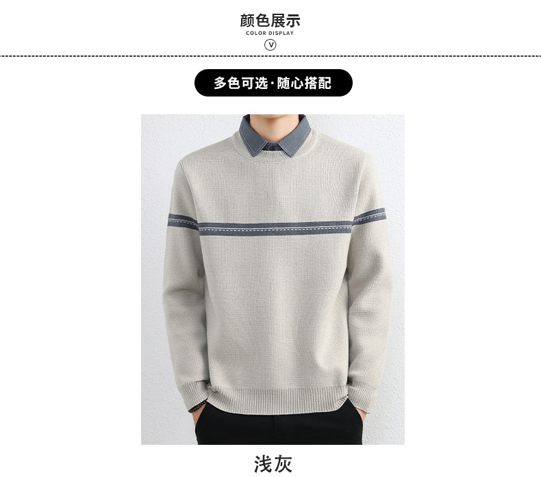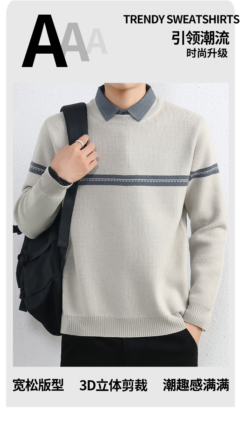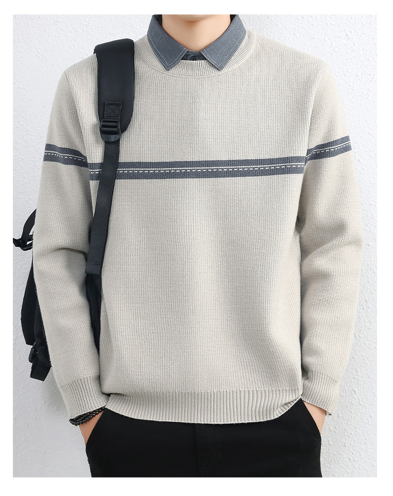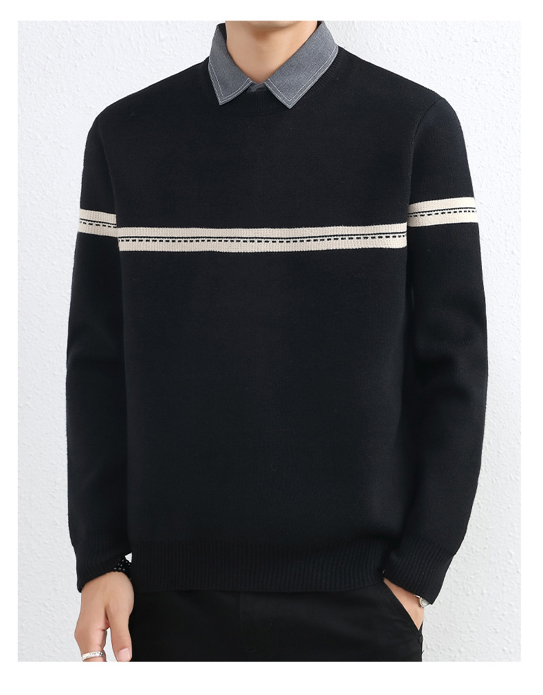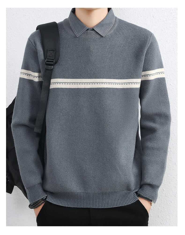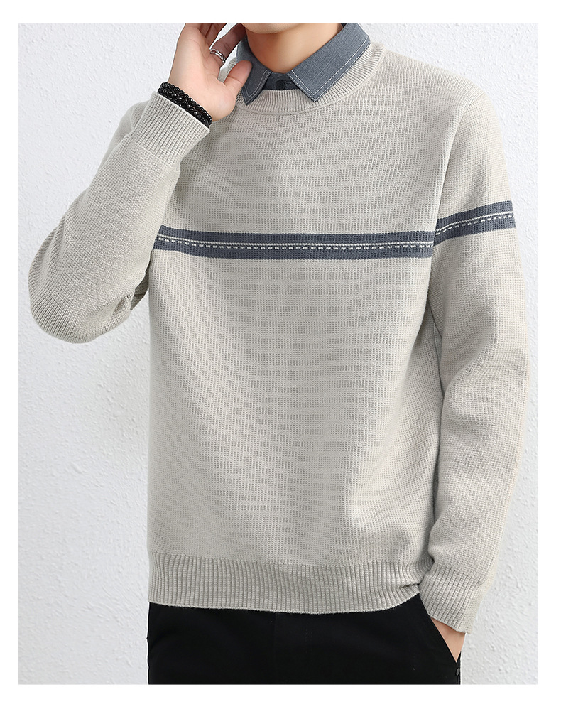 셔츠 칼라 스웨터 남성용 스웨터 두꺼운 가을과 겨울 내복 가짜 투피스 니트웨어 남성용 캐주얼 패셔너블 스웨터