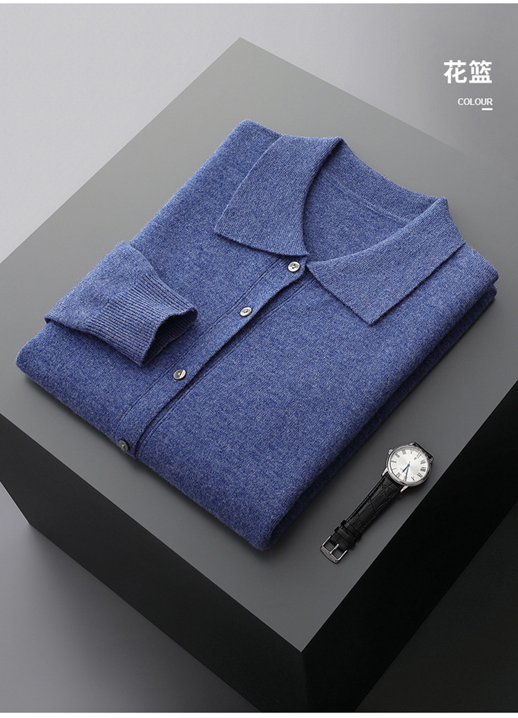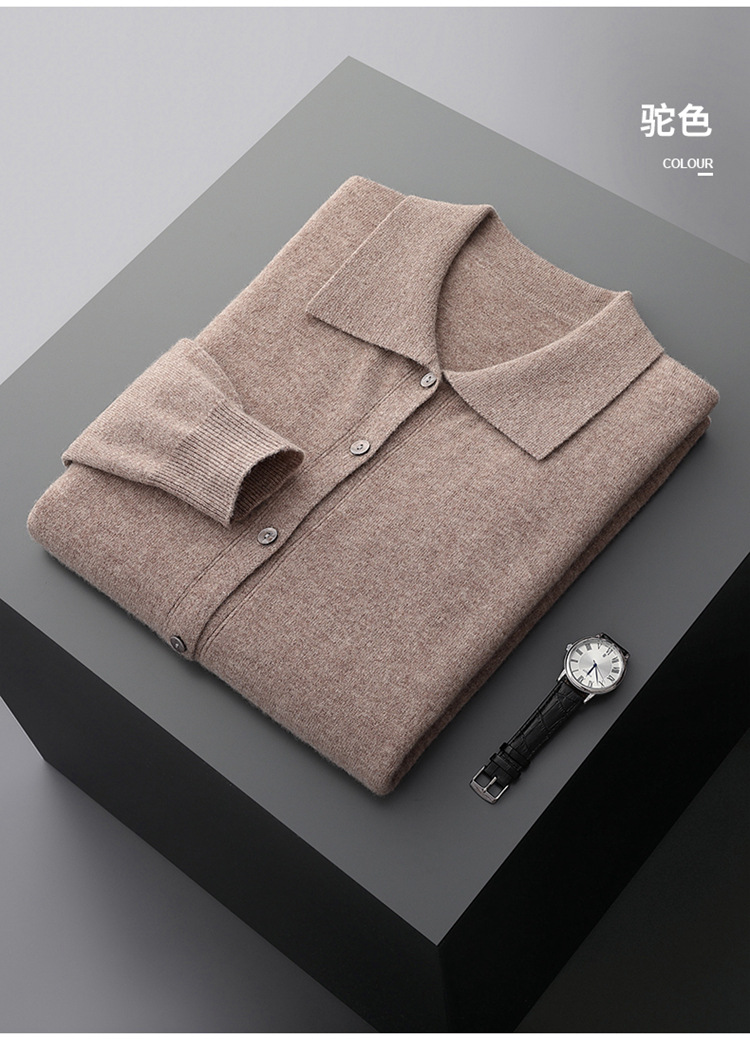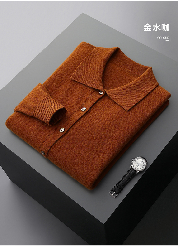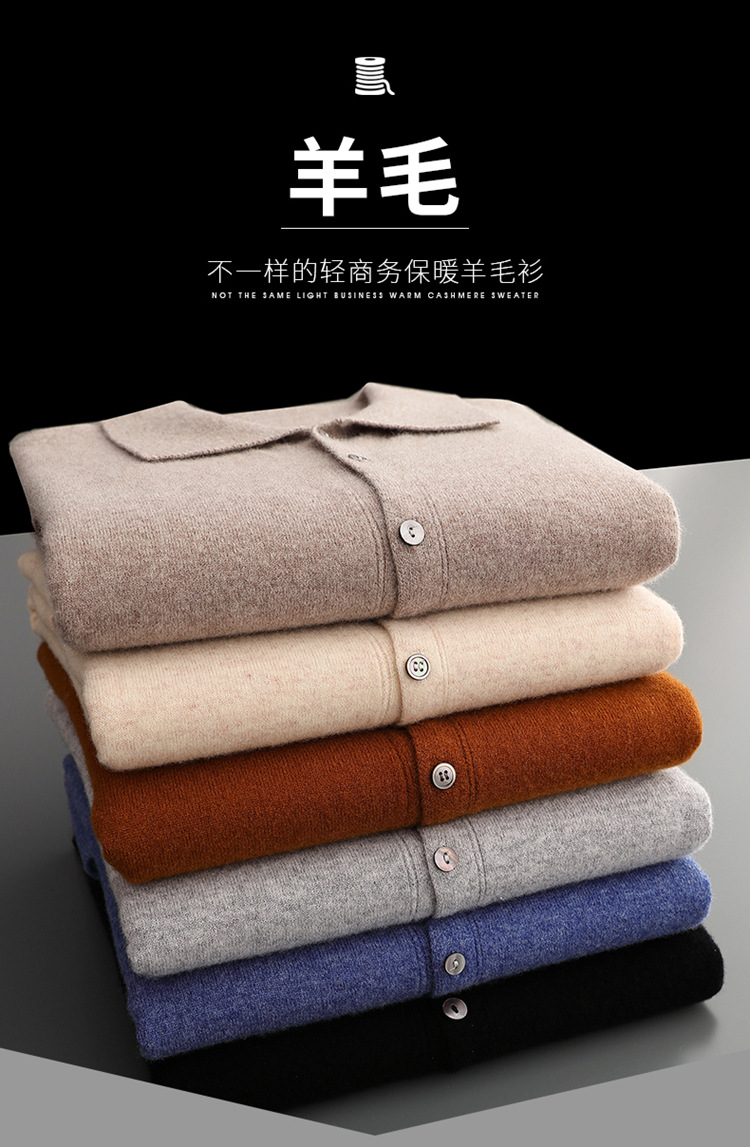 봄과 가을 새로운 POLO 칼라 남성 100 울 카디건 비즈니스 옷깃 코트 가을과 겨울 긴 소매 스웨터 조수 도매