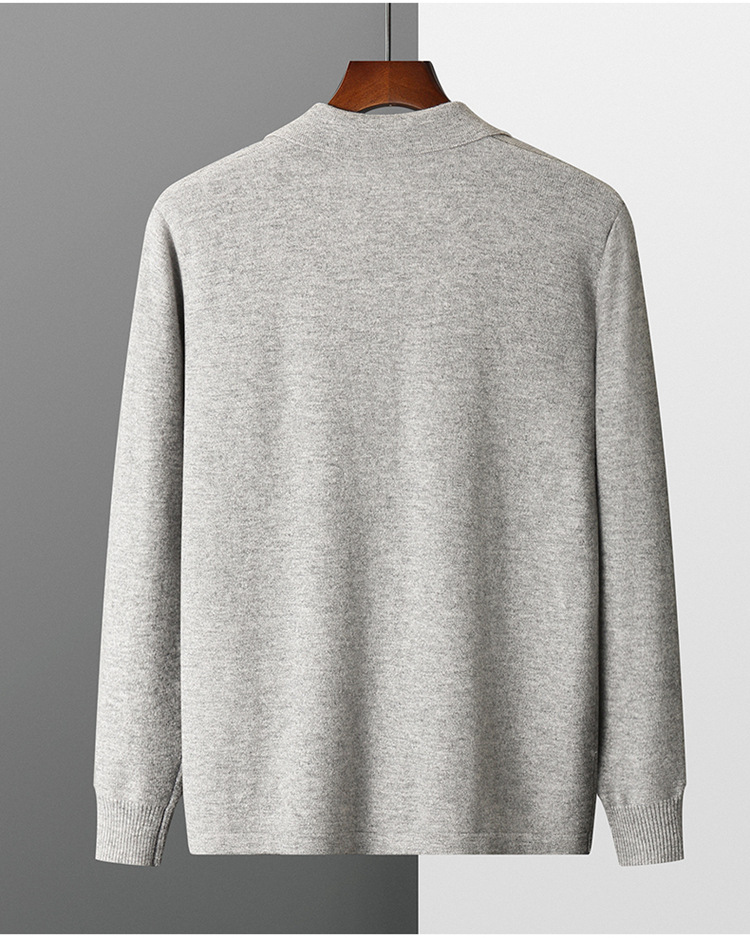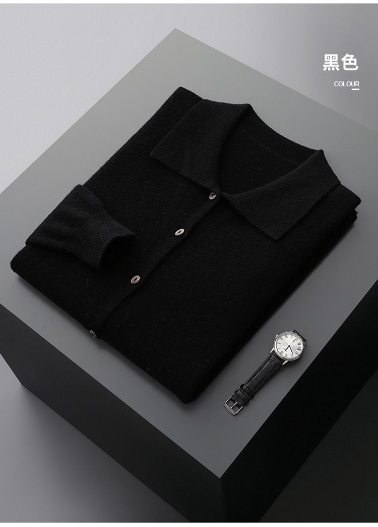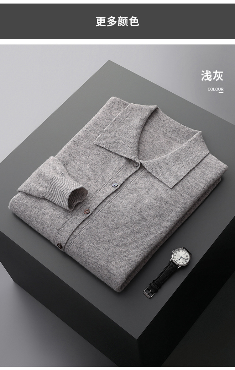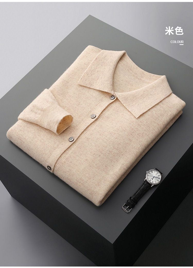 봄과 가을 새로운 POLO 칼라 남성 100 울 카디건 비즈니스 옷깃 코트 가을과 겨울 긴 소매 스웨터 조수 도매