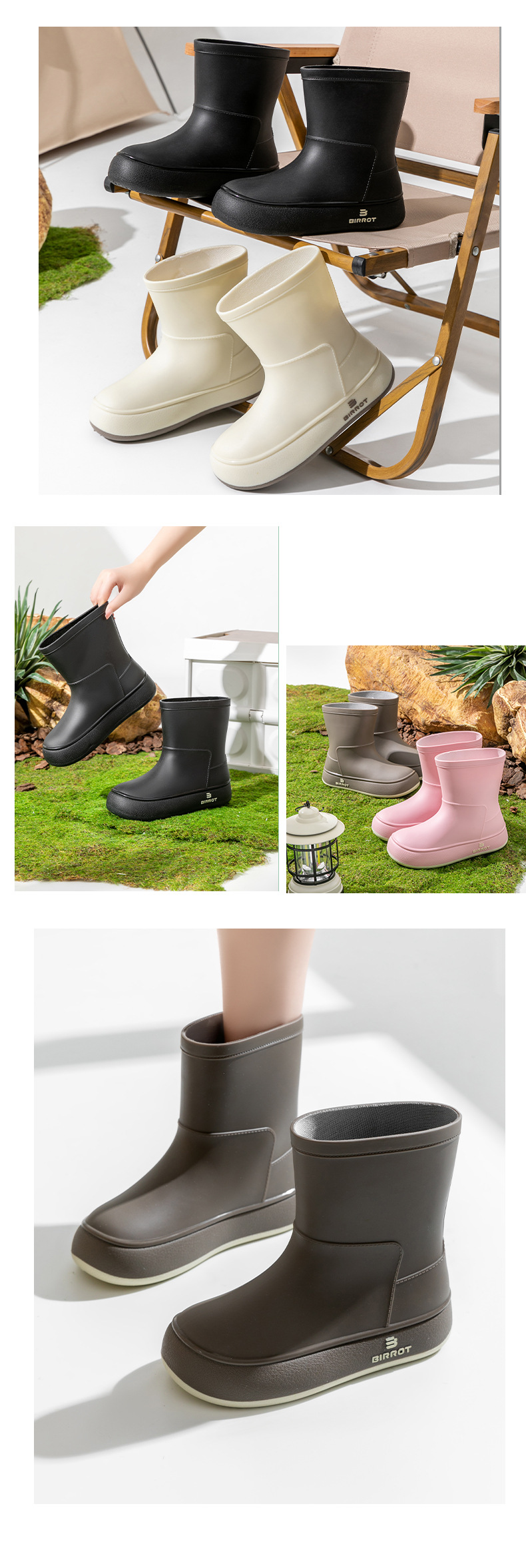 BIRROT 친환경 소재 일본 및 한국 크로스보더 레인부츠 귀여운 중간 길이 워터슈즈 학생용 고무신 방수 레인부츠